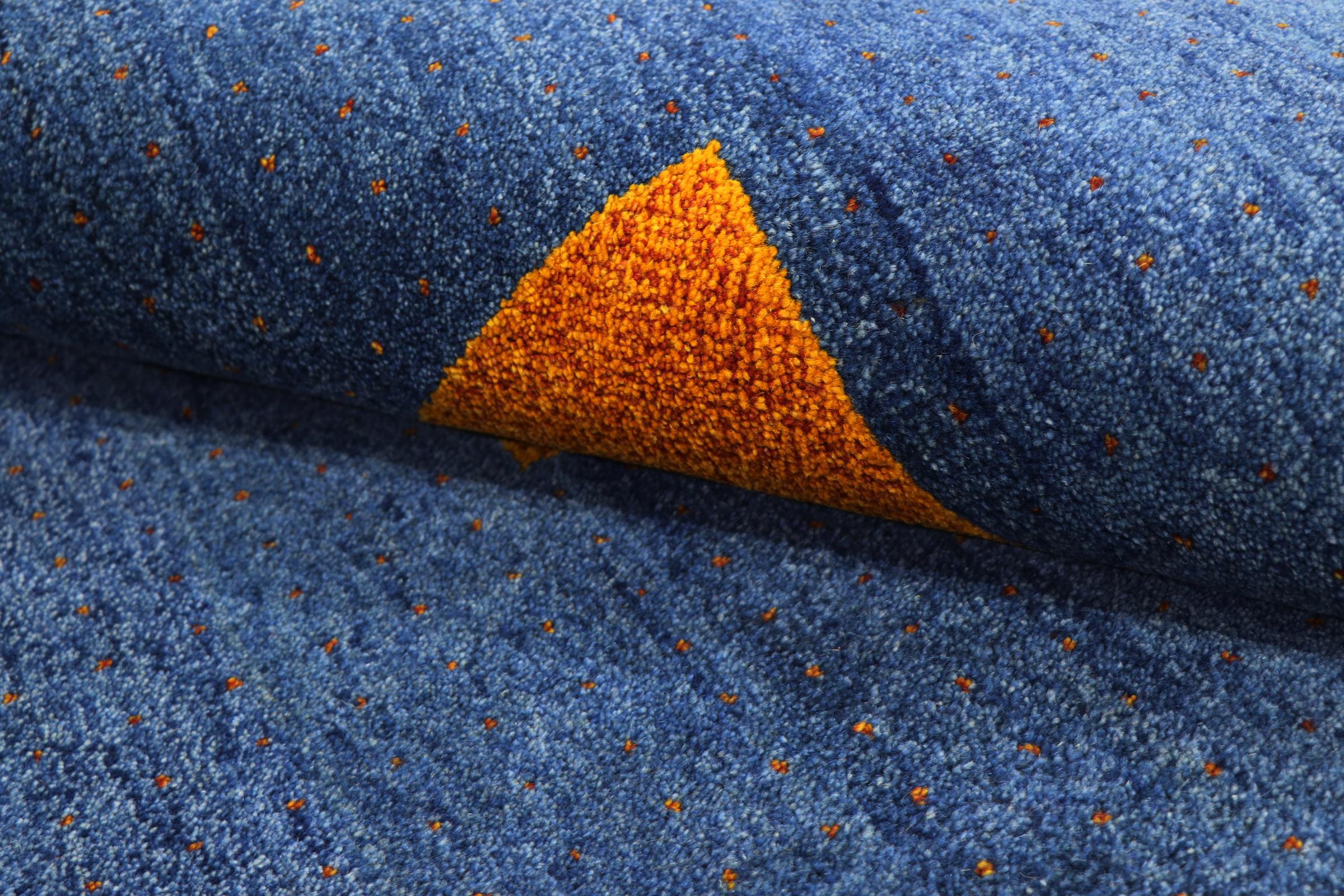 Esta hermosa alfombra de Gabbeh fue anudada a mano en la India. Las alfombras indias de Gabbeh están hechas de suave lana de oveja, son cómodas para los pies y tienen propiedades de aislamiento térmico. La mayoría de sus diseños son simples y modernos atemporales. Se inspiraron en los pueblos nómadas, que dejaban fluir en las alfombras motivos muy simples de su entorno. Las alfombras de Gabbeh de la India no se acercan mucho a la calidad de las de Gabbeh de Persia, pero tienen una muy buena relación precio-rendimiento. Por lo tanto, son perfectamente adecuadas como alfombras anudadas a mano para principiantes.