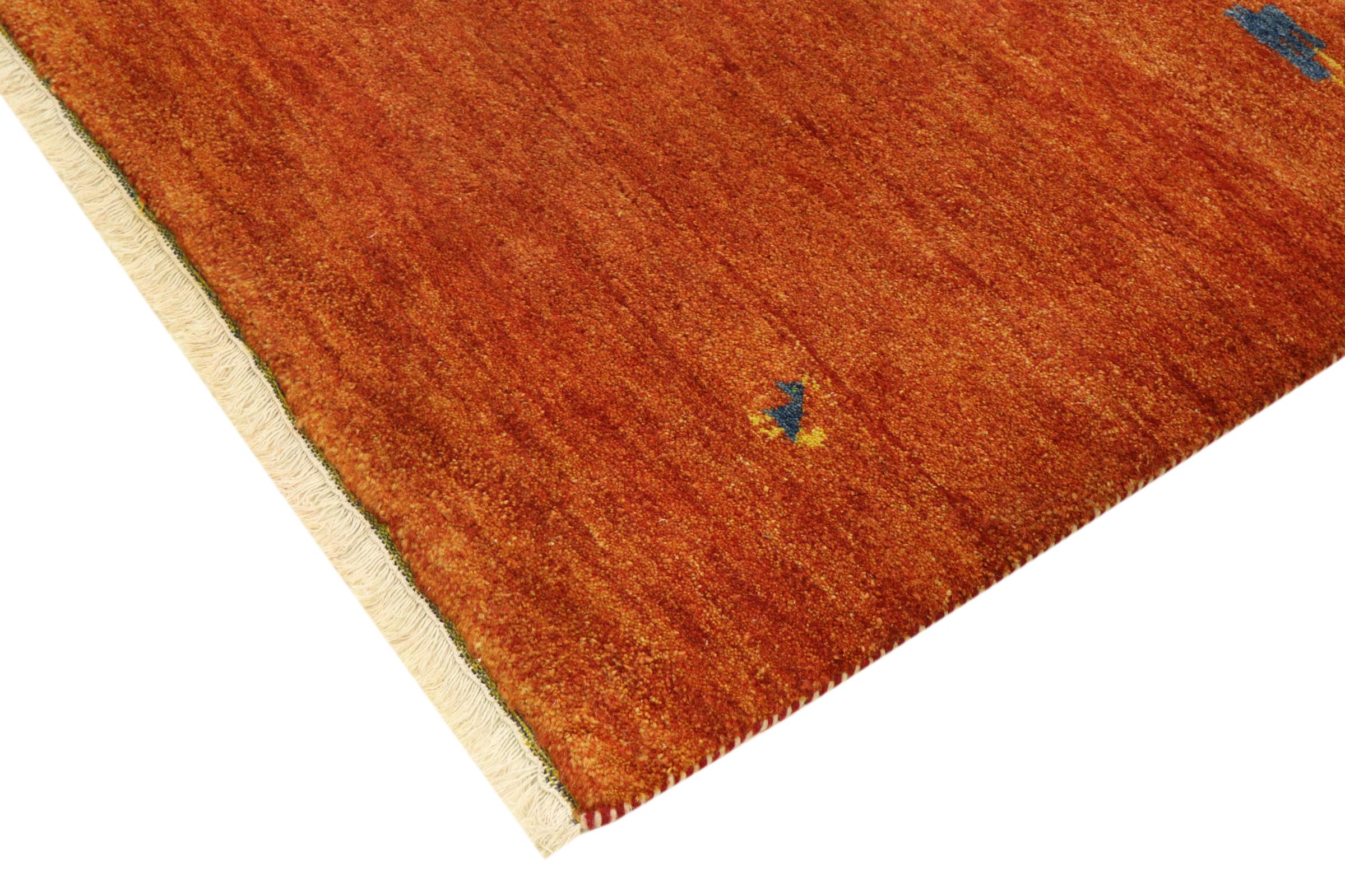 Esta hermosa alfombra de Gabbeh fue anudada a mano en la India. Las alfombras indias de Gabbeh están hechas de suave lana de oveja, son cómodas para los pies y tienen propiedades de aislamiento térmico. La mayoría de sus diseños son simples y modernos atemporales. Se inspiraron en los pueblos nómadas, que dejaban fluir en las alfombras motivos muy simples de su entorno. Las alfombras de Gabbeh de la India no se acercan mucho a la calidad de las de Gabbeh de Persia, pero tienen una muy buena relación precio-rendimiento. Por lo tanto, son perfectamente adecuadas como alfombras anudadas a mano para principiantes.