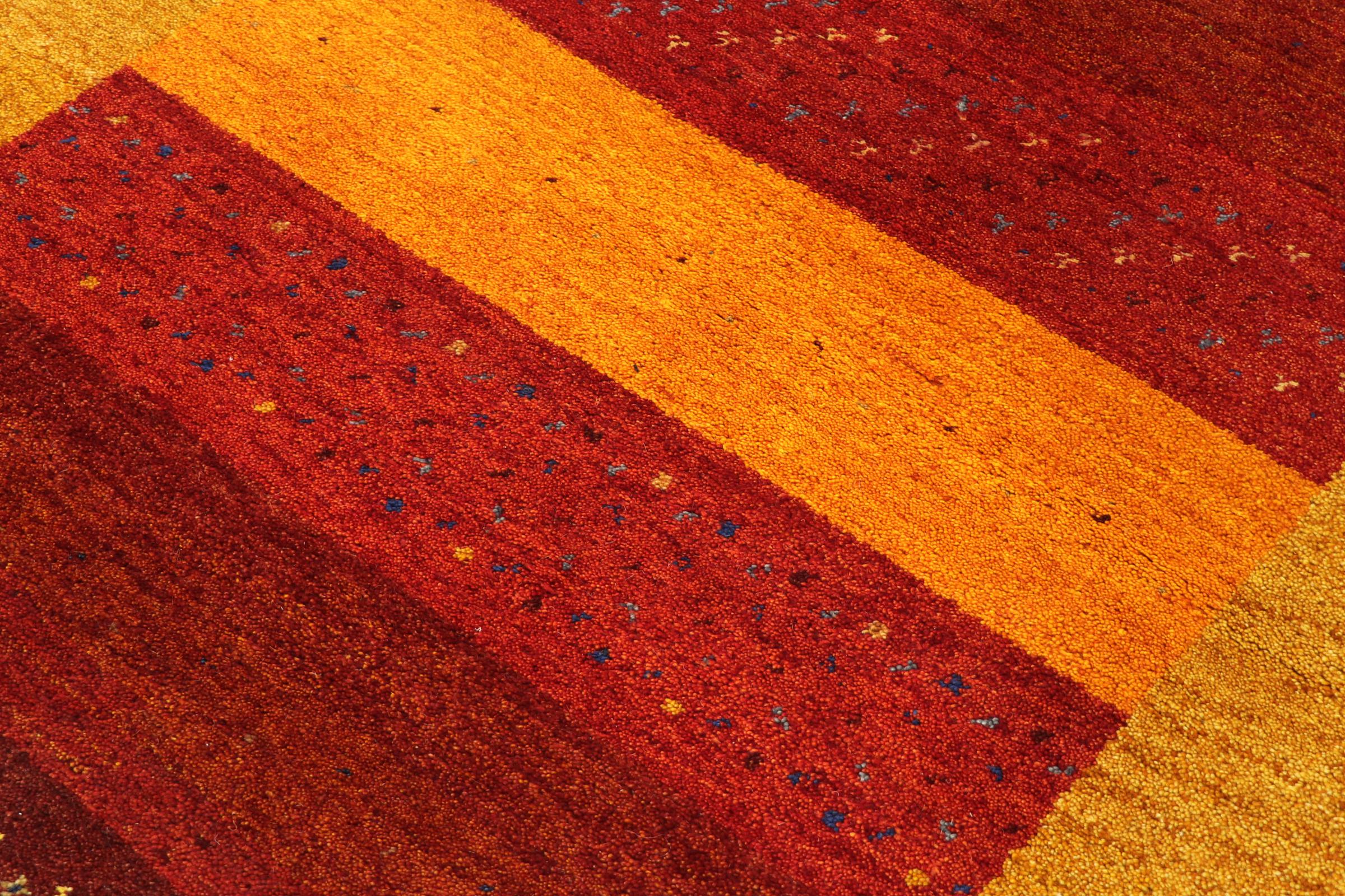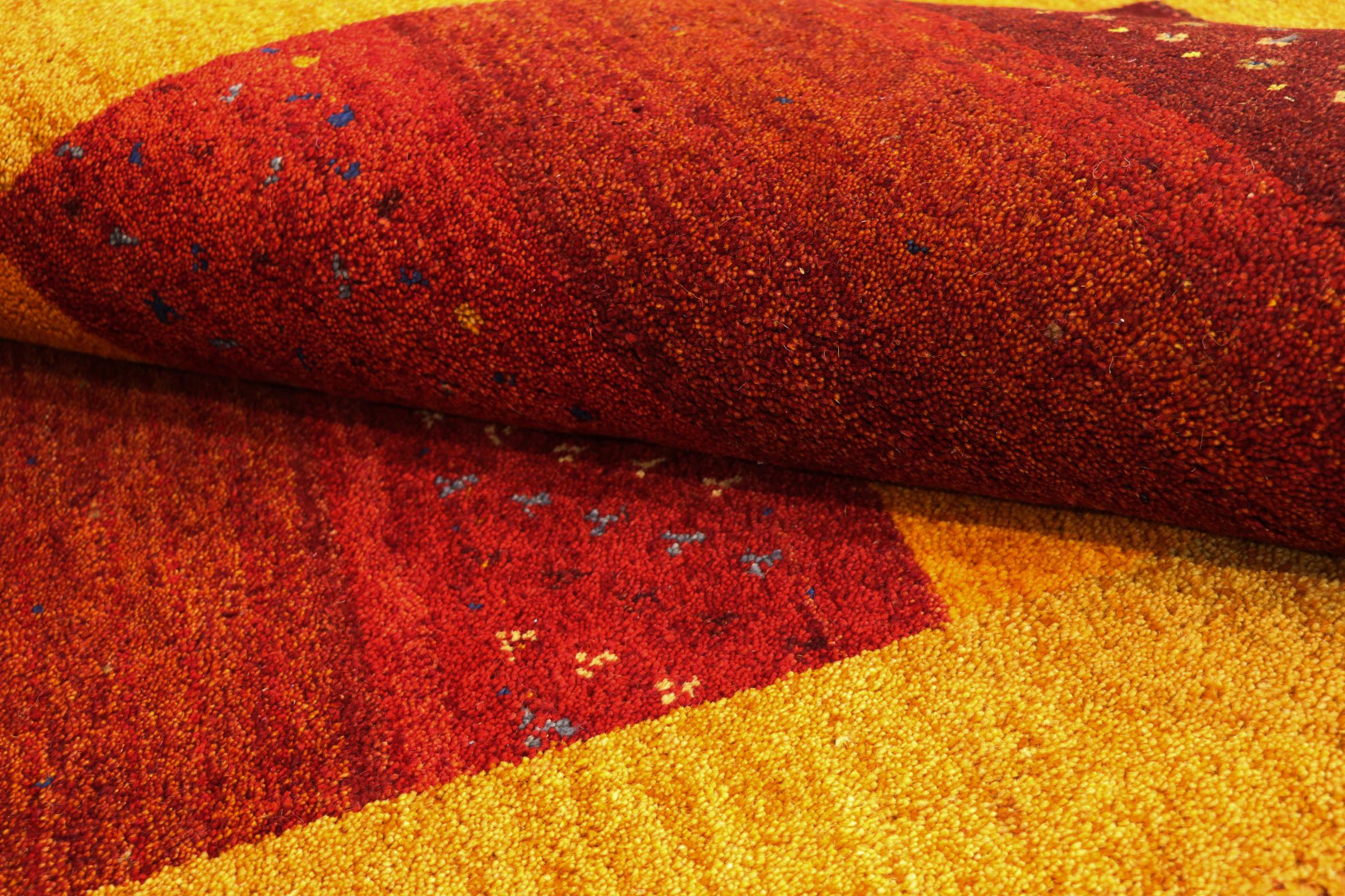 Esta hermosa alfombra de Gabbeh fue anudada a mano en la India. Las alfombras indias de Gabbeh están hechas de suave lana de oveja, son cómodas para los pies y tienen propiedades de aislamiento térmico. La mayoría de sus diseños son simples y modernos atemporales. Se inspiraron en los pueblos nómadas, que dejaban fluir en las alfombras motivos muy simples de su entorno. Las alfombras de Gabbeh de la India no se acercan mucho a la calidad de las de Gabbeh de Persia, pero tienen una muy buena relación precio-rendimiento. Por lo tanto, son perfectamente adecuadas como alfombras anudadas a mano para principiantes.