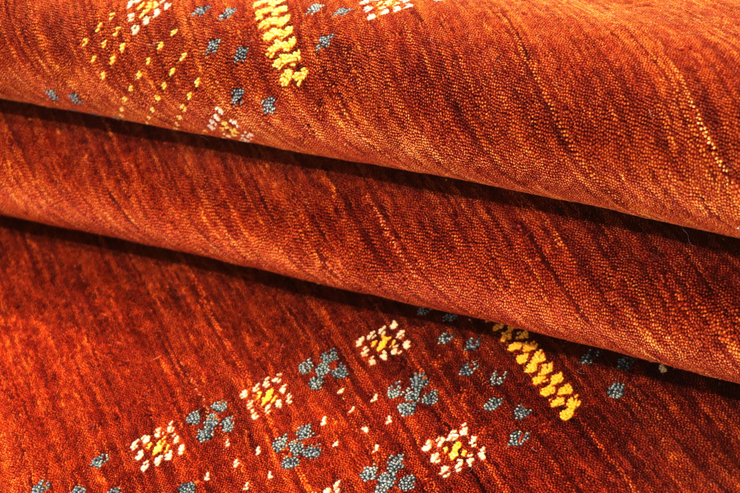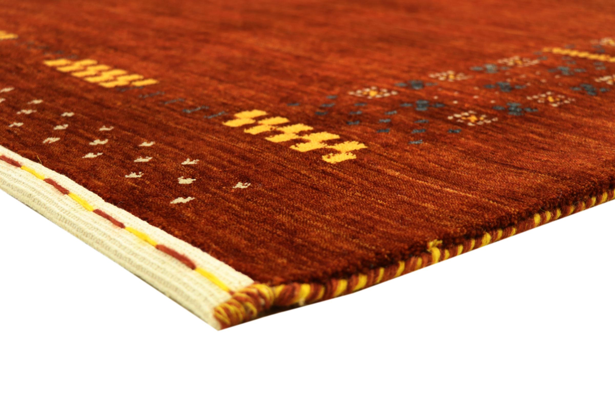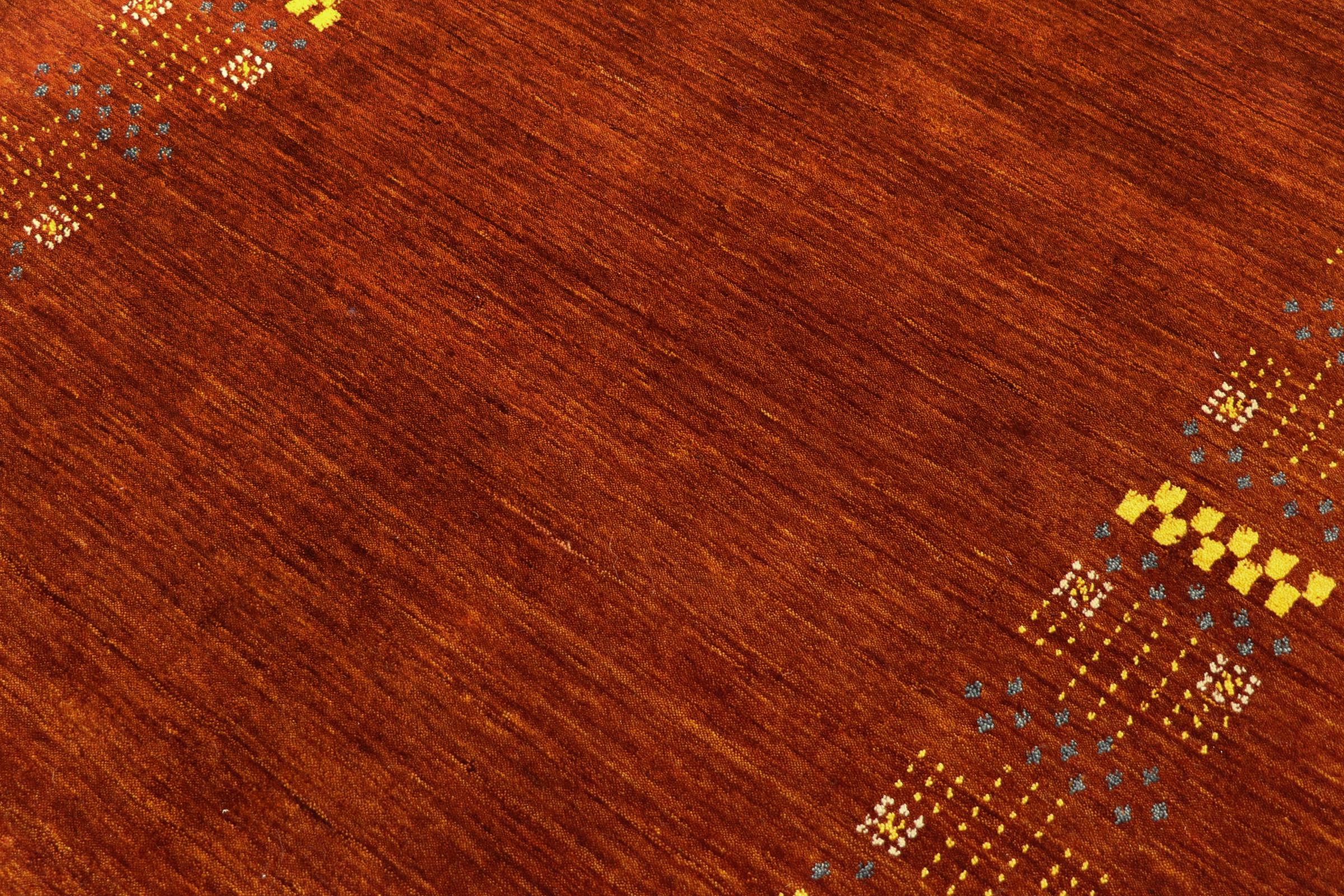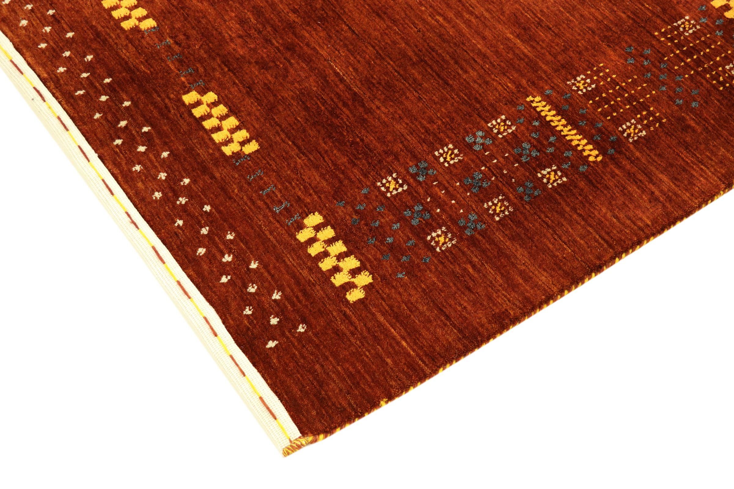 Esta hermosa alfombra de Gabbeh fue anudada a mano en la India. Las alfombras indias de Gabbeh están hechas de suave lana de oveja, son cómodas para los pies y tienen propiedades de aislamiento térmico. La mayoría de sus diseños son simples y modernos atemporales. Se inspiraron en los pueblos nómadas, que dejaban fluir en las alfombras motivos muy simples de su entorno. Las alfombras de Gabbeh de la India no se acercan mucho a la calidad de las de Gabbeh de Persia, pero tienen una muy buena relación precio-rendimiento. Por lo tanto, son perfectamente adecuadas como alfombras anudadas a mano para principiantes.