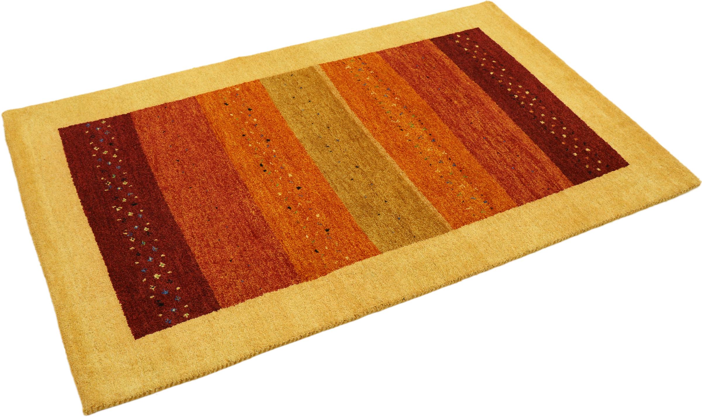 Esta hermosa alfombra de Gabbeh fue anudada a mano en la India. Las alfombras indias de Gabbeh están hechas de suave lana de oveja, son cómodas para los pies y tienen propiedades de aislamiento térmico. La mayoría de sus diseños son simples y modernos atemporales. Se inspiraron en los pueblos nómadas, que dejaban fluir en las alfombras motivos muy simples de su entorno. Las alfombras de Gabbeh de la India no se acercan mucho a la calidad de las de Gabbeh de Persia, pero tienen una muy buena relación precio-rendimiento. Por lo tanto, son perfectamente adecuadas como alfombras anudadas a mano para principiantes.
