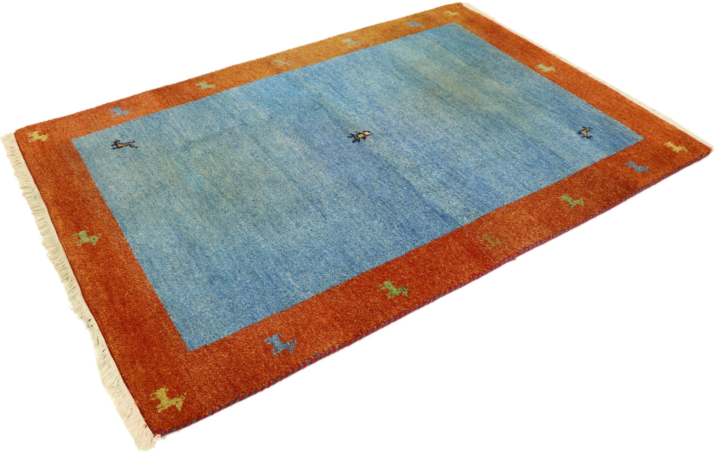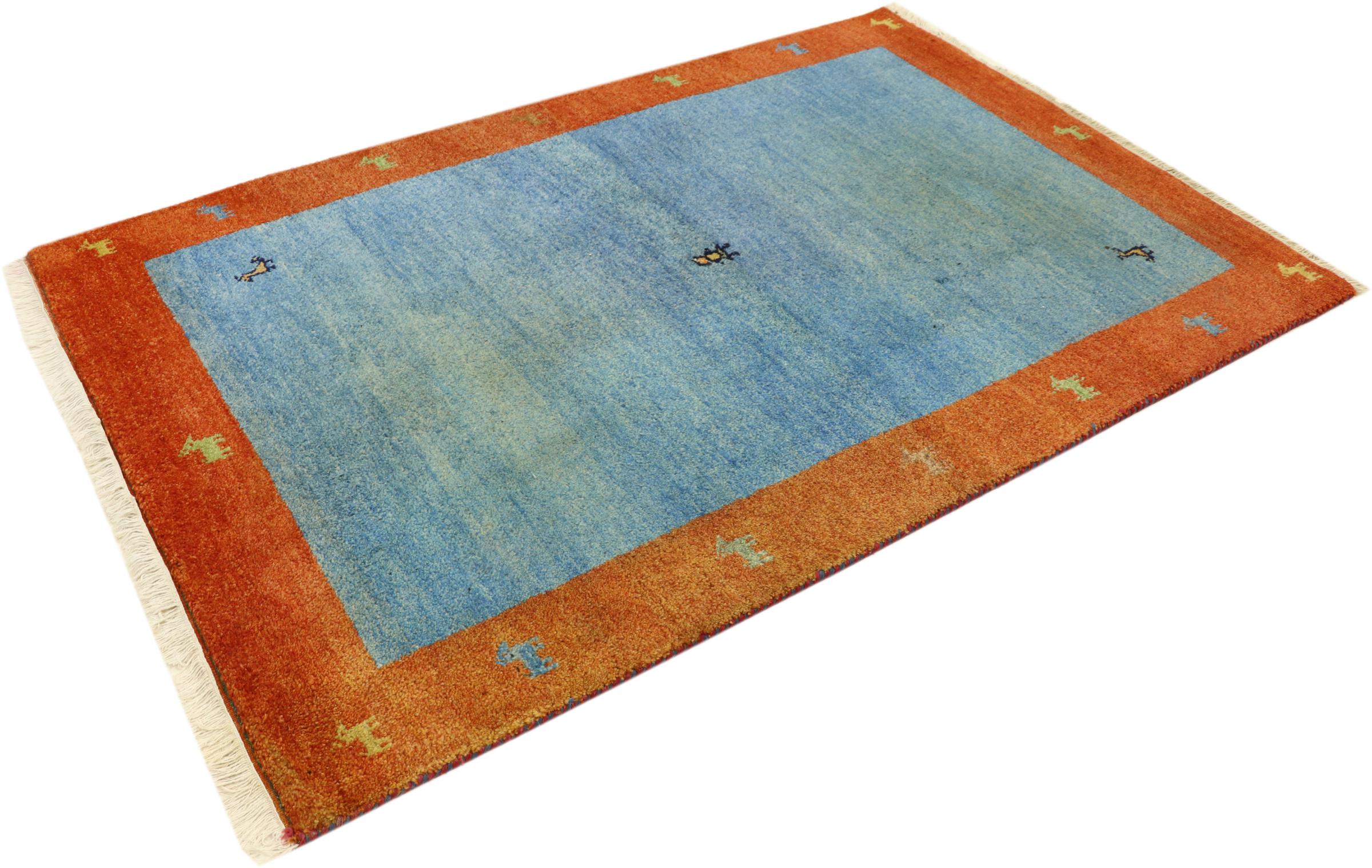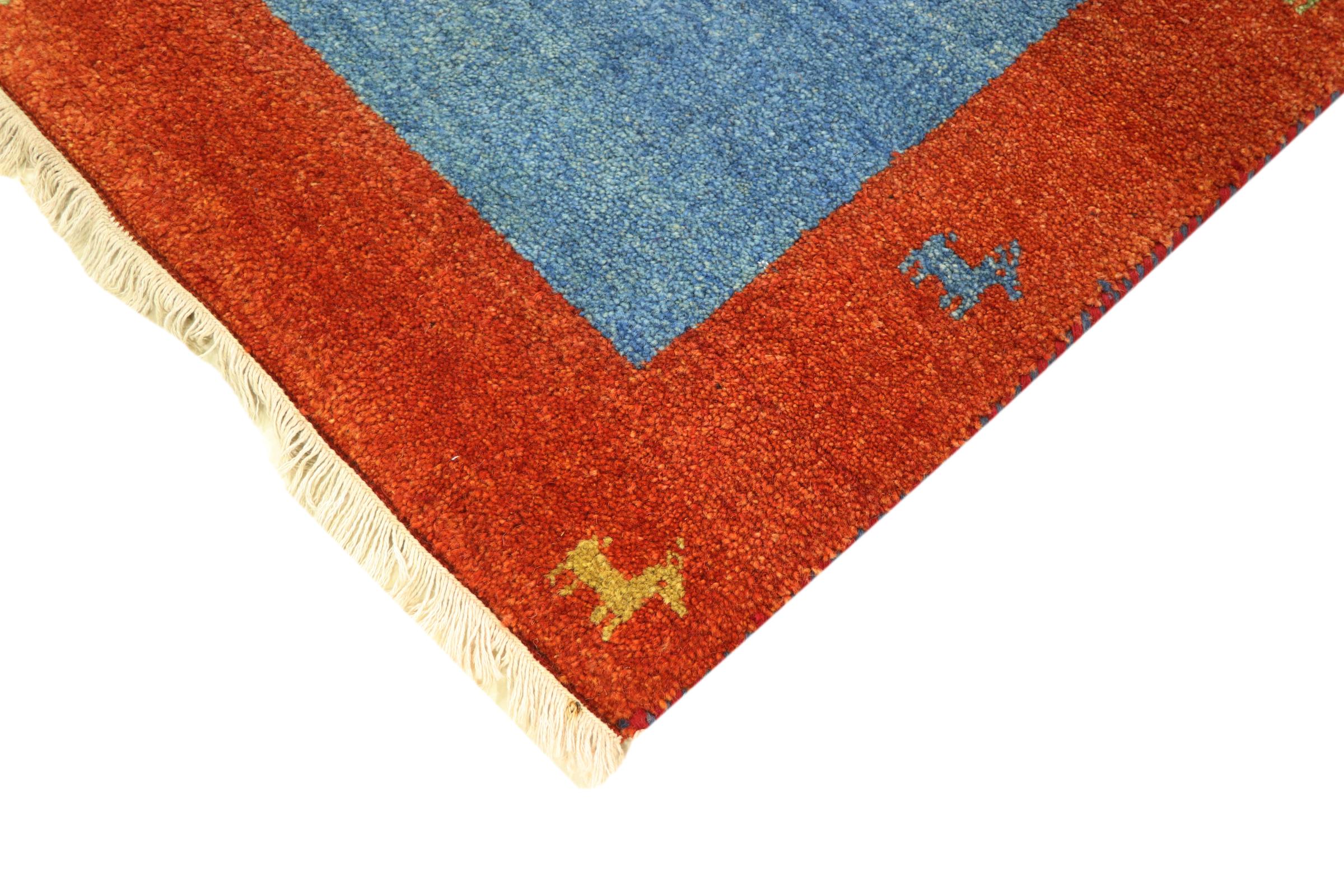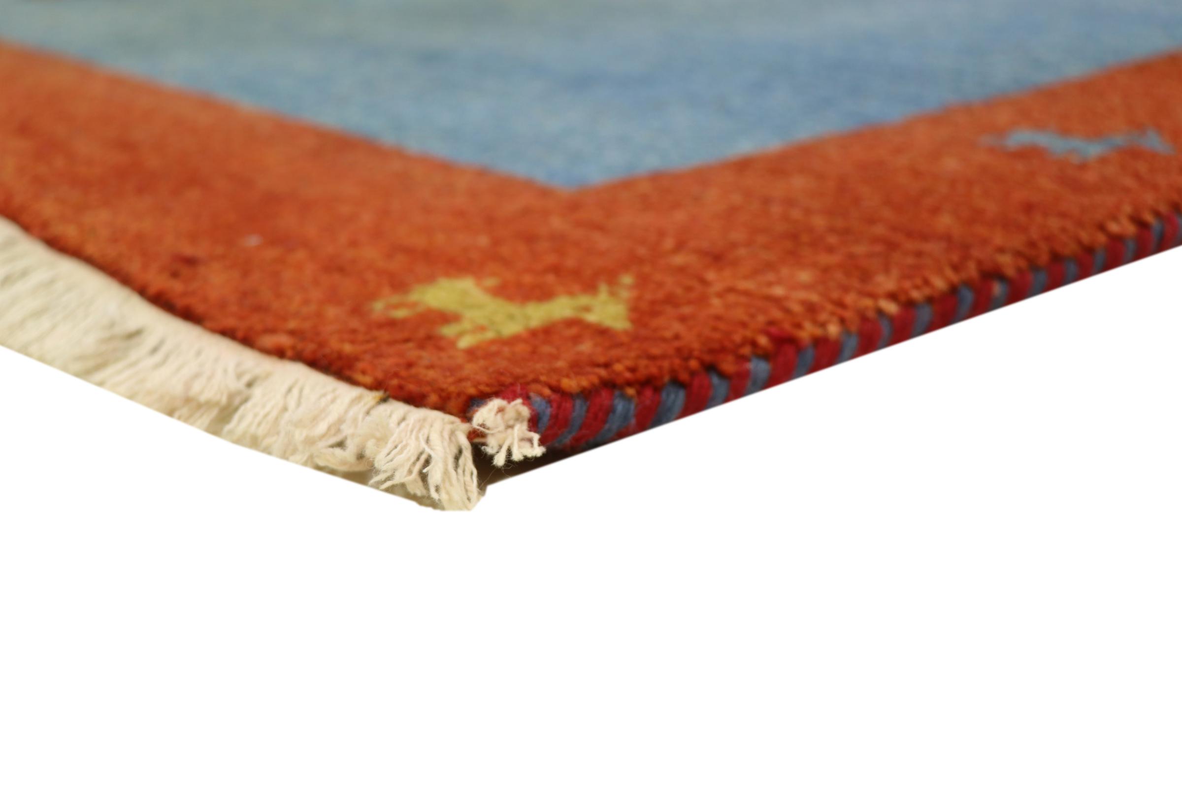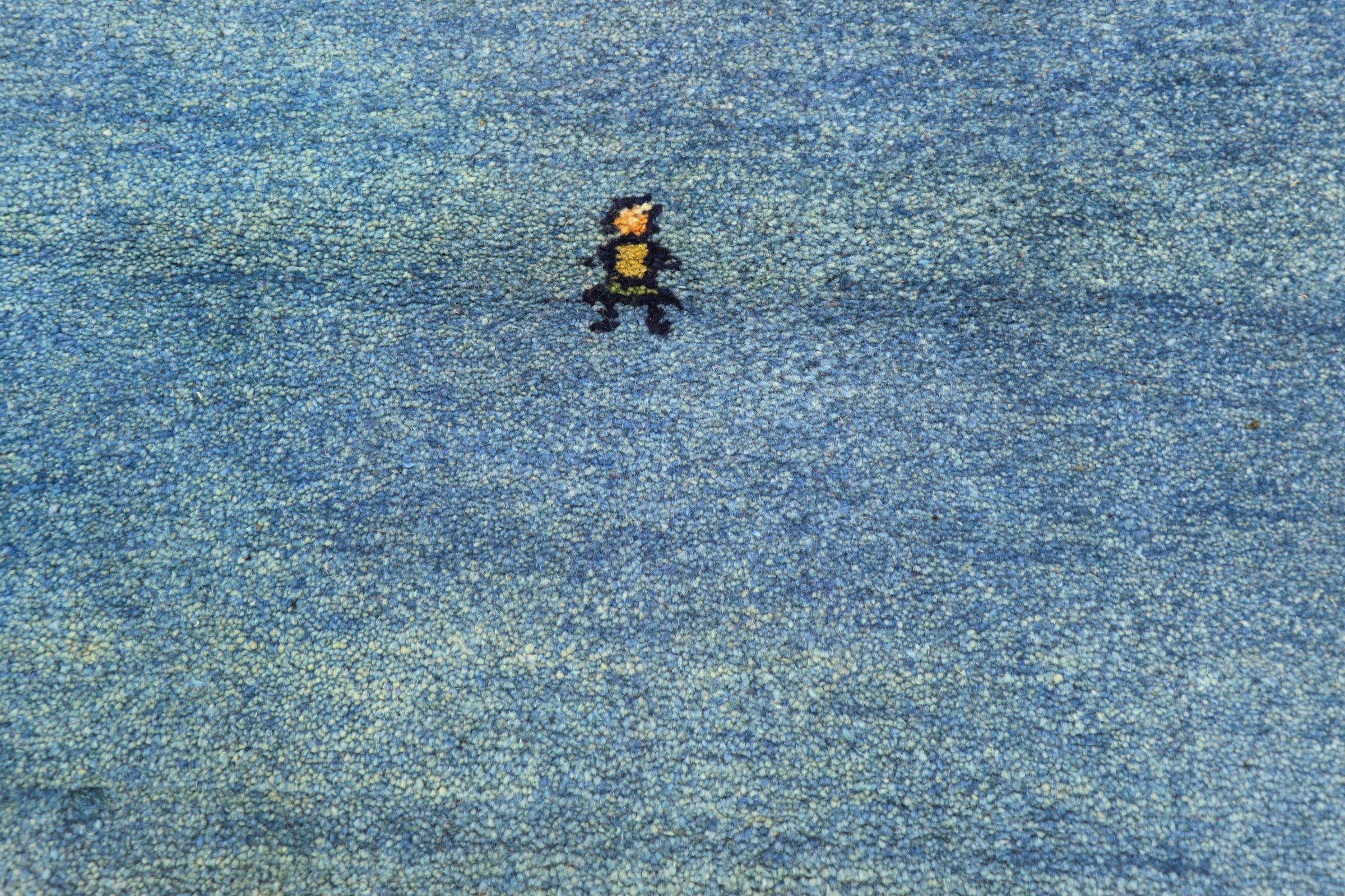 Esta hermosa alfombra de Gabbeh fue anudada a mano en la India. Las alfombras indias de Gabbeh están hechas de suave lana de oveja, son cómodas para los pies y tienen propiedades de aislamiento térmico. La mayoría de sus diseños son simples y modernos atemporales. Se inspiraron en los pueblos nómadas, que dejaban fluir en las alfombras motivos muy simples de su entorno. Las alfombras de Gabbeh de la India no se acercan mucho a la calidad de las de Gabbeh de Persia, pero tienen una muy buena relación precio-rendimiento. Por lo tanto, son perfectamente adecuadas como alfombras anudadas a mano para principiantes.