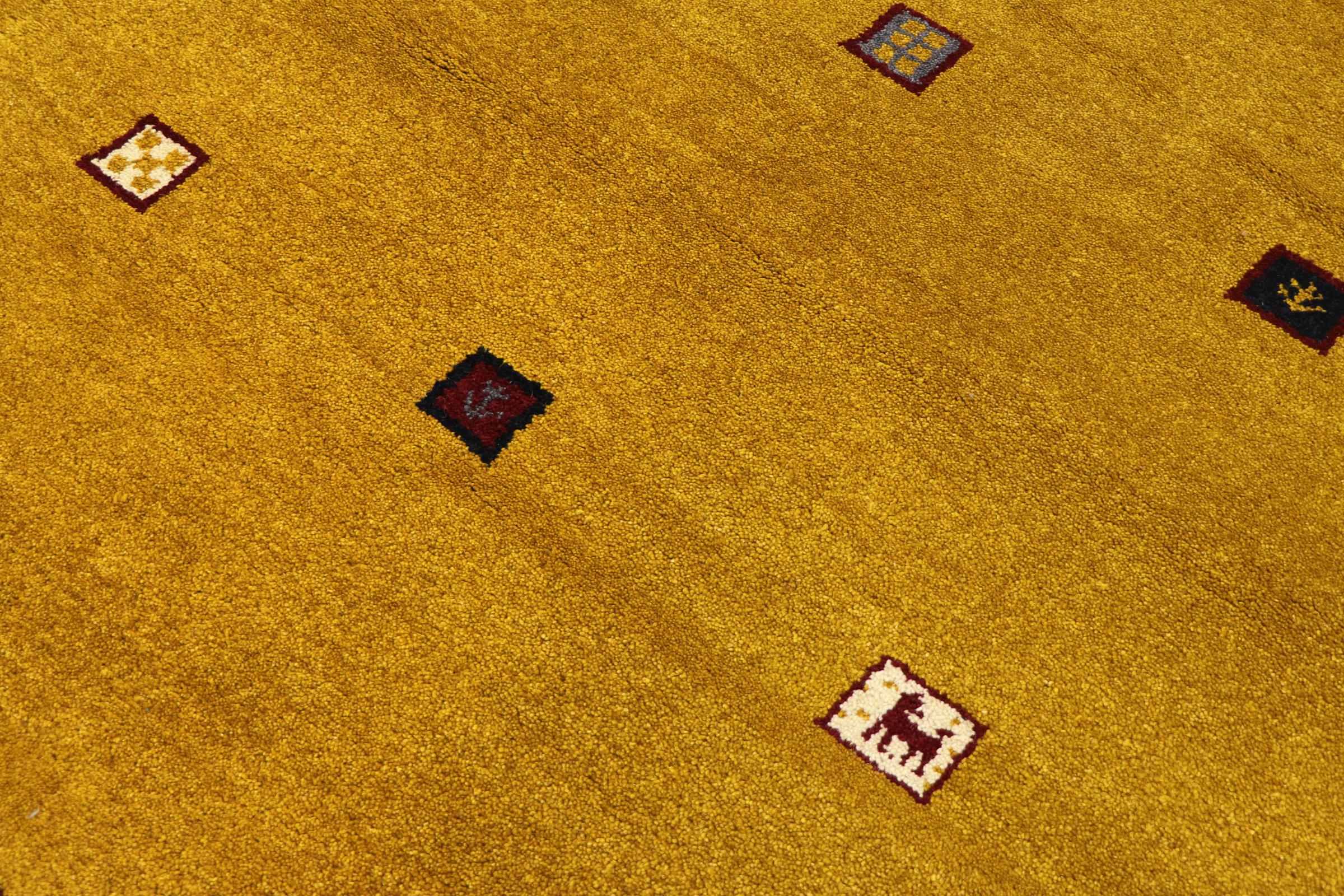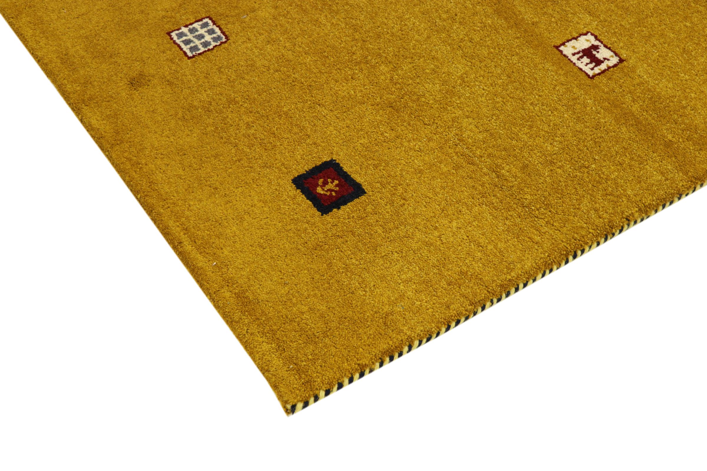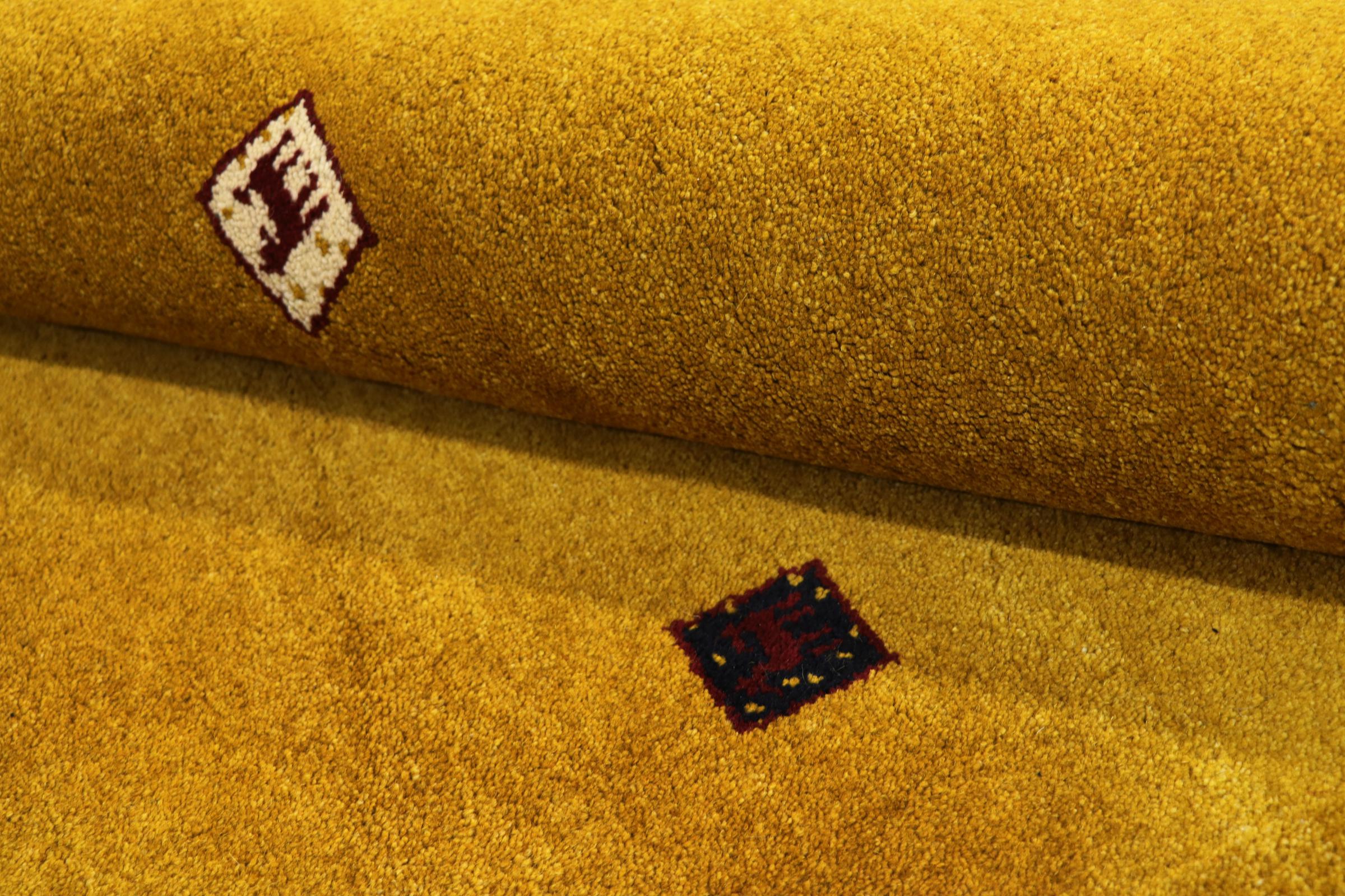 Esta hermosa alfombra de Gabbeh fue anudada a mano en la India. Las alfombras indias de Gabbeh están hechas de suave lana de oveja, son cómodas para los pies y tienen propiedades de aislamiento térmico. La mayoría de sus diseños son simples y modernos atemporales. Se inspiraron en los pueblos nómadas, que dejaban fluir en las alfombras motivos muy simples de su entorno. Las alfombras de Gabbeh de la India no se acercan mucho a la calidad de las de Gabbeh de Persia, pero tienen una muy buena relación precio-rendimiento. Por lo tanto, son perfectamente adecuadas como alfombras anudadas a mano para principiantes.