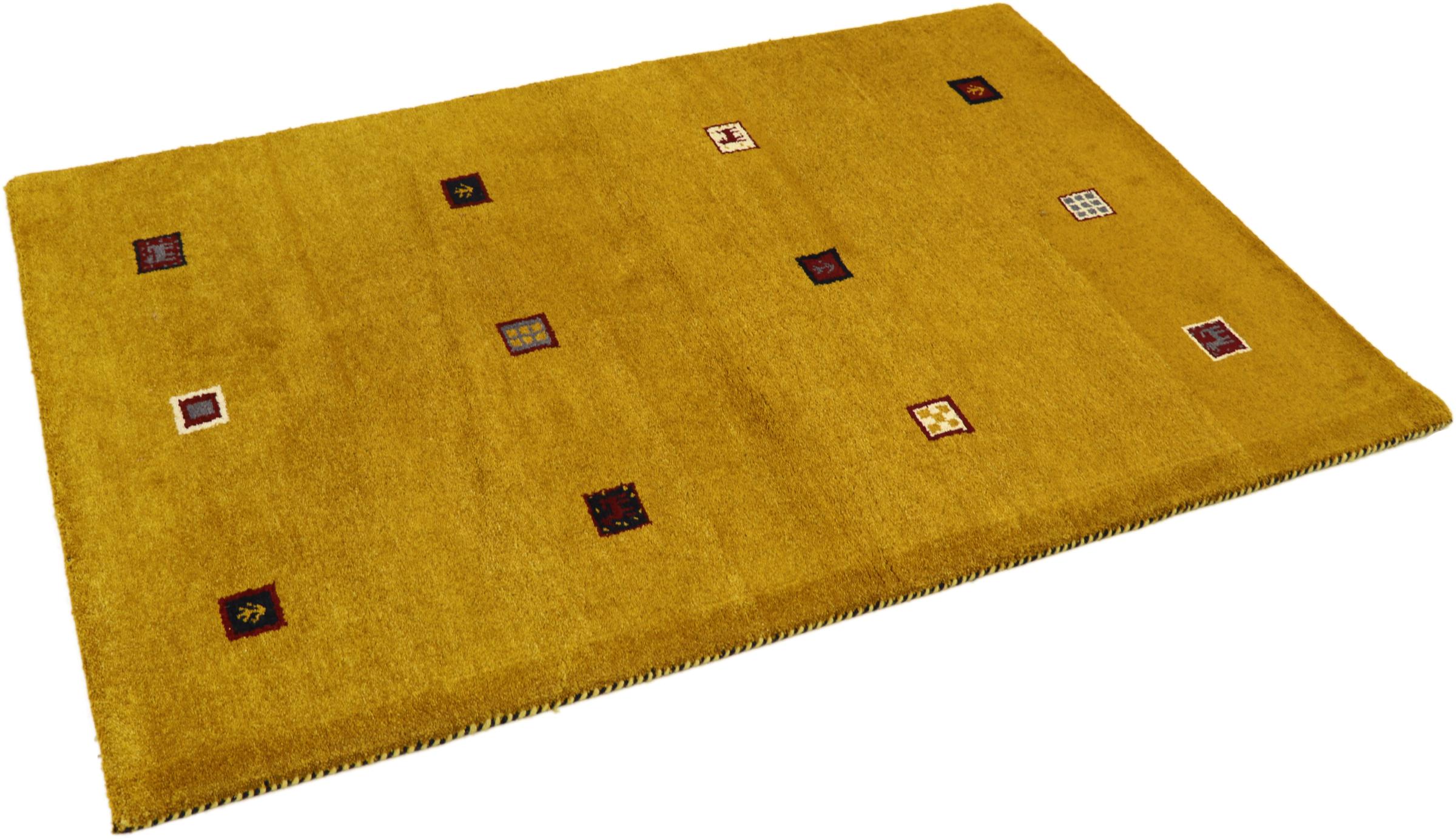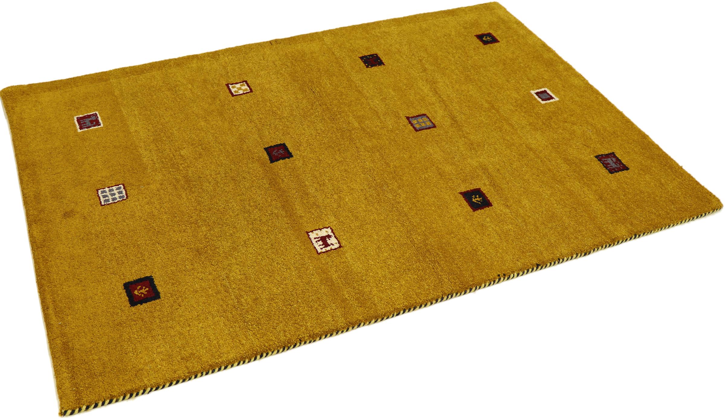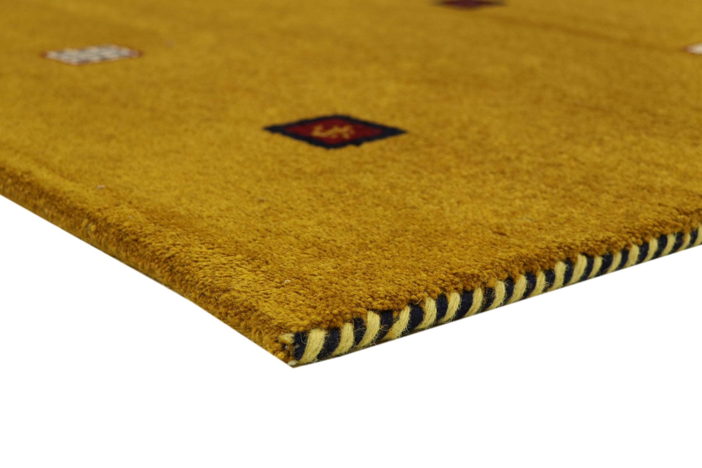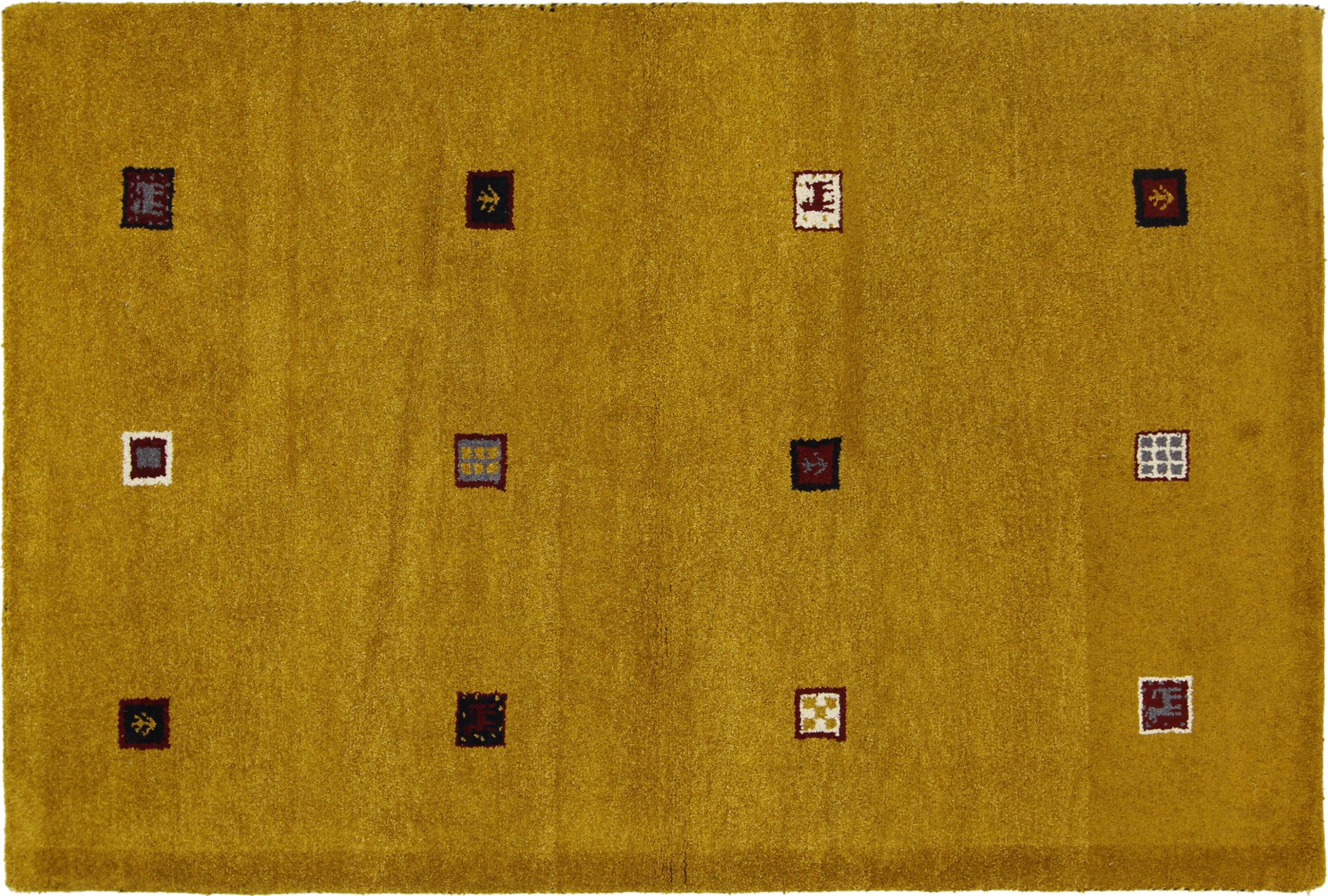 Esta hermosa alfombra de Gabbeh fue anudada a mano en la India. Las alfombras indias de Gabbeh están hechas de suave lana de oveja, son cómodas para los pies y tienen propiedades de aislamiento térmico. La mayoría de sus diseños son simples y modernos atemporales. Se inspiraron en los pueblos nómadas, que dejaban fluir en las alfombras motivos muy simples de su entorno. Las alfombras de Gabbeh de la India no se acercan mucho a la calidad de las de Gabbeh de Persia, pero tienen una muy buena relación precio-rendimiento. Por lo tanto, son perfectamente adecuadas como alfombras anudadas a mano para principiantes.