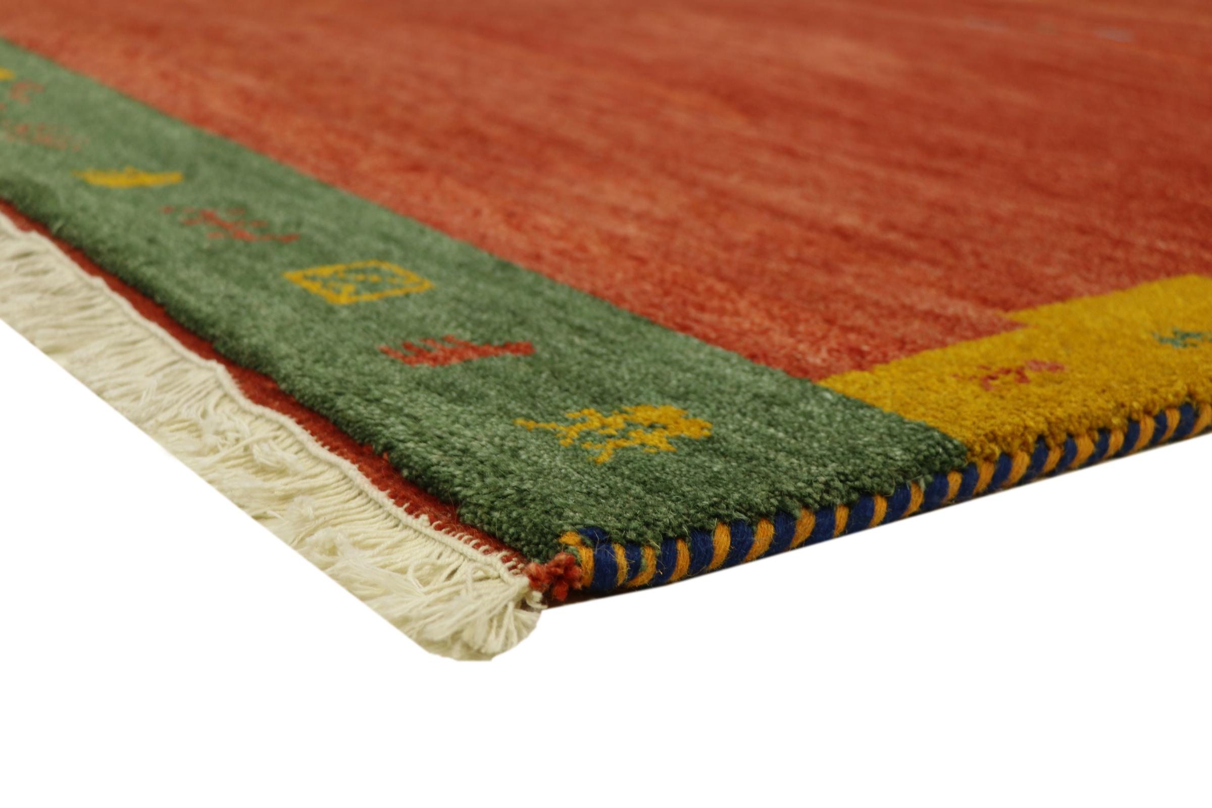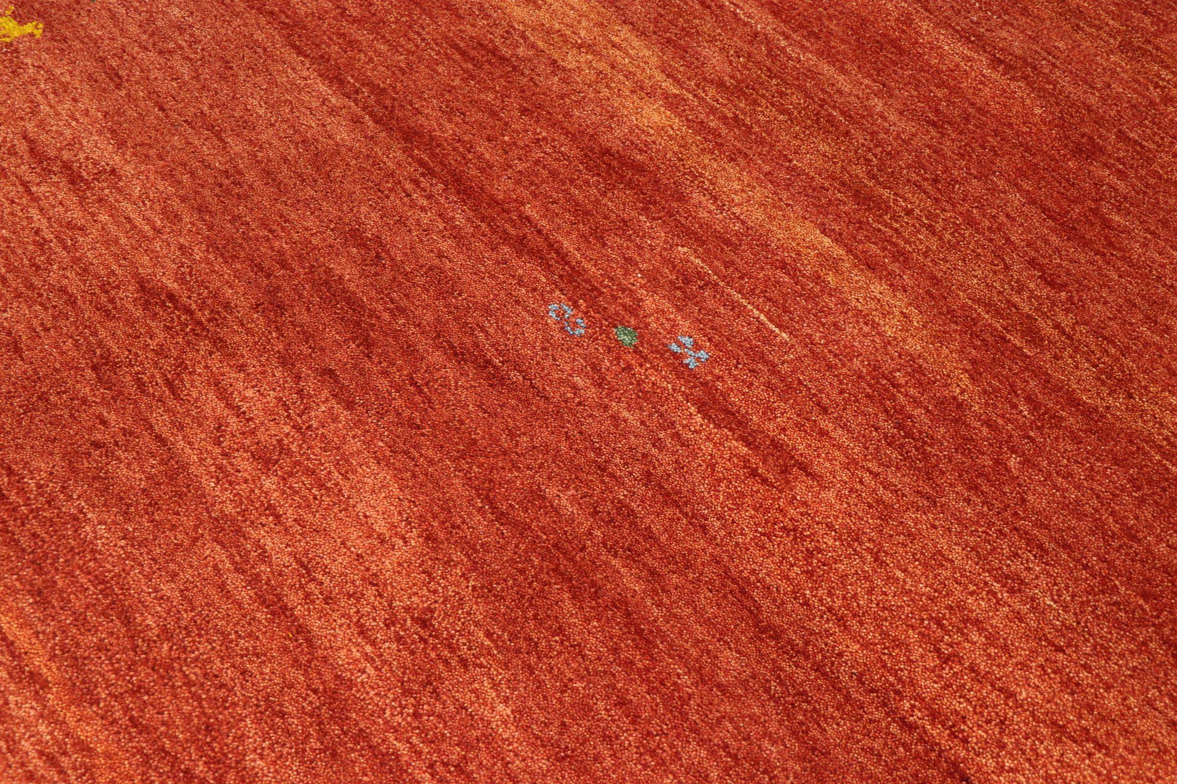 Esta hermosa alfombra de Gabbeh fue anudada a mano en la India. Las alfombras indias de Gabbeh están hechas de suave lana de oveja, son cómodas para los pies y tienen propiedades de aislamiento térmico. La mayoría de sus diseños son simples y modernos atemporales. Se inspiraron en los pueblos nómadas, que dejaban fluir en las alfombras motivos muy simples de su entorno. Las alfombras de Gabbeh de la India no se acercan mucho a la calidad de las de Gabbeh de Persia, pero tienen una muy buena relación precio-rendimiento. Por lo tanto, son perfectamente adecuadas como alfombras anudadas a mano para principiantes.