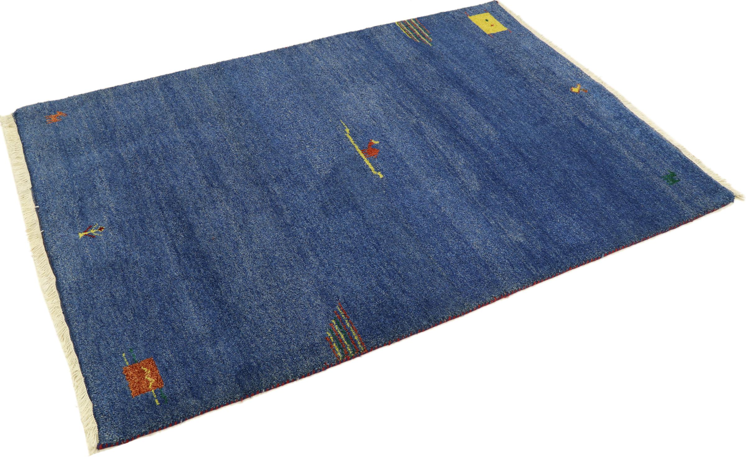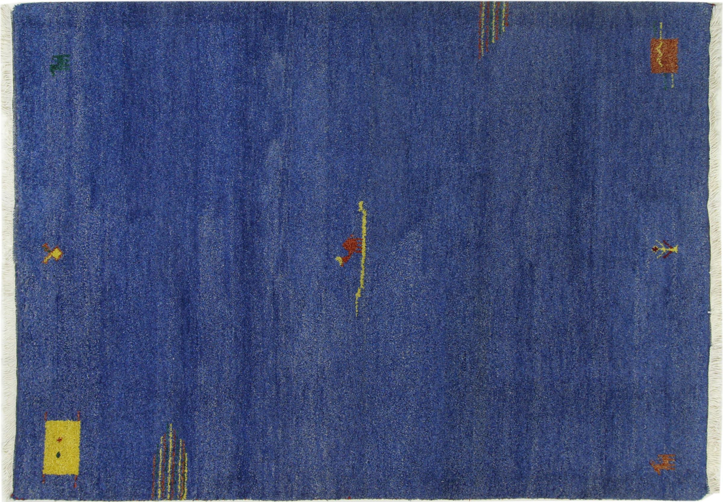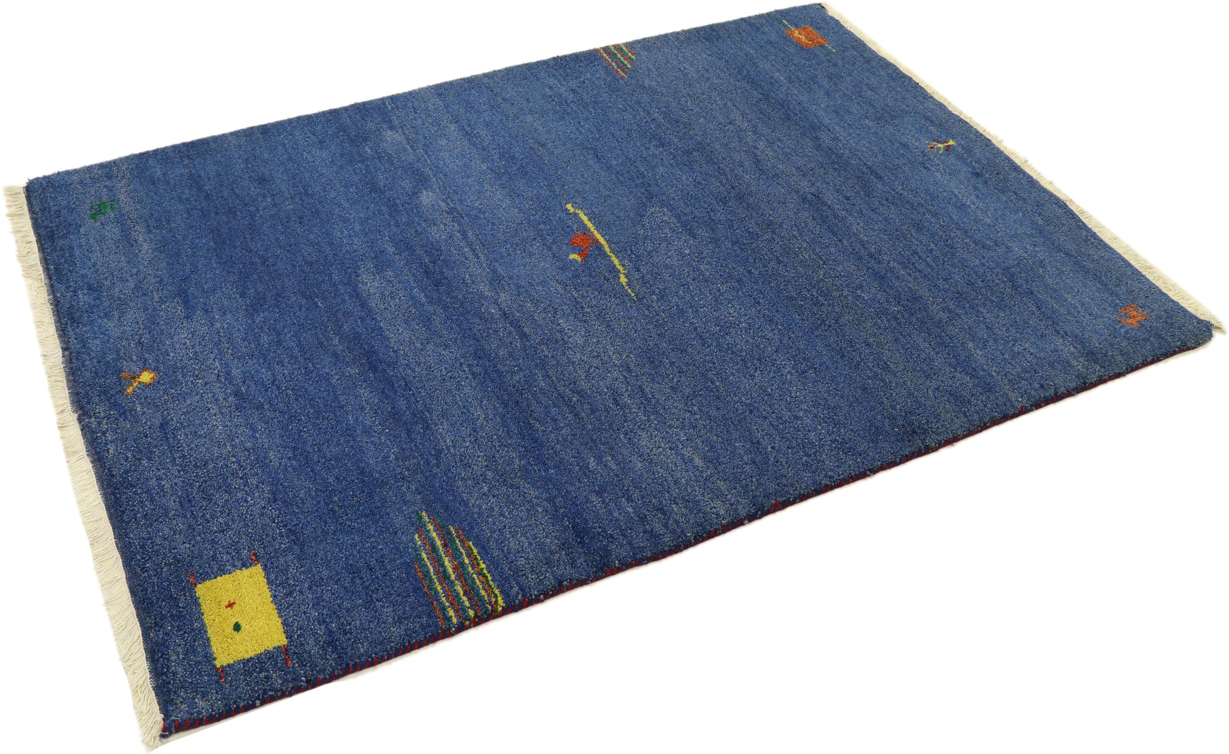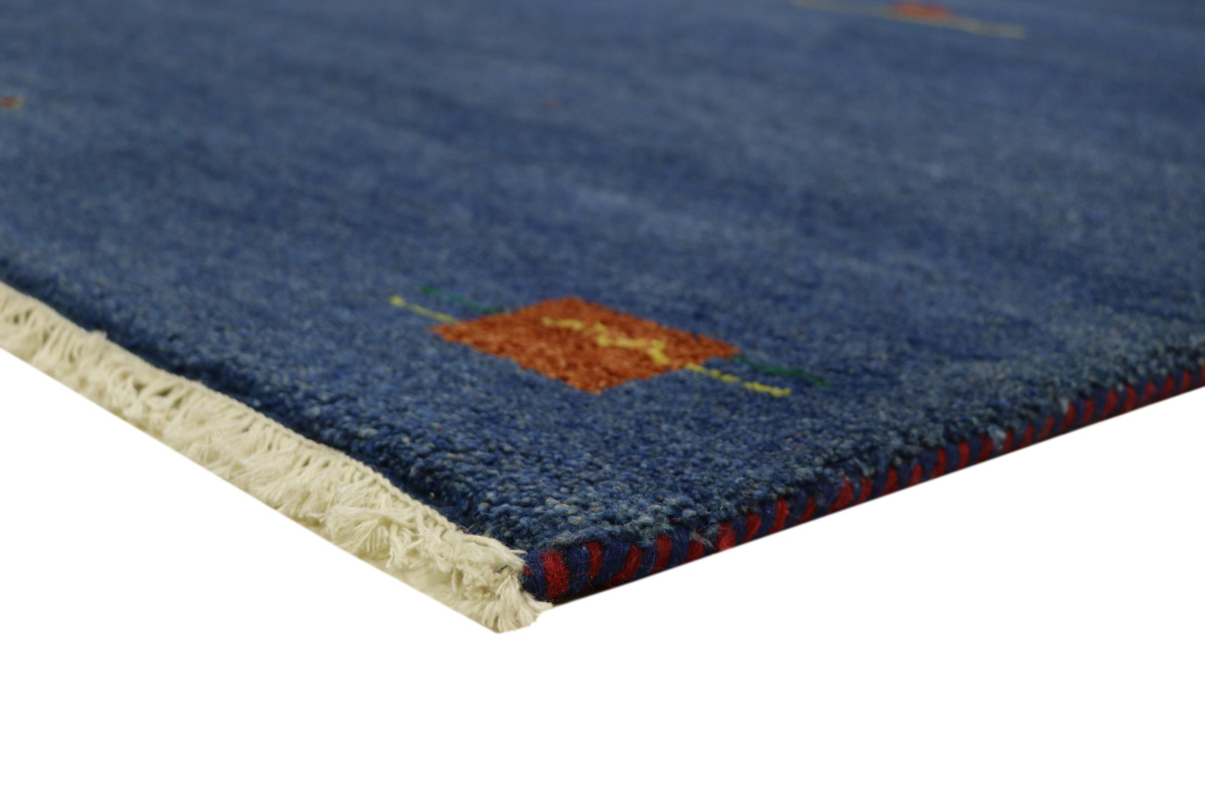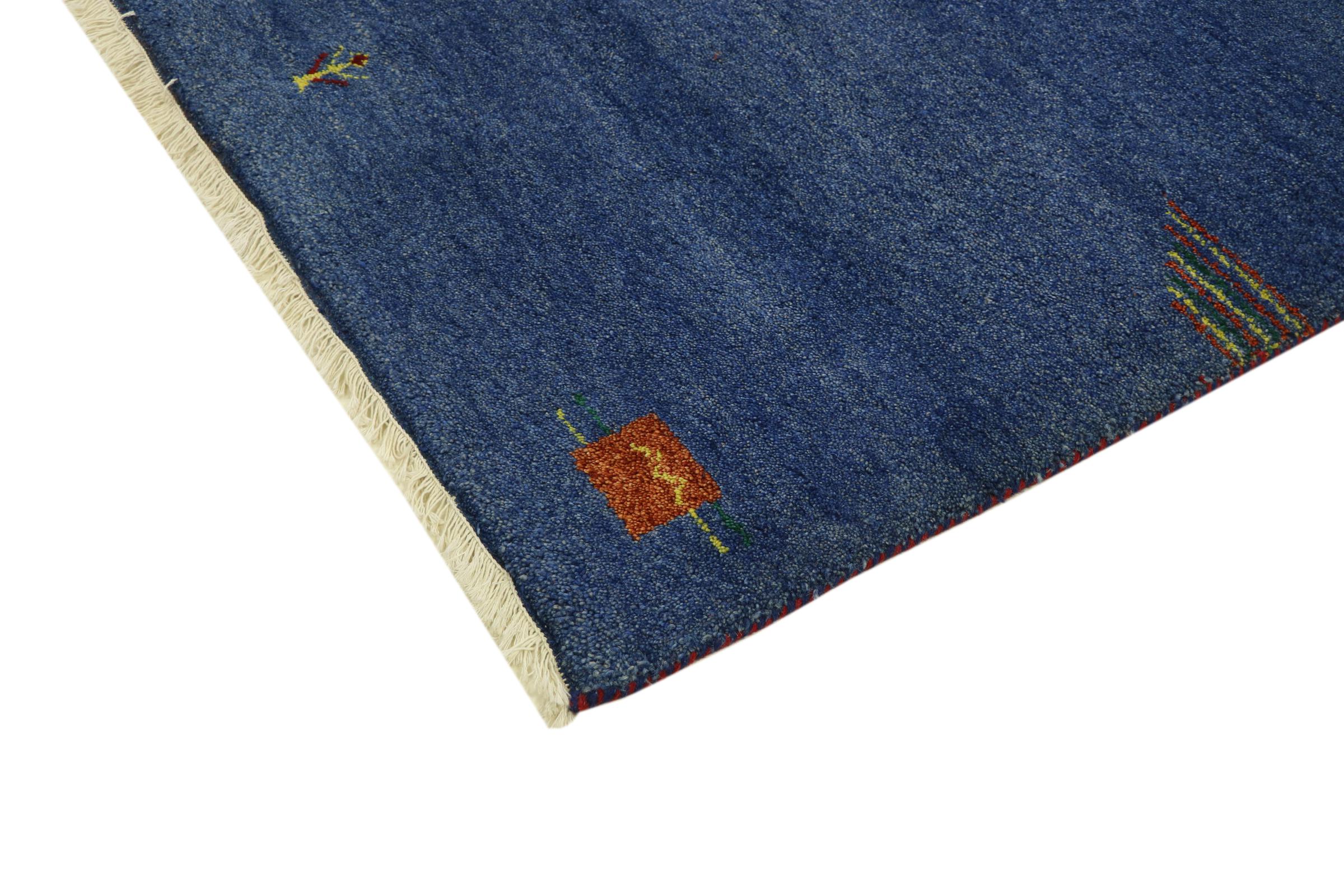 Esta hermosa alfombra de Gabbeh fue anudada a mano en la India. Las alfombras indias de Gabbeh están hechas de suave lana de oveja, son cómodas para los pies y tienen propiedades de aislamiento térmico. La mayoría de sus diseños son simples y modernos atemporales. Se inspiraron en los pueblos nómadas, que dejaban fluir en las alfombras motivos muy simples de su entorno. Las alfombras de Gabbeh de la India no se acercan mucho a la calidad de las de Gabbeh de Persia, pero tienen una muy buena relación precio-rendimiento. Por lo tanto, son perfectamente adecuadas como alfombras anudadas a mano para principiantes.