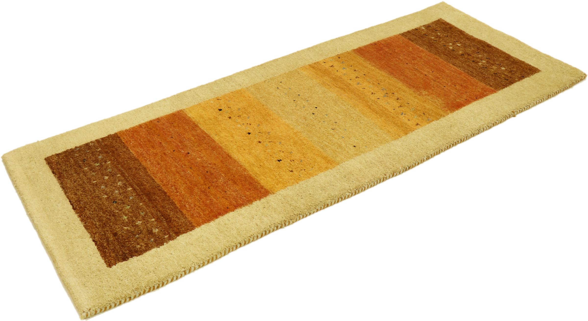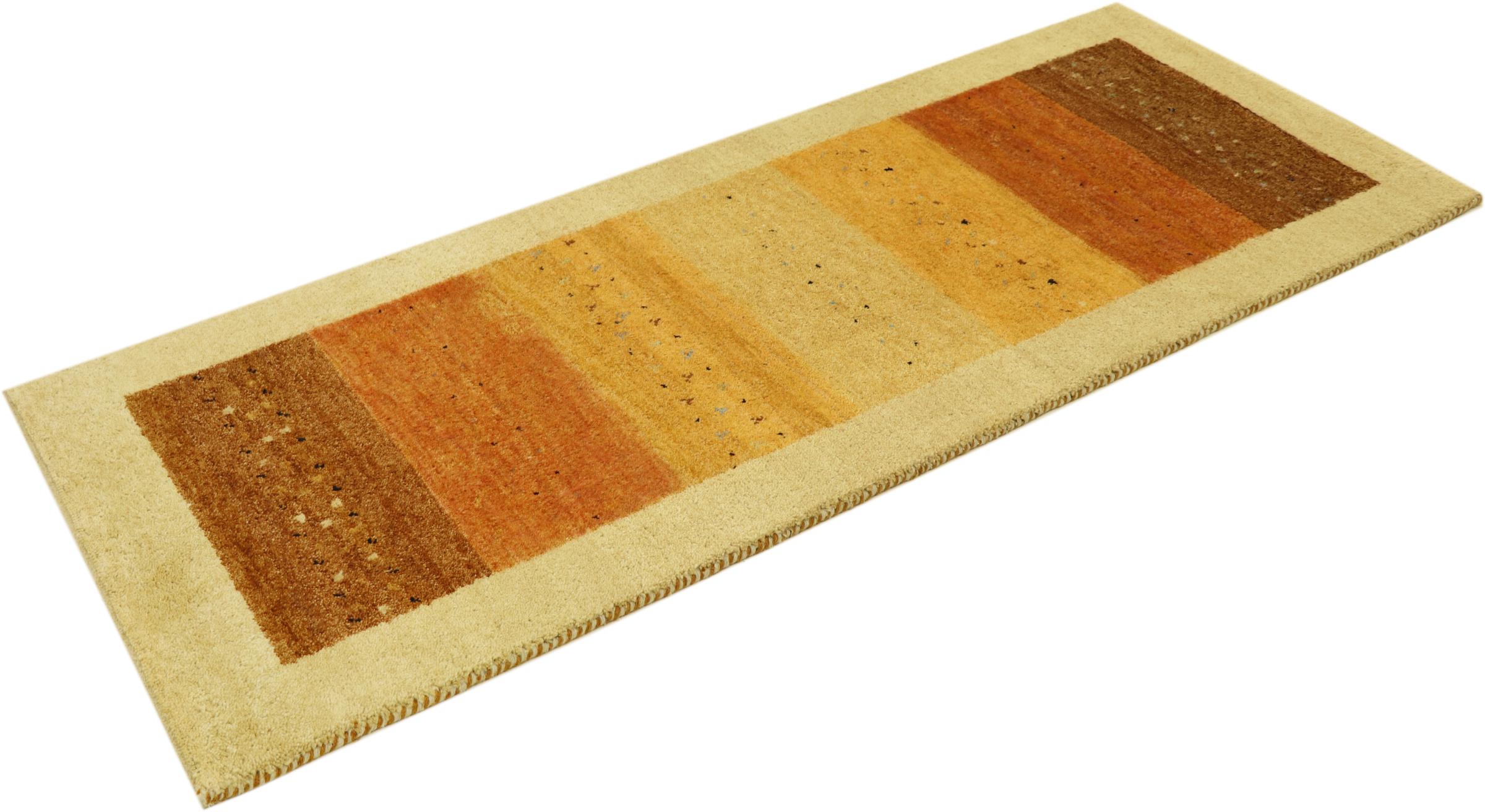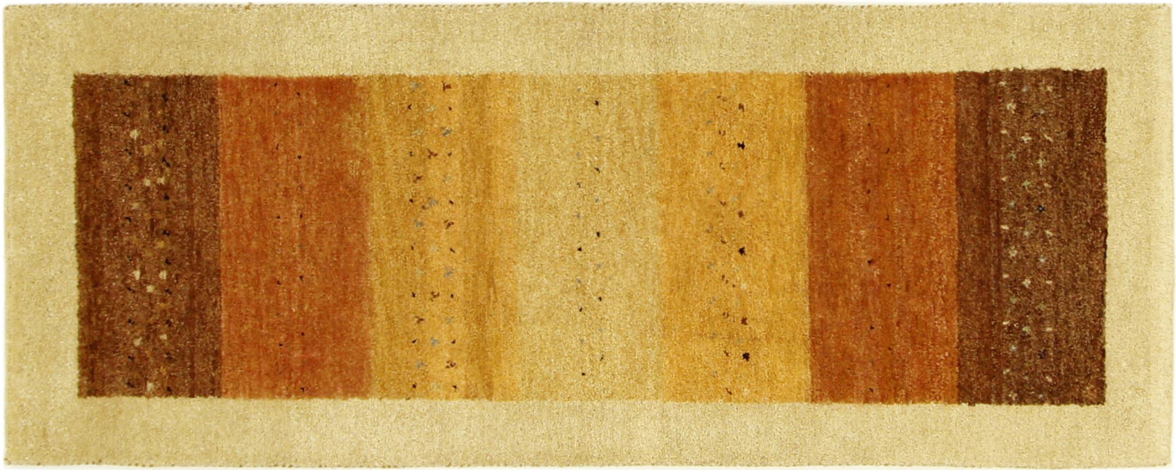 Esta hermosa alfombra de Gabbeh fue anudada a mano en la India. Las alfombras indias de Gabbeh están hechas de suave lana de oveja, son cómodas para los pies y tienen propiedades de aislamiento térmico. La mayoría de sus diseños son simples y modernos atemporales. Se inspiraron en los pueblos nómadas, que dejaban fluir en las alfombras motivos muy simples de su entorno. Las alfombras de Gabbeh de la India no se acercan mucho a la calidad de las de Gabbeh de Persia, pero tienen una muy buena relación precio-rendimiento. Por lo tanto, son perfectamente adecuadas como alfombras anudadas a mano para principiantes.