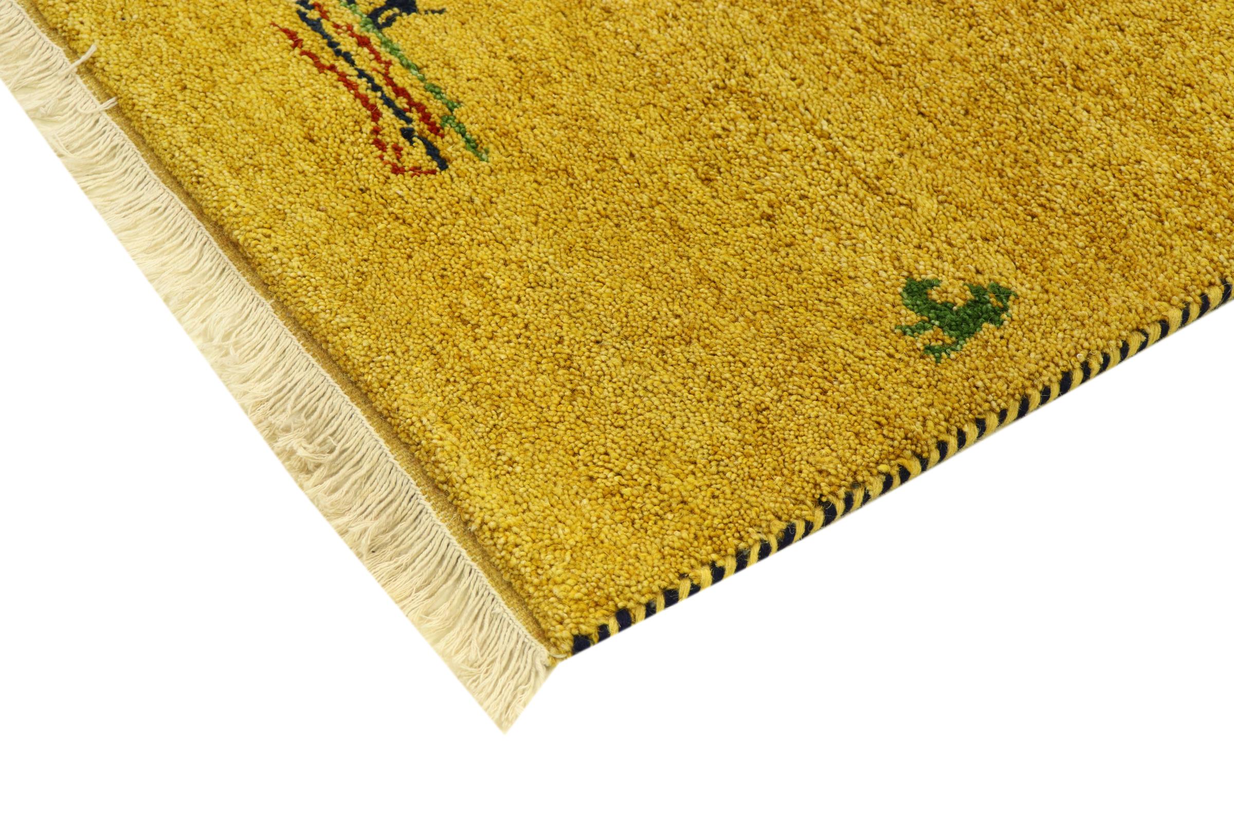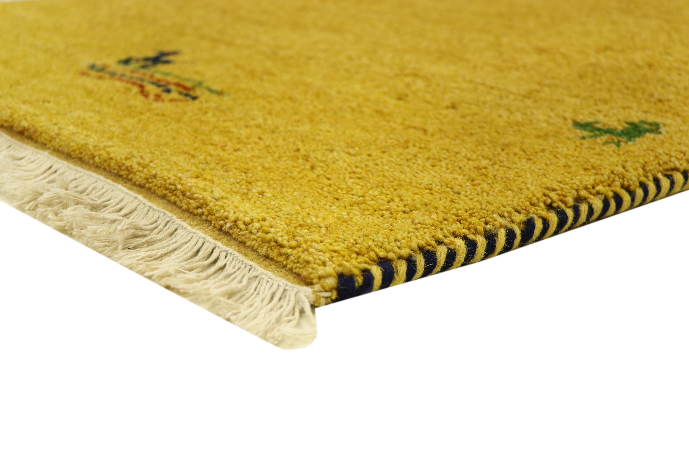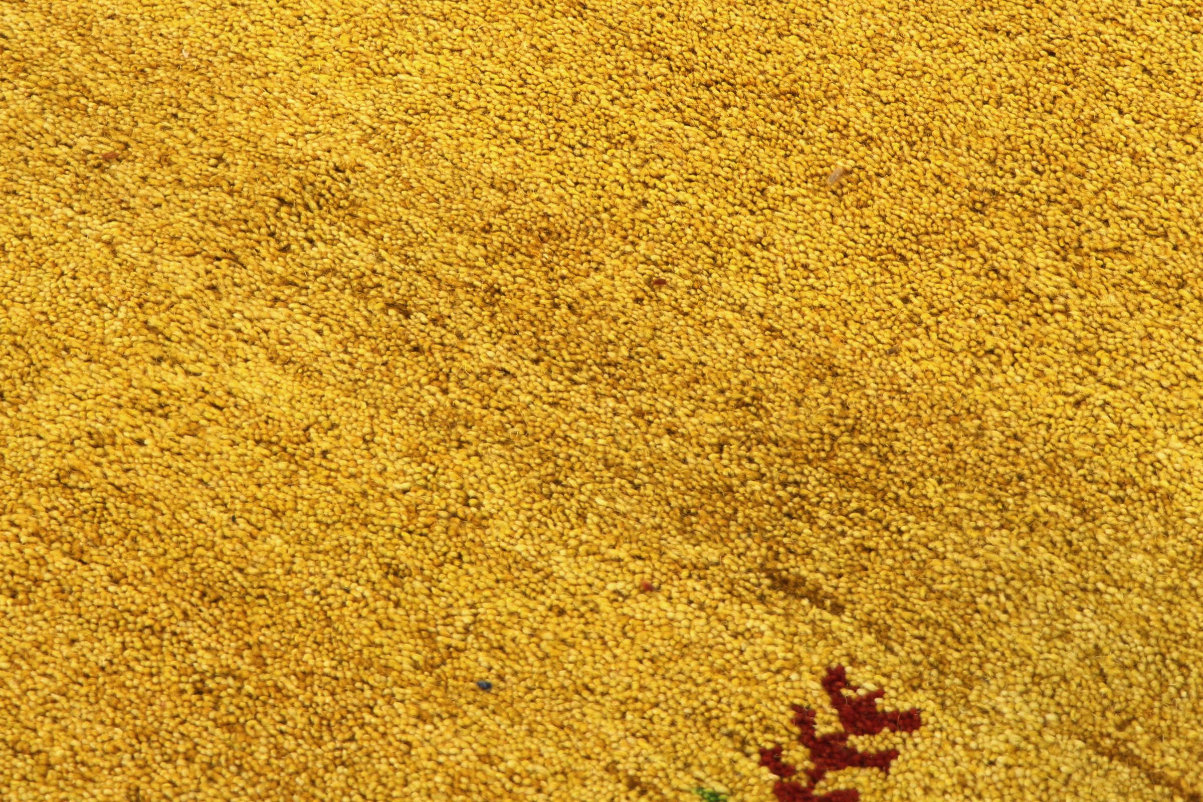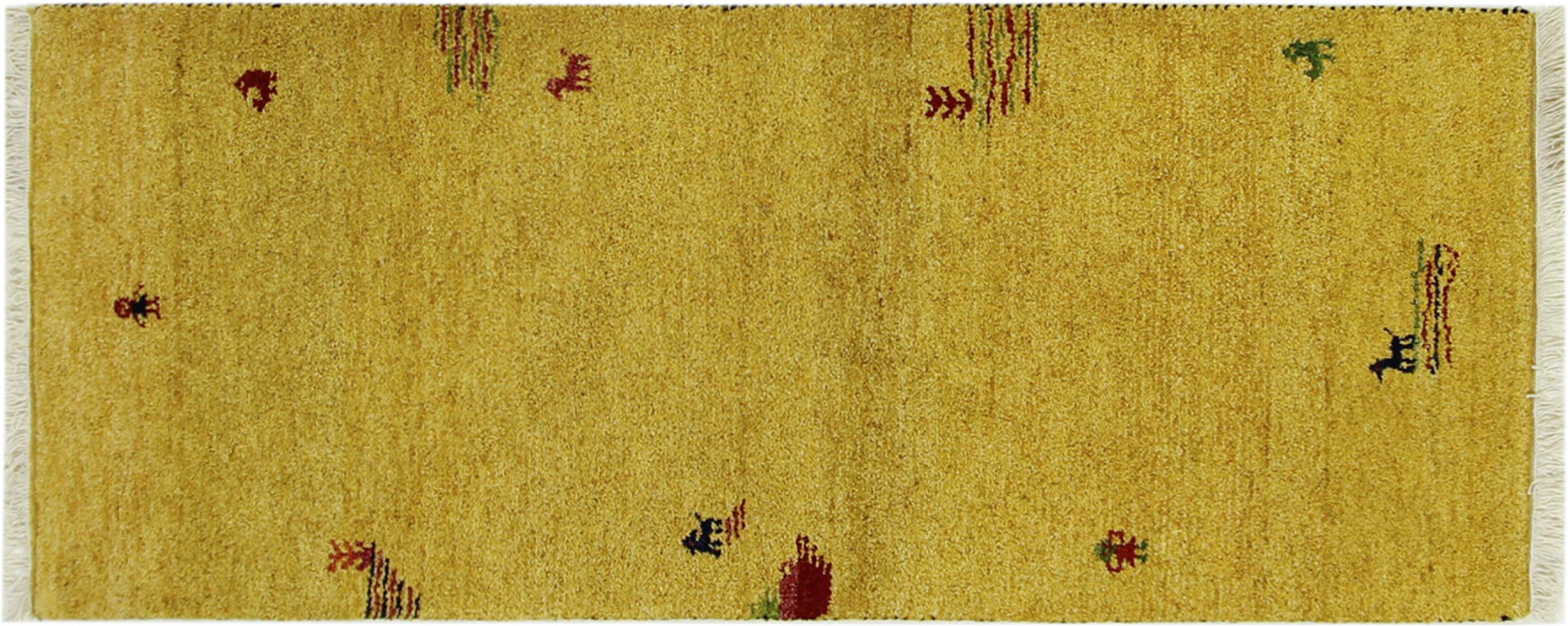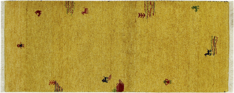 Esta hermosa alfombra de Gabbeh fue anudada a mano en la India. Las alfombras indias de Gabbeh están hechas de suave lana de oveja, son cómodas para los pies y tienen propiedades de aislamiento térmico. La mayoría de sus diseños son simples y modernos atemporales. Se inspiraron en los pueblos nómadas, que dejaban fluir en las alfombras motivos muy simples de su entorno. Las alfombras de Gabbeh de la India no se acercan mucho a la calidad de las de Gabbeh de Persia, pero tienen una muy buena relación precio-rendimiento. Por lo tanto, son perfectamente adecuadas como alfombras anudadas a mano para principiantes.