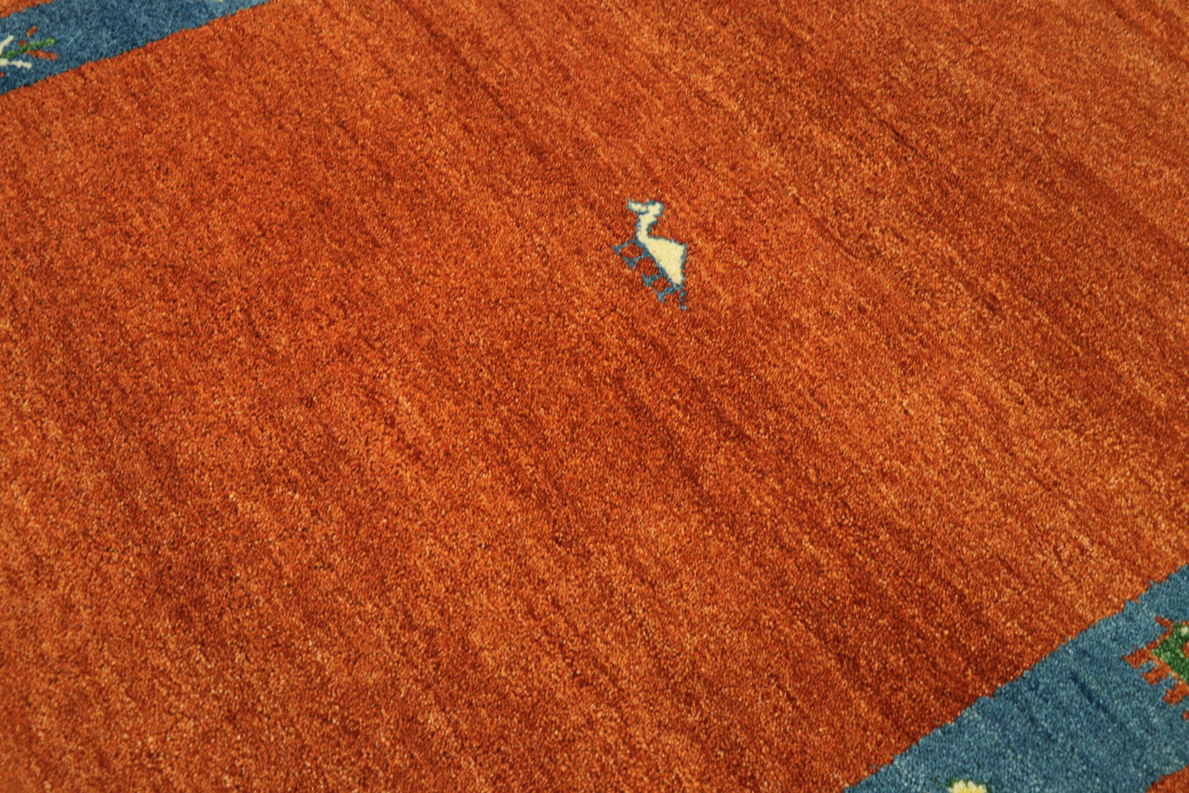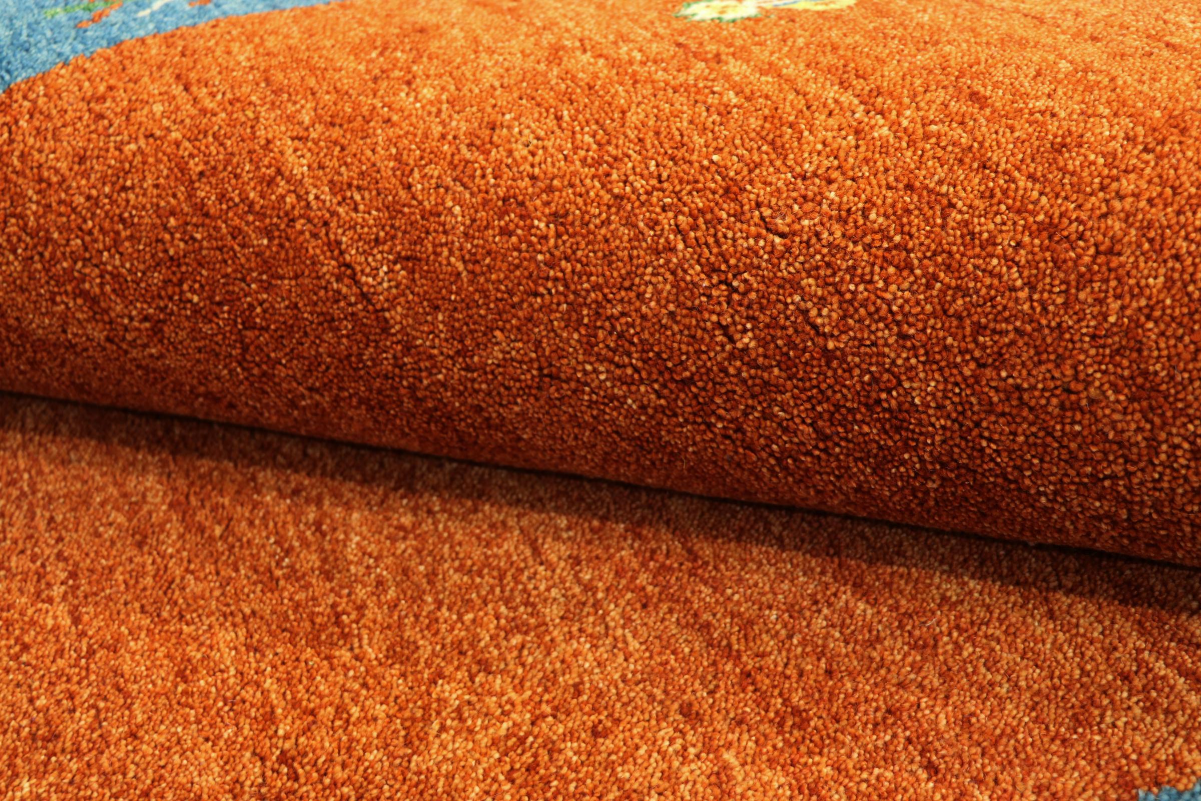 Esta hermosa alfombra de Gabbeh fue anudada a mano en la India. Las alfombras indias de Gabbeh están hechas de suave lana de oveja, son cómodas para los pies y tienen propiedades de aislamiento térmico. La mayoría de sus diseños son simples y modernos atemporales. Se inspiraron en los pueblos nómadas, que dejaban fluir en las alfombras motivos muy simples de su entorno. Las alfombras de Gabbeh de la India no se acercan mucho a la calidad de las de Gabbeh de Persia, pero tienen una muy buena relación precio-rendimiento. Por lo tanto, son perfectamente adecuadas como alfombras anudadas a mano para principiantes.