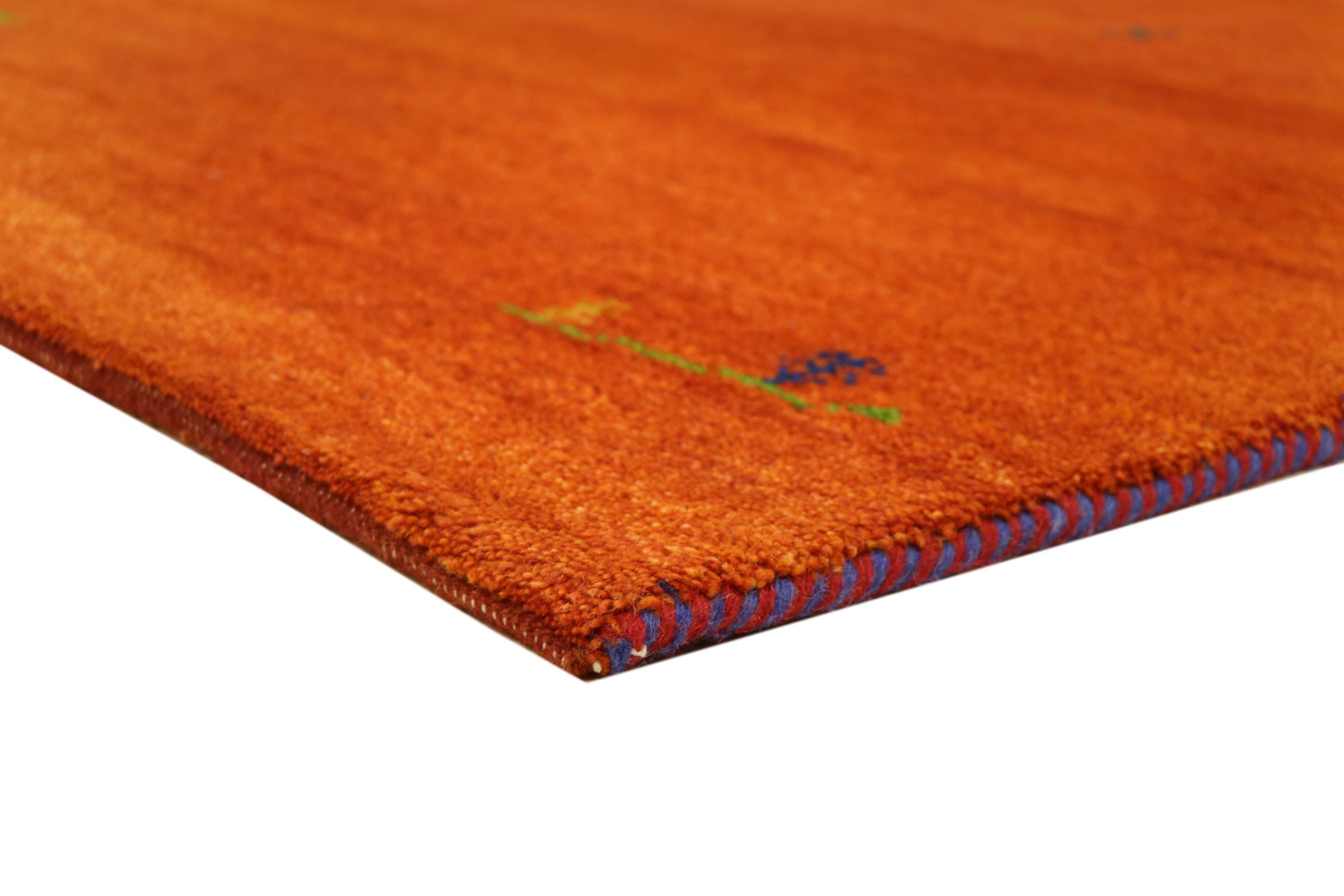 Esta hermosa alfombra de Gabbeh fue anudada a mano en la India. Las alfombras indias de Gabbeh están hechas de suave lana de oveja, son cómodas para los pies y tienen propiedades de aislamiento térmico. La mayoría de sus diseños son simples y modernos atemporales. Se inspiraron en los pueblos nómadas, que dejaban fluir en las alfombras motivos muy simples de su entorno. Las alfombras de Gabbeh de la India no se acercan mucho a la calidad de las de Gabbeh de Persia, pero tienen una muy buena relación precio-rendimiento. Por lo tanto, son perfectamente adecuadas como alfombras anudadas a mano para principiantes.