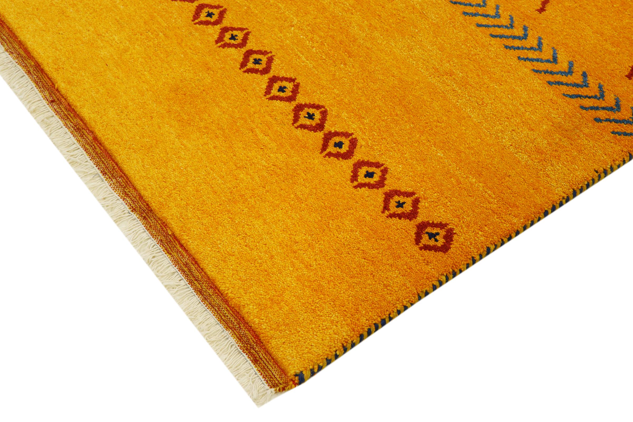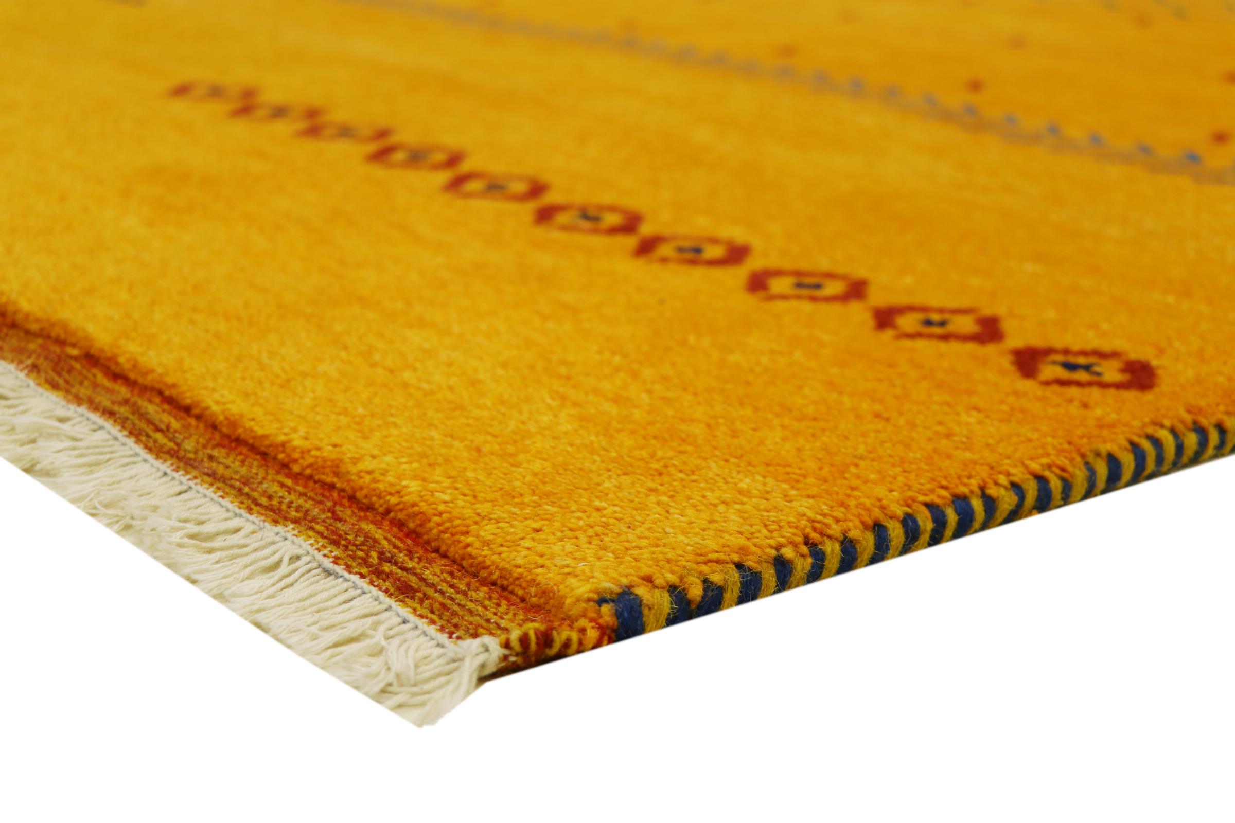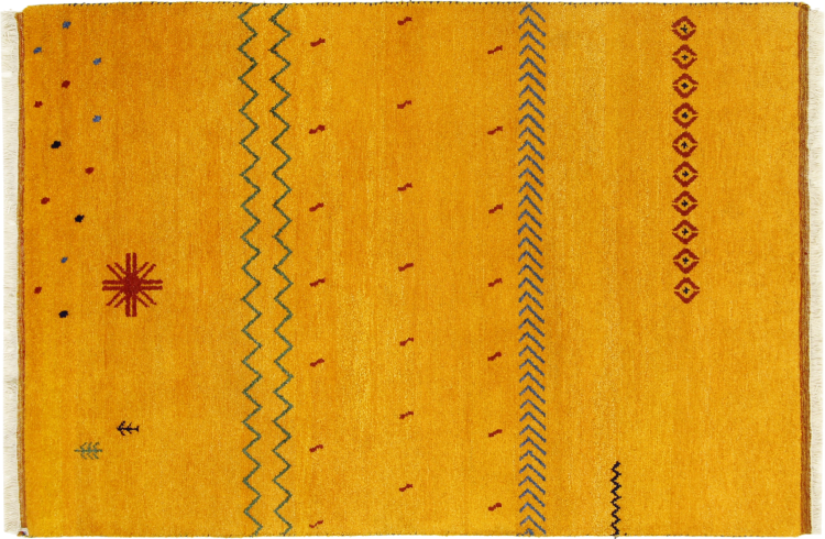 Esta hermosa alfombra de Gabbeh fue anudada a mano en la India. Las alfombras indias de Gabbeh están hechas de suave lana de oveja, son cómodas para los pies y tienen propiedades de aislamiento térmico. La mayoría de sus diseños son simples y modernos atemporales. Se inspiraron en los pueblos nómadas, que dejaban fluir en las alfombras motivos muy simples de su entorno. Las alfombras de Gabbeh de la India no se acercan mucho a la calidad de las de Gabbeh de Persia, pero tienen una muy buena relación precio-rendimiento. Por lo tanto, son perfectamente adecuadas como alfombras anudadas a mano para principiantes.
