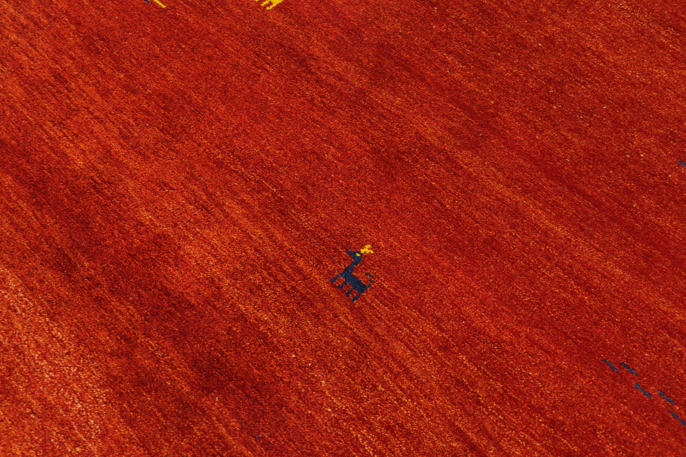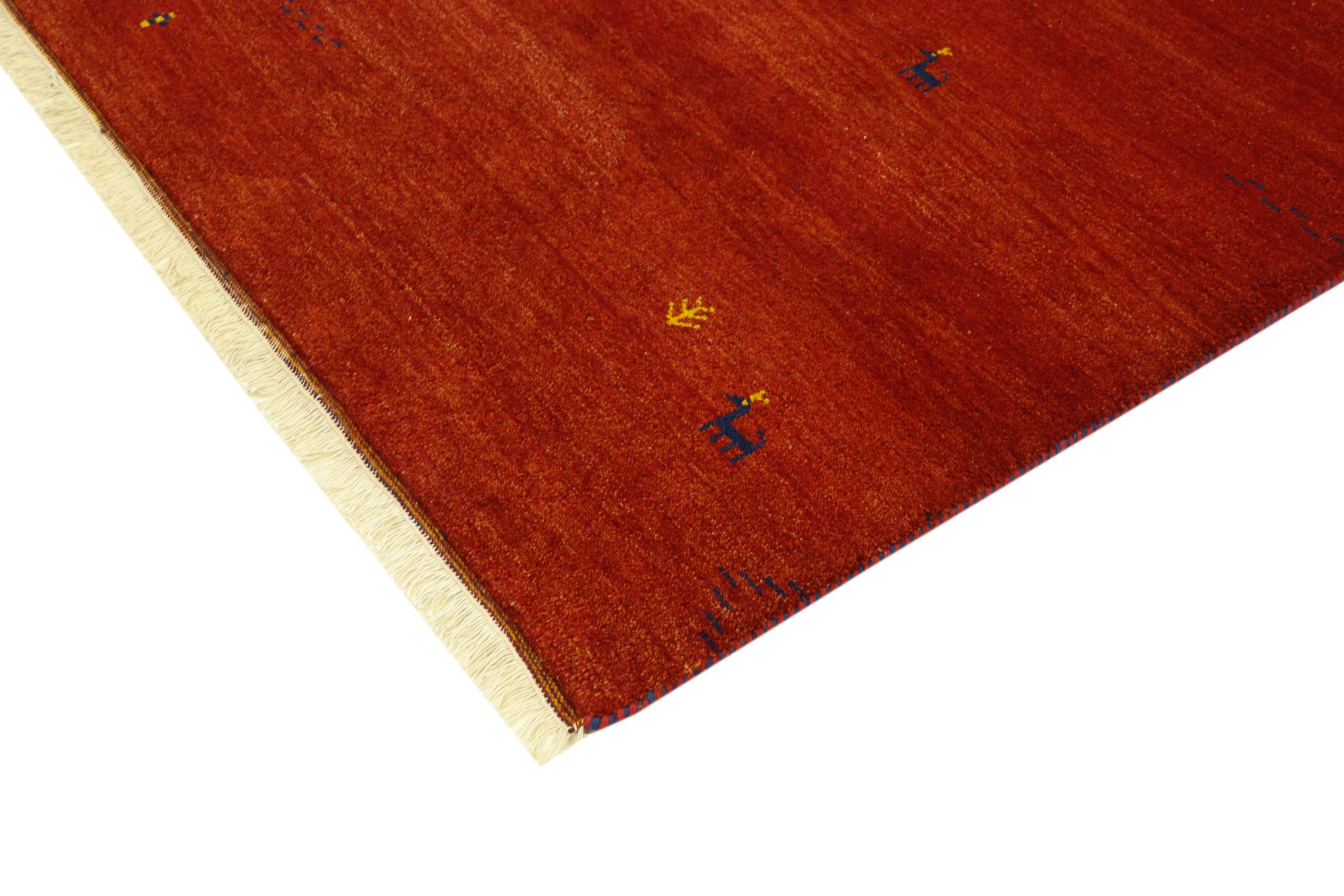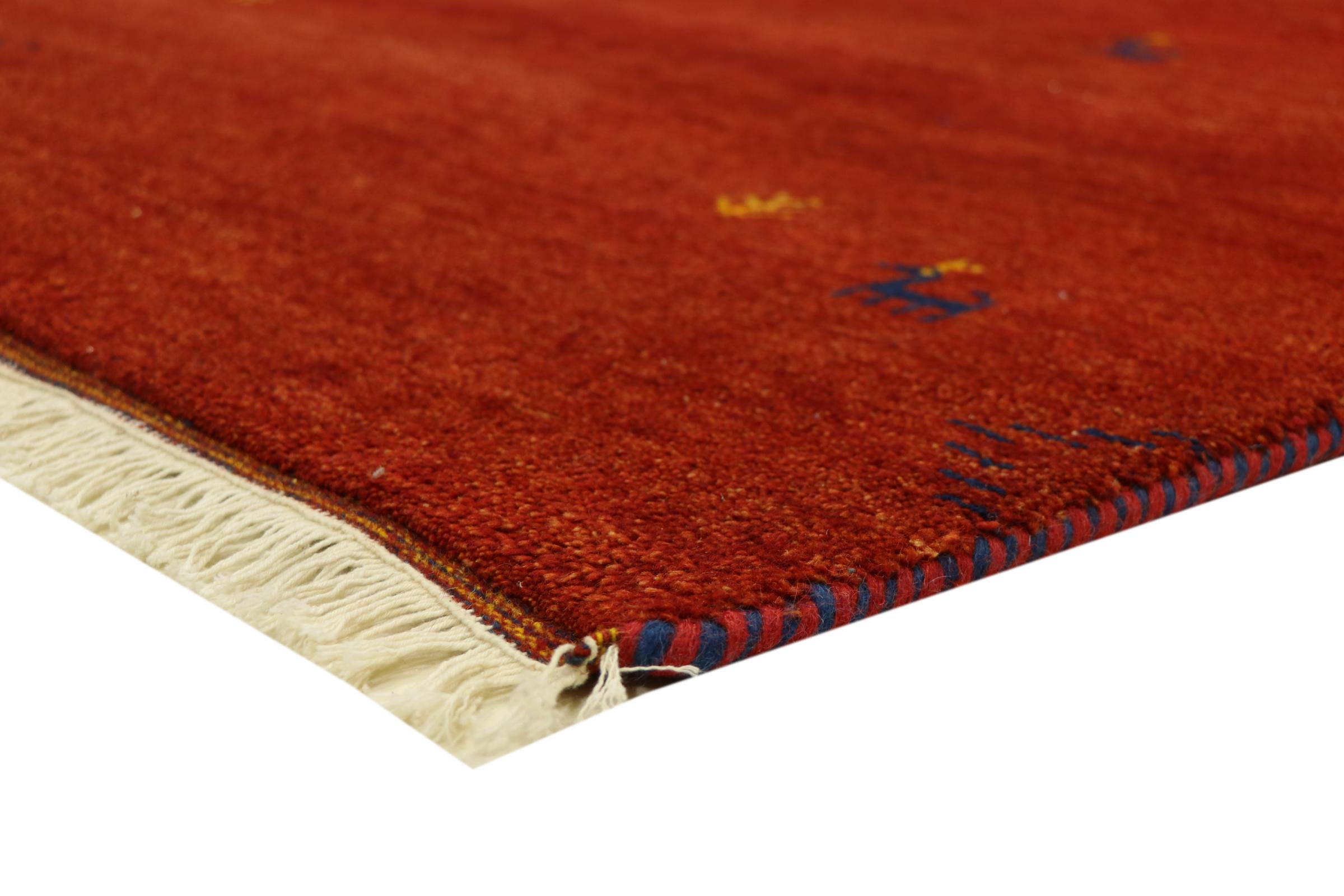 Esta hermosa alfombra de Gabbeh fue anudada a mano en la India. Las alfombras indias de Gabbeh están hechas de suave lana de oveja, son cómodas para los pies y tienen propiedades de aislamiento térmico. La mayoría de sus diseños son simples y modernos atemporales. Se inspiraron en los pueblos nómadas, que dejaban fluir en las alfombras motivos muy simples de su entorno. Las alfombras de Gabbeh de la India no se acercan mucho a la calidad de las de Gabbeh de Persia, pero tienen una muy buena relación precio-rendimiento. Por lo tanto, son perfectamente adecuadas como alfombras anudadas a mano para principiantes.