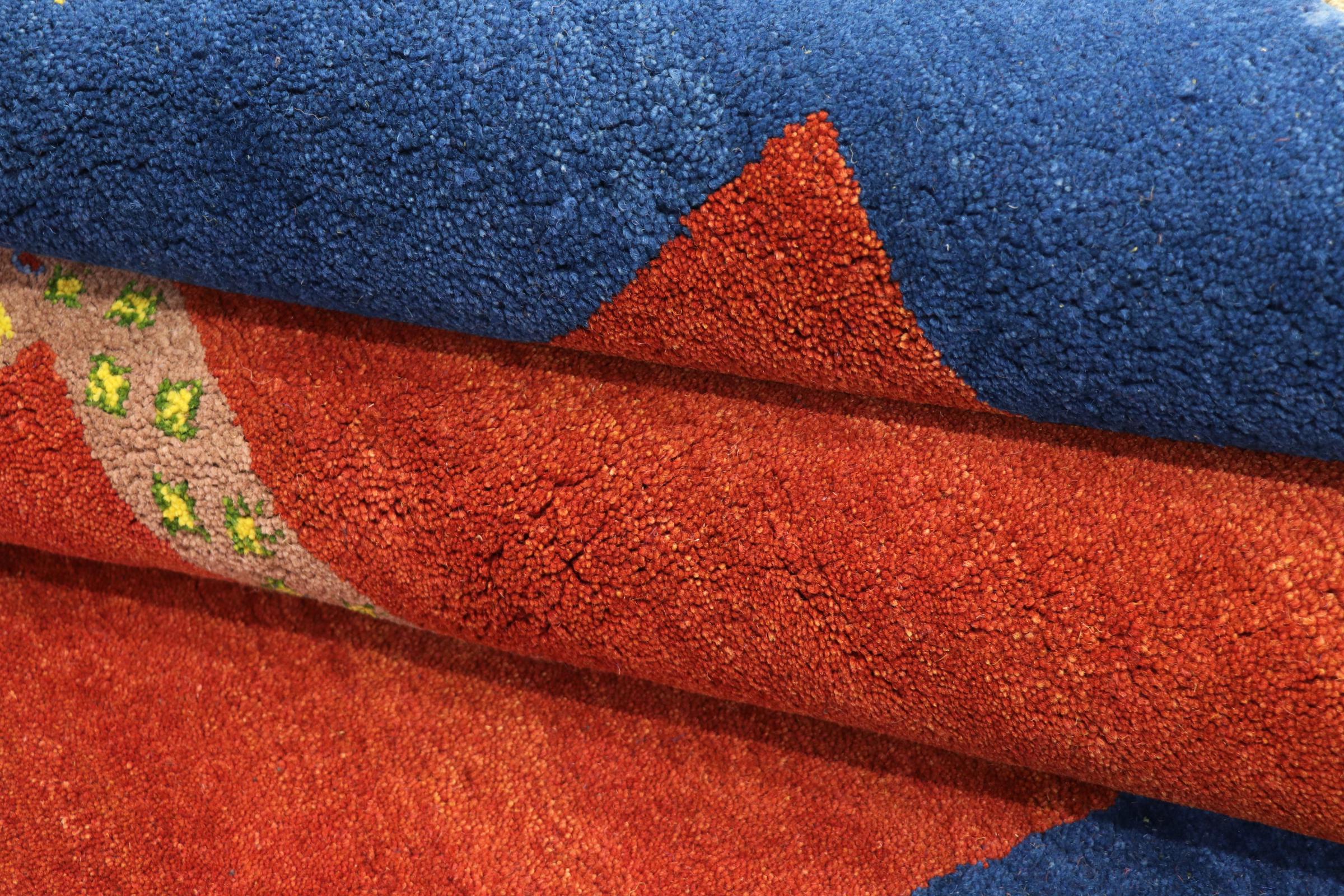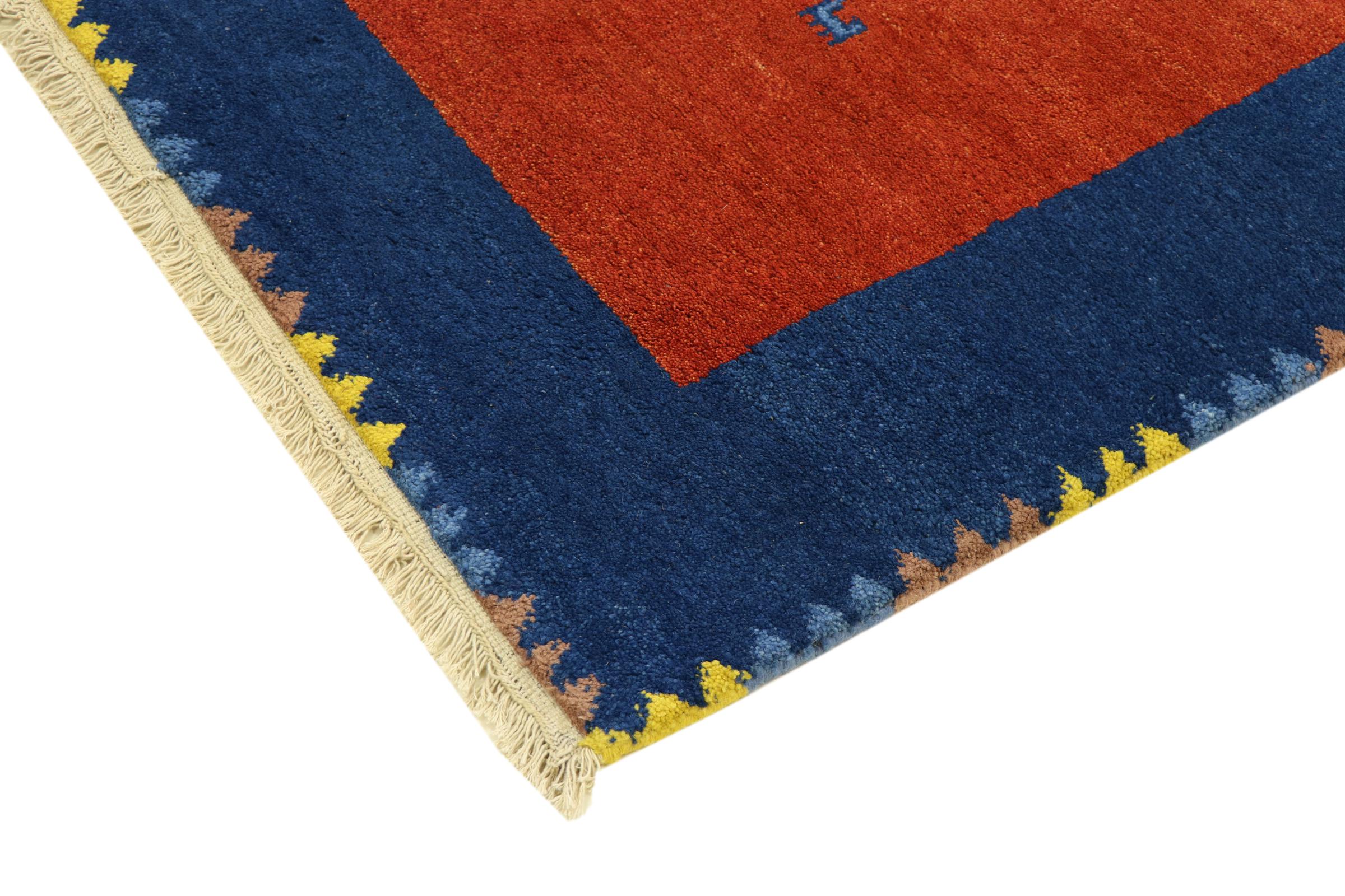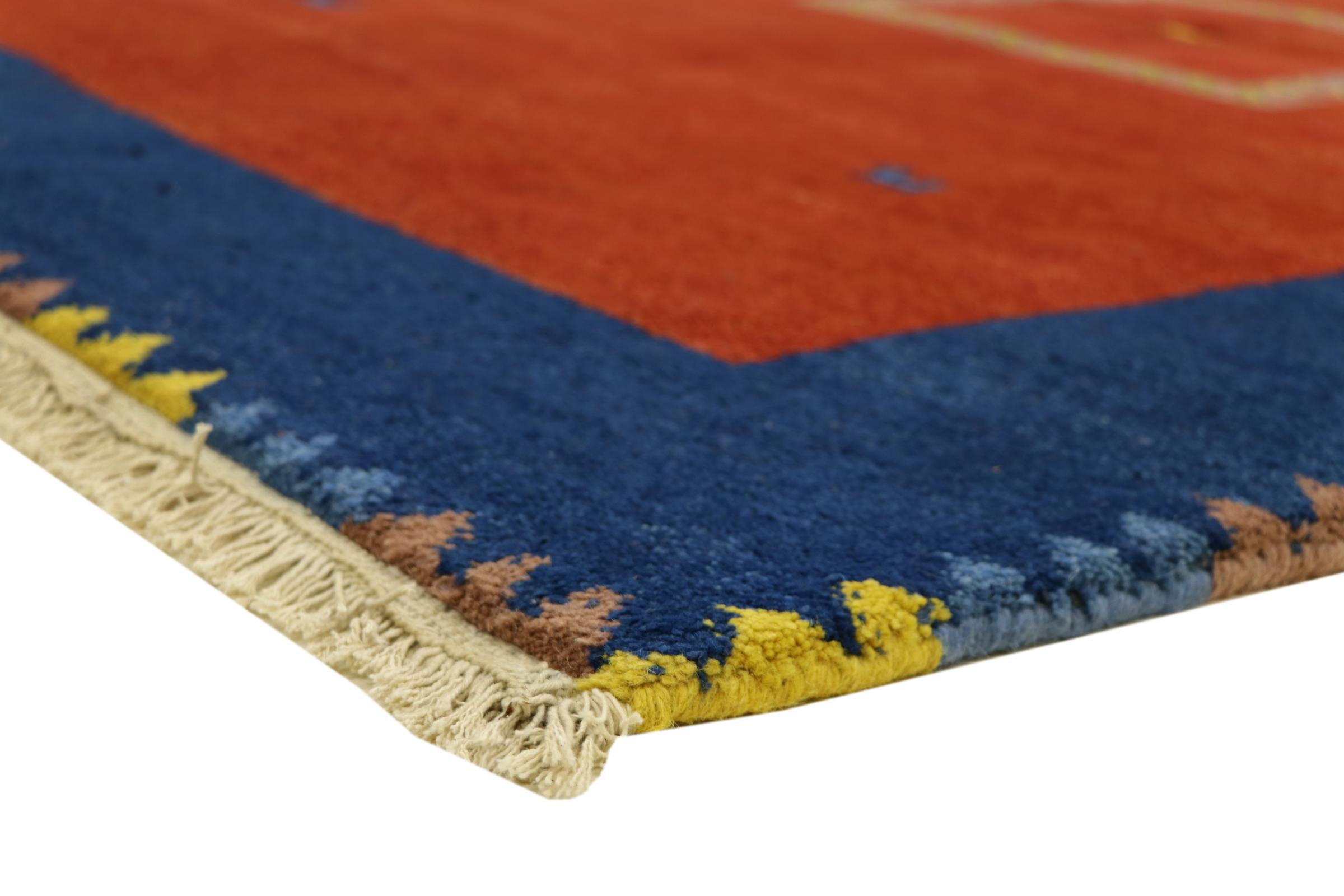 Esta hermosa alfombra de Gabbeh fue anudada a mano en la India. Las alfombras indias de Gabbeh están hechas de suave lana de oveja, son cómodas para los pies y tienen propiedades de aislamiento térmico. La mayoría de sus diseños son simples y modernos atemporales. Se inspiraron en los pueblos nómadas, que dejaban fluir en las alfombras motivos muy simples de su entorno. Las alfombras de Gabbeh de la India no se acercan mucho a la calidad de las de Gabbeh de Persia, pero tienen una muy buena relación precio-rendimiento. Por lo tanto, son perfectamente adecuadas como alfombras anudadas a mano para principiantes.