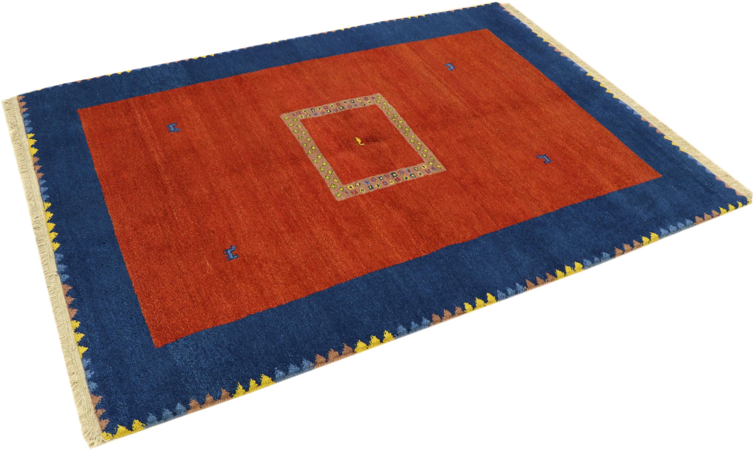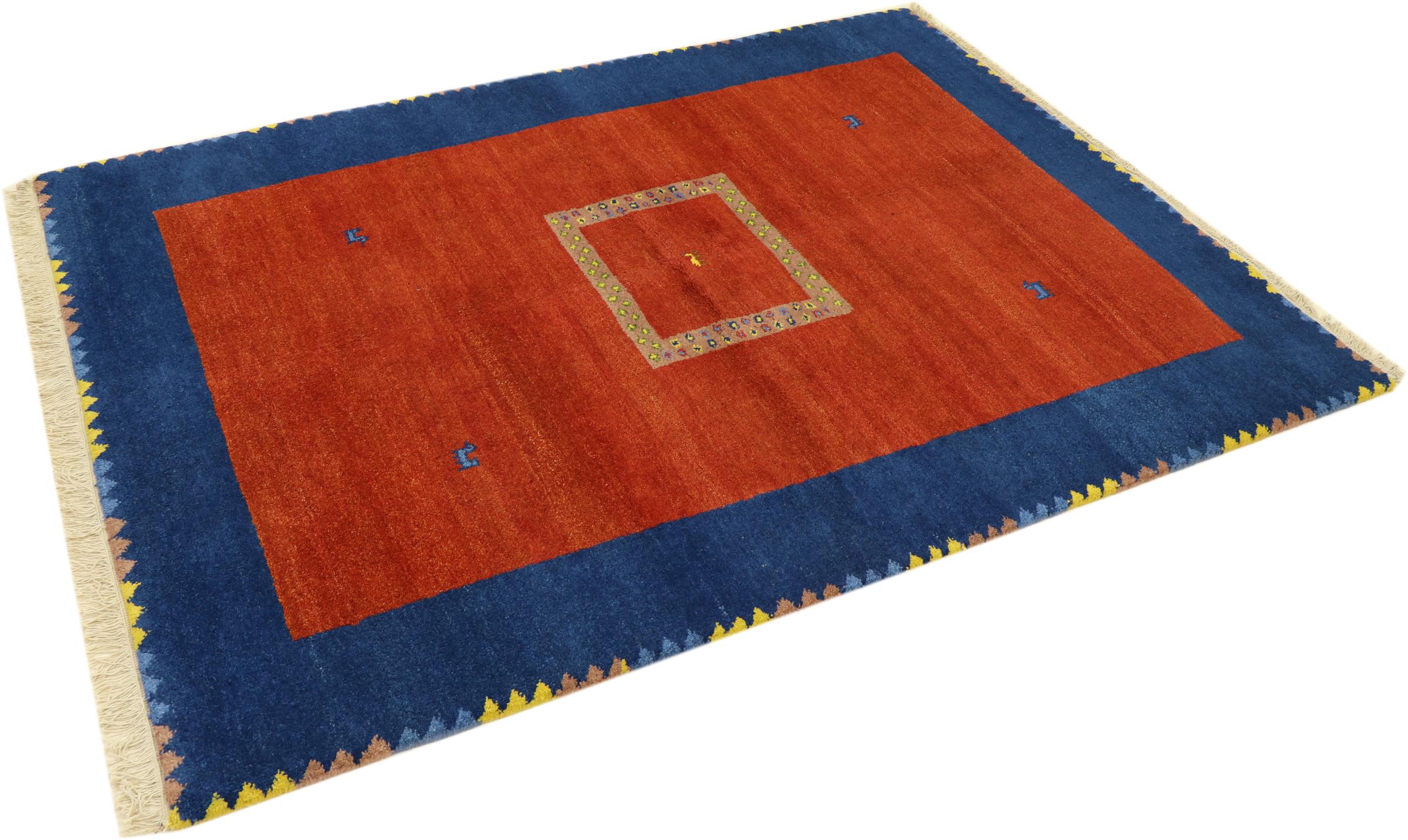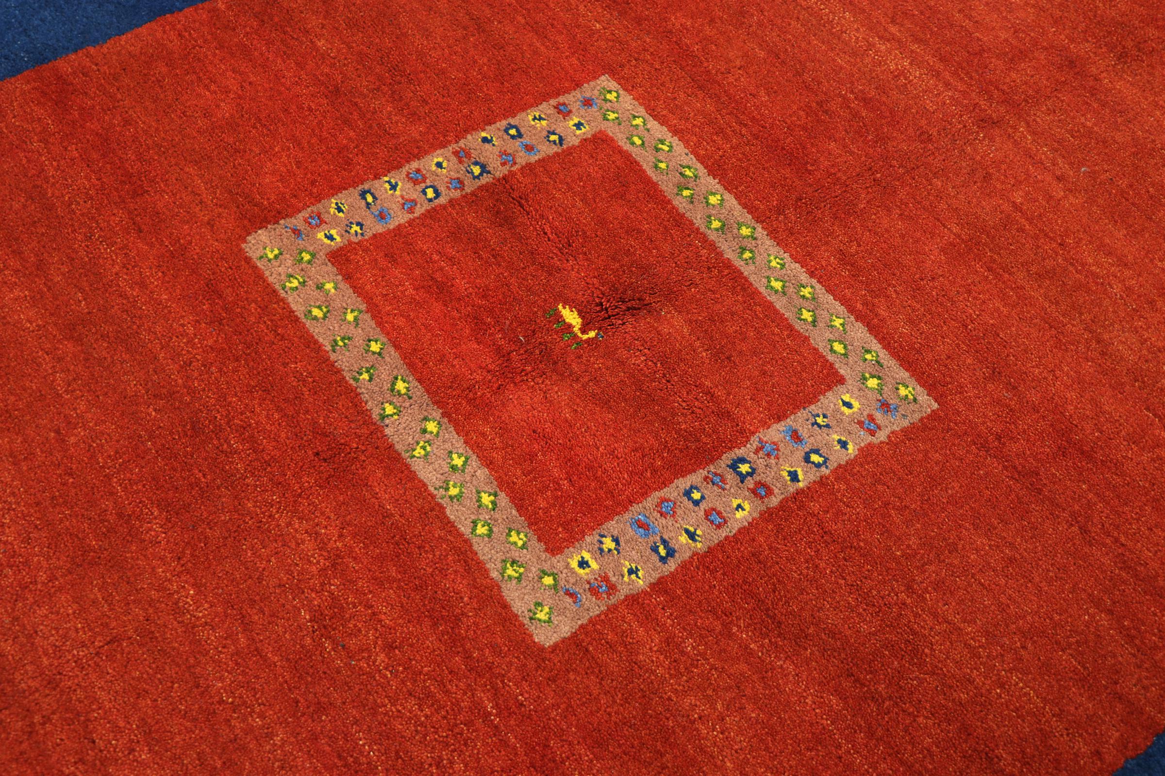 Esta hermosa alfombra de Gabbeh fue anudada a mano en la India. Las alfombras indias de Gabbeh están hechas de suave lana de oveja, son cómodas para los pies y tienen propiedades de aislamiento térmico. La mayoría de sus diseños son simples y modernos atemporales. Se inspiraron en los pueblos nómadas, que dejaban fluir en las alfombras motivos muy simples de su entorno. Las alfombras de Gabbeh de la India no se acercan mucho a la calidad de las de Gabbeh de Persia, pero tienen una muy buena relación precio-rendimiento. Por lo tanto, son perfectamente adecuadas como alfombras anudadas a mano para principiantes.