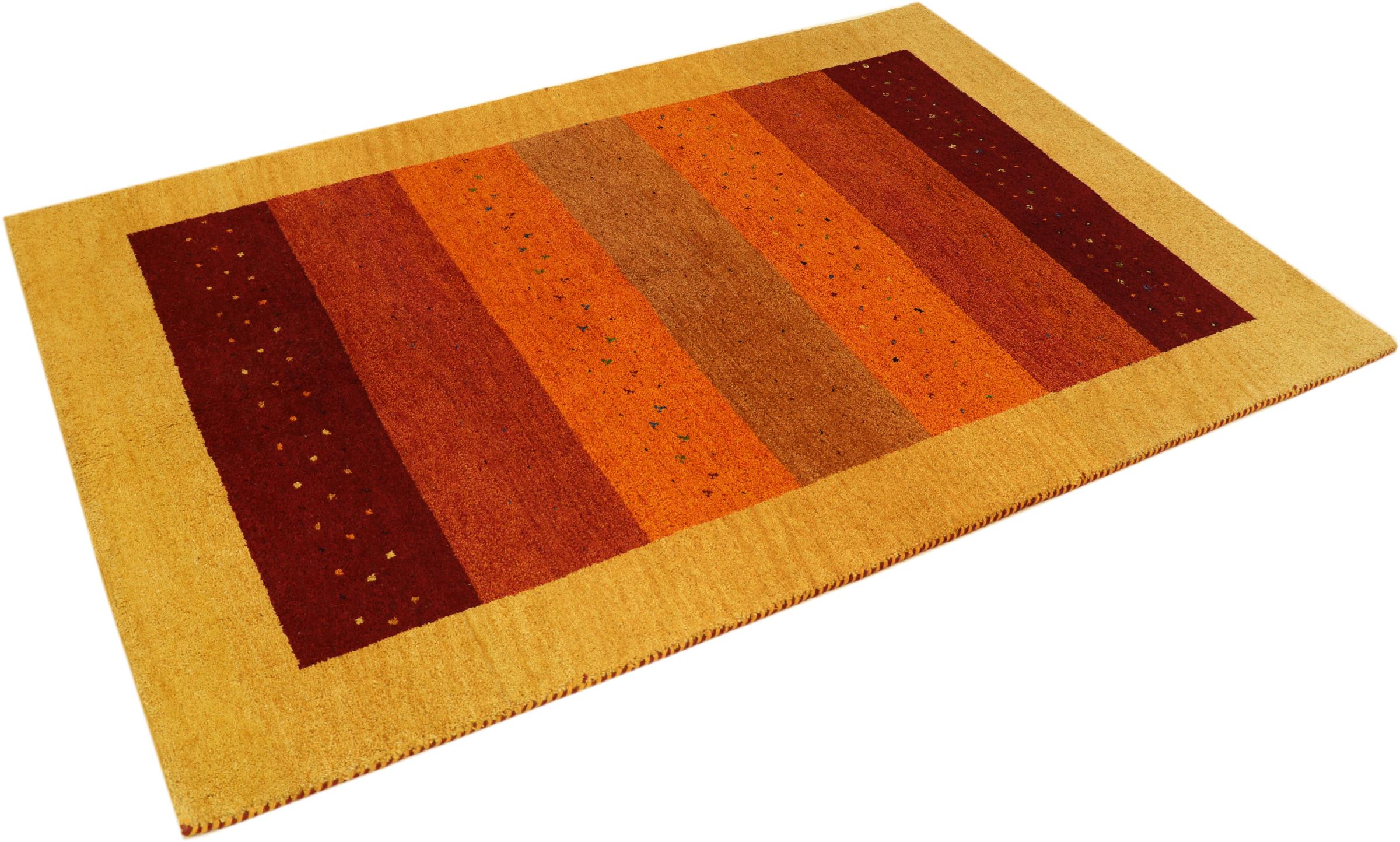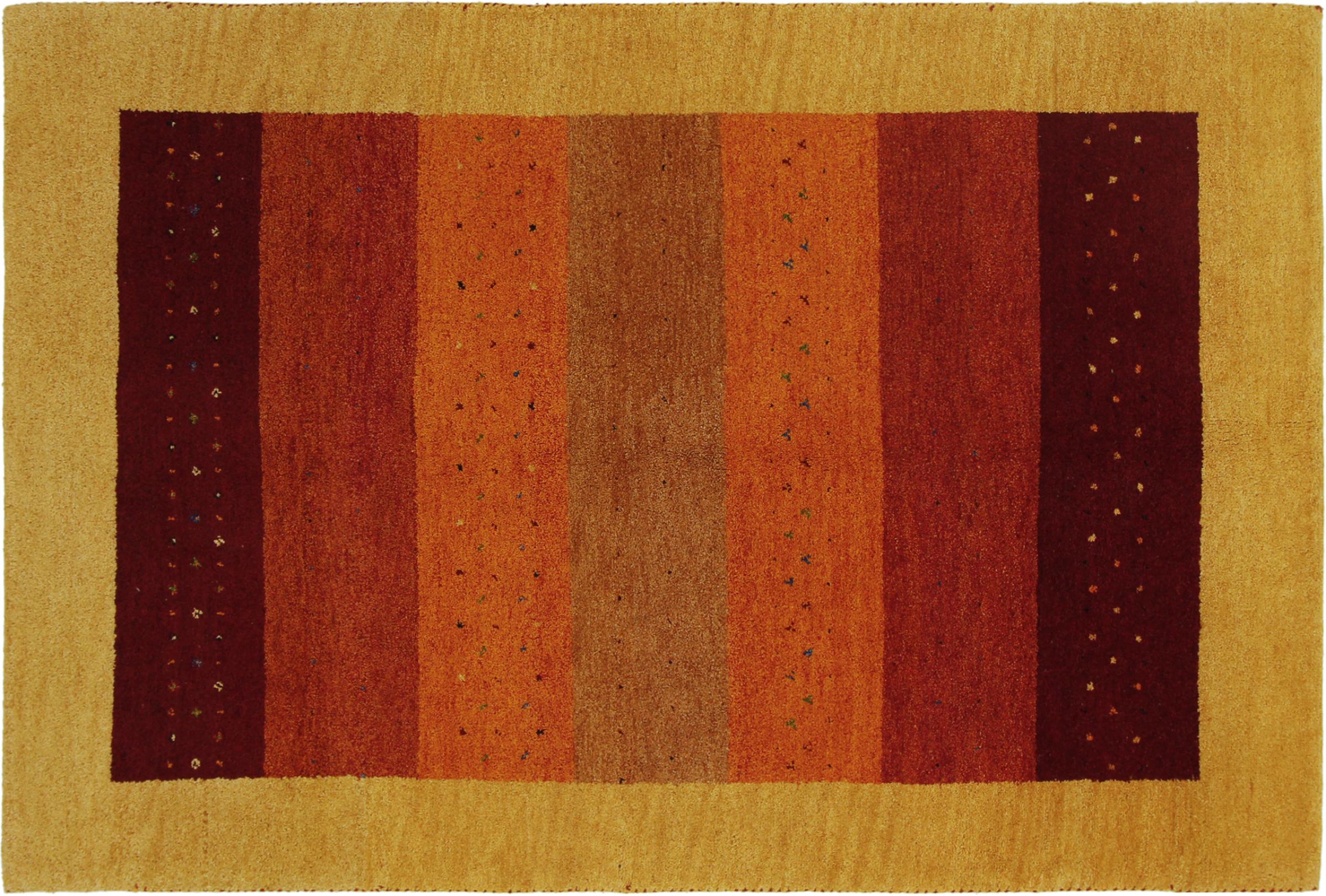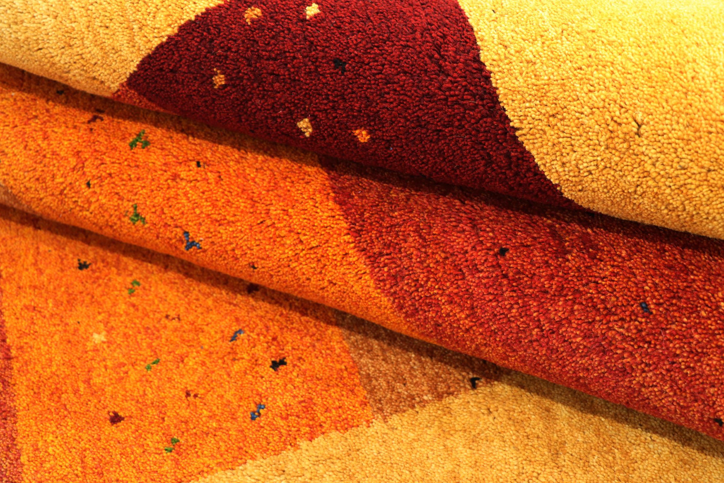 Esta hermosa alfombra de Gabbeh fue anudada a mano en la India. Las alfombras indias de Gabbeh están hechas de suave lana de oveja, son cómodas para los pies y tienen propiedades de aislamiento térmico. La mayoría de sus diseños son simples y modernos atemporales. Se inspiraron en los pueblos nómadas, que dejaban fluir en las alfombras motivos muy simples de su entorno. Las alfombras de Gabbeh de la India no se acercan mucho a la calidad de las de Gabbeh de Persia, pero tienen una muy buena relación precio-rendimiento. Por lo tanto, son perfectamente adecuadas como alfombras anudadas a mano para principiantes.