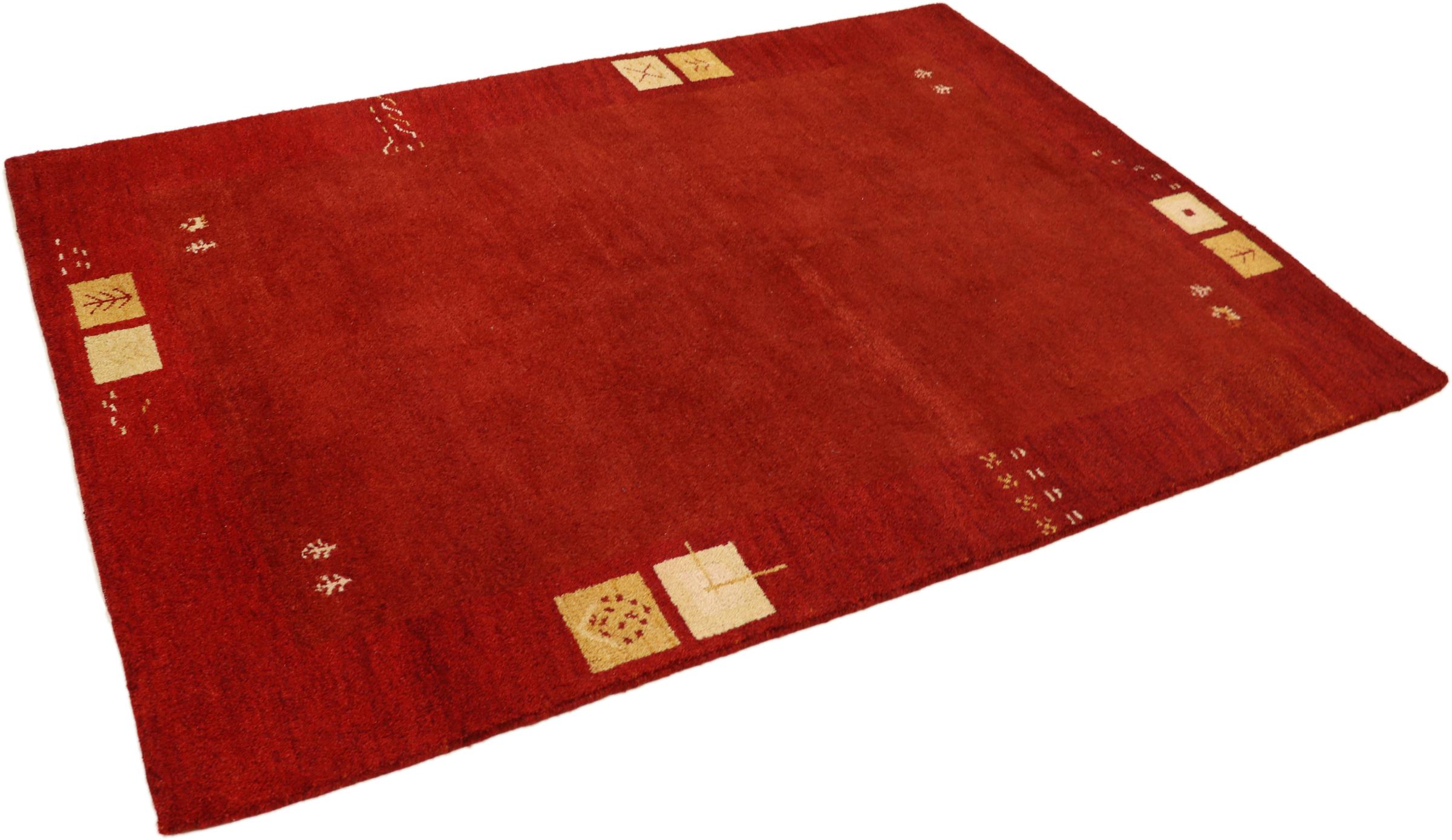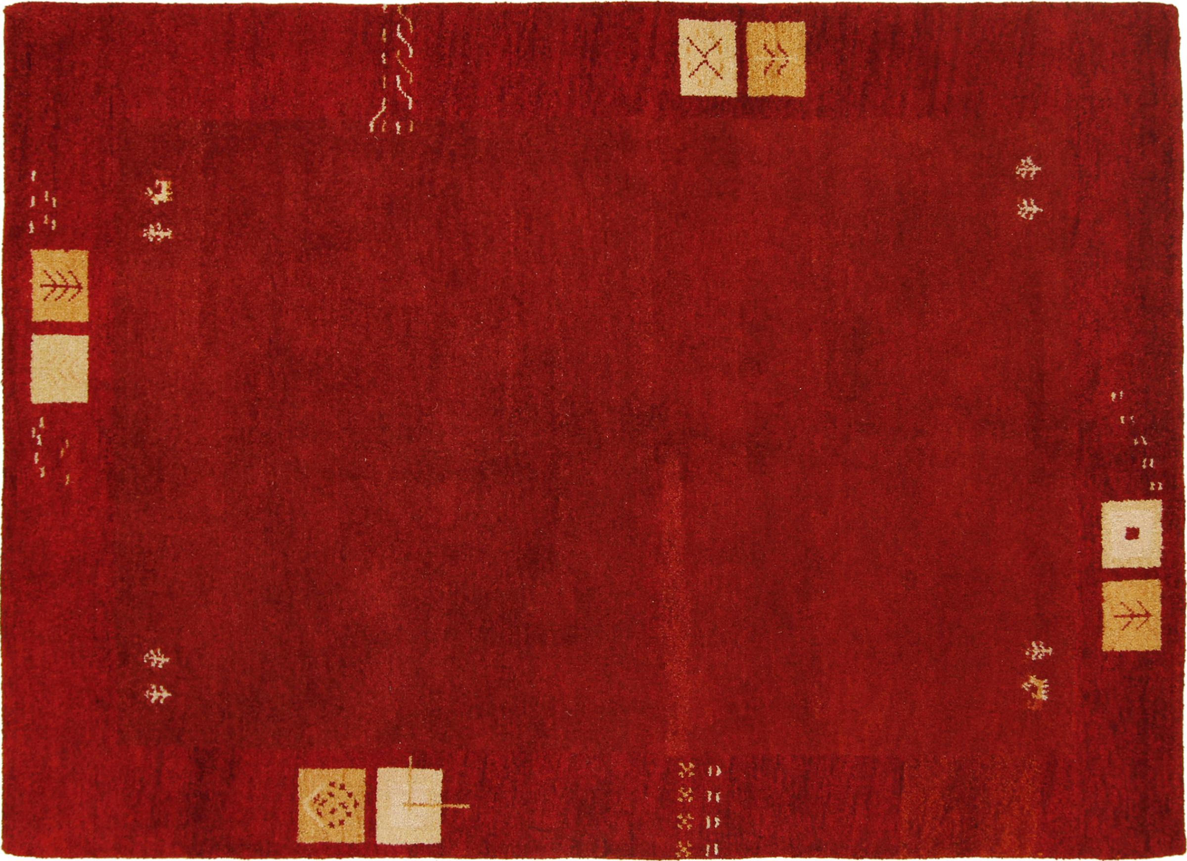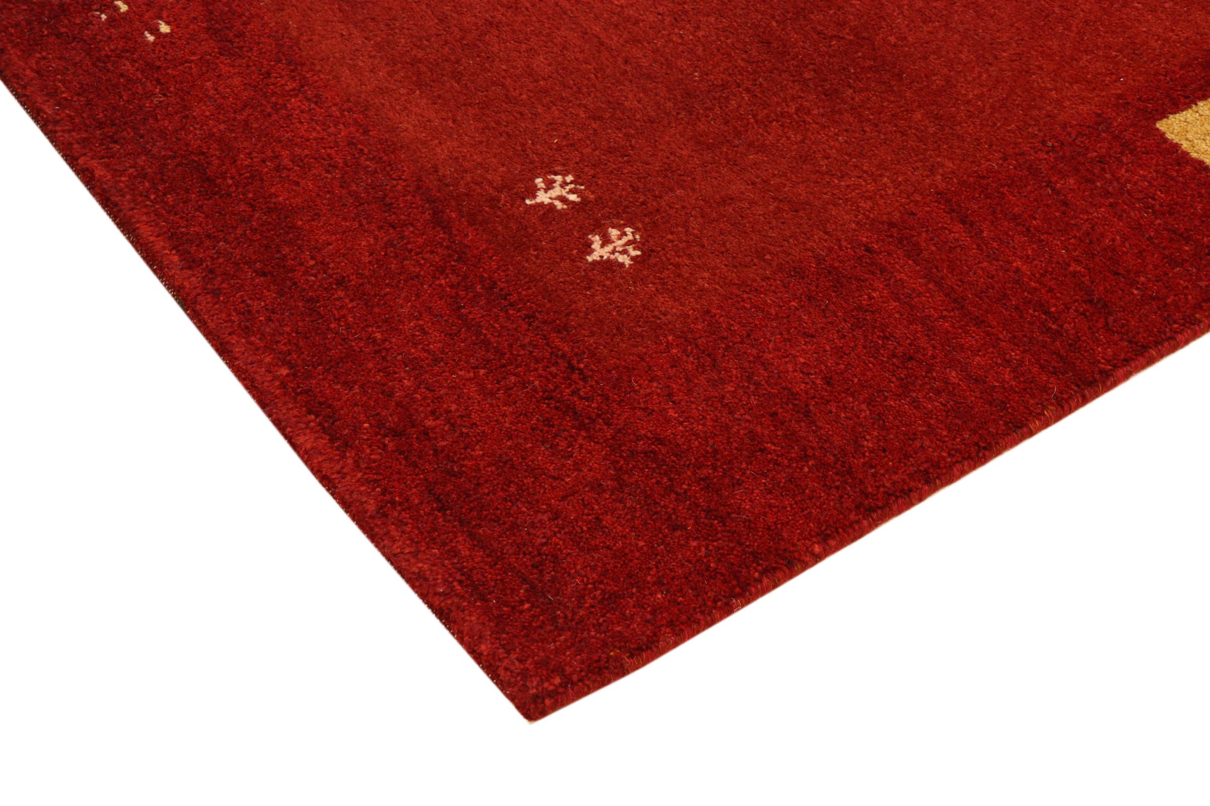 Esta hermosa alfombra de Gabbeh fue anudada a mano en la India. Las alfombras indias de Gabbeh están hechas de suave lana de oveja, son cómodas para los pies y tienen propiedades de aislamiento térmico. La mayoría de sus diseños son simples y modernos atemporales. Se inspiraron en los pueblos nómadas, que dejaban fluir en las alfombras motivos muy simples de su entorno. Las alfombras de Gabbeh de la India no se acercan mucho a la calidad de las de Gabbeh de Persia, pero tienen una muy buena relación precio-rendimiento. Por lo tanto, son perfectamente adecuadas como alfombras anudadas a mano para principiantes.