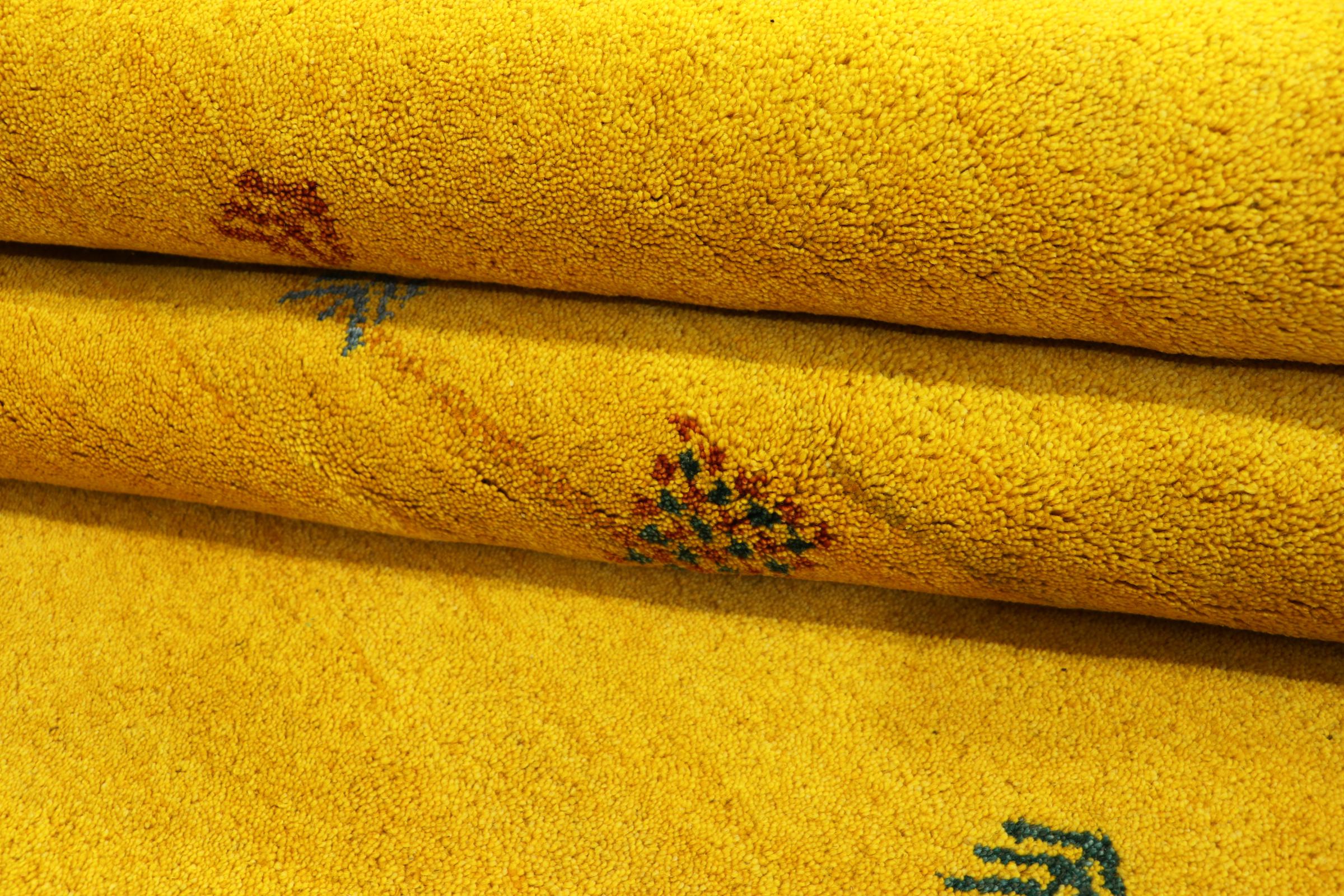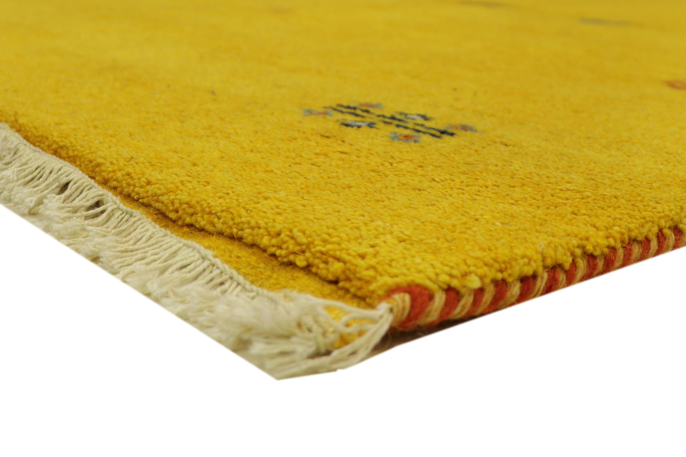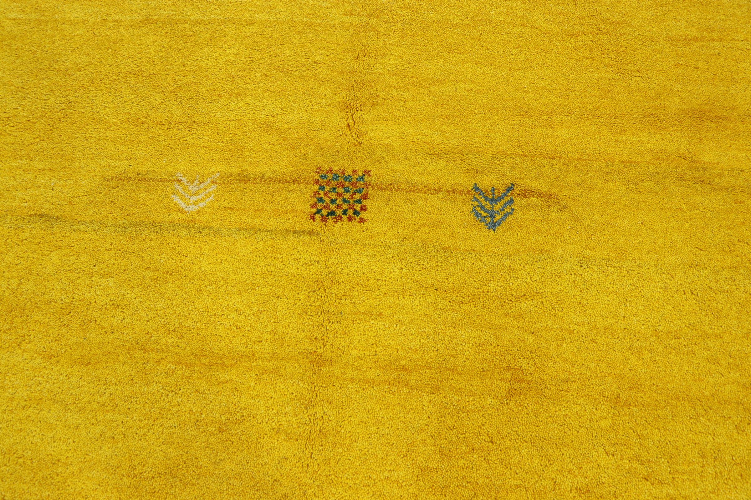 Esta hermosa alfombra de Gabbeh fue anudada a mano en la India. Las alfombras indias de Gabbeh están hechas de suave lana de oveja, son cómodas para los pies y tienen propiedades de aislamiento térmico. La mayoría de sus diseños son simples y modernos atemporales. Se inspiraron en los pueblos nómadas, que dejaban fluir en las alfombras motivos muy simples de su entorno. Las alfombras de Gabbeh de la India no se acercan mucho a la calidad de las de Gabbeh de Persia, pero tienen una muy buena relación precio-rendimiento. Por lo tanto, son perfectamente adecuadas como alfombras anudadas a mano para principiantes.