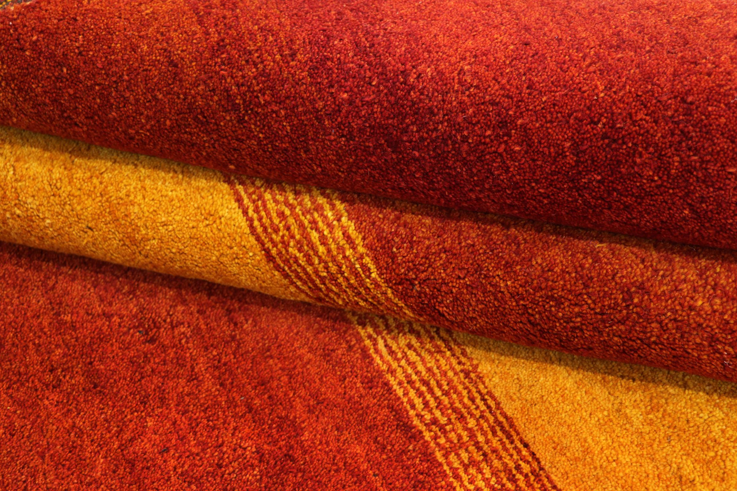 Esta hermosa alfombra de Gabbeh fue anudada a mano en la India. Las alfombras indias de Gabbeh están hechas de suave lana de oveja, son cómodas para los pies y tienen propiedades de aislamiento térmico. La mayoría de sus diseños son simples y modernos atemporales. Se inspiraron en los pueblos nómadas, que dejaban fluir en las alfombras motivos muy simples de su entorno. Las alfombras de Gabbeh de la India no se acercan mucho a la calidad de las de Gabbeh de Persia, pero tienen una muy buena relación precio-rendimiento. Por lo tanto, son perfectamente adecuadas como alfombras anudadas a mano para principiantes.