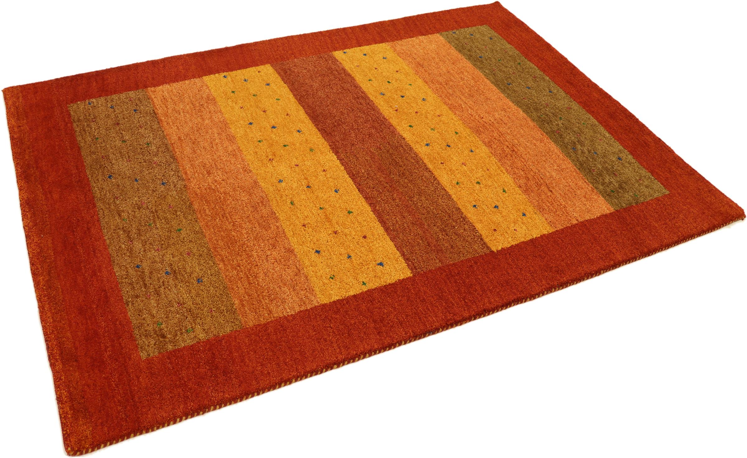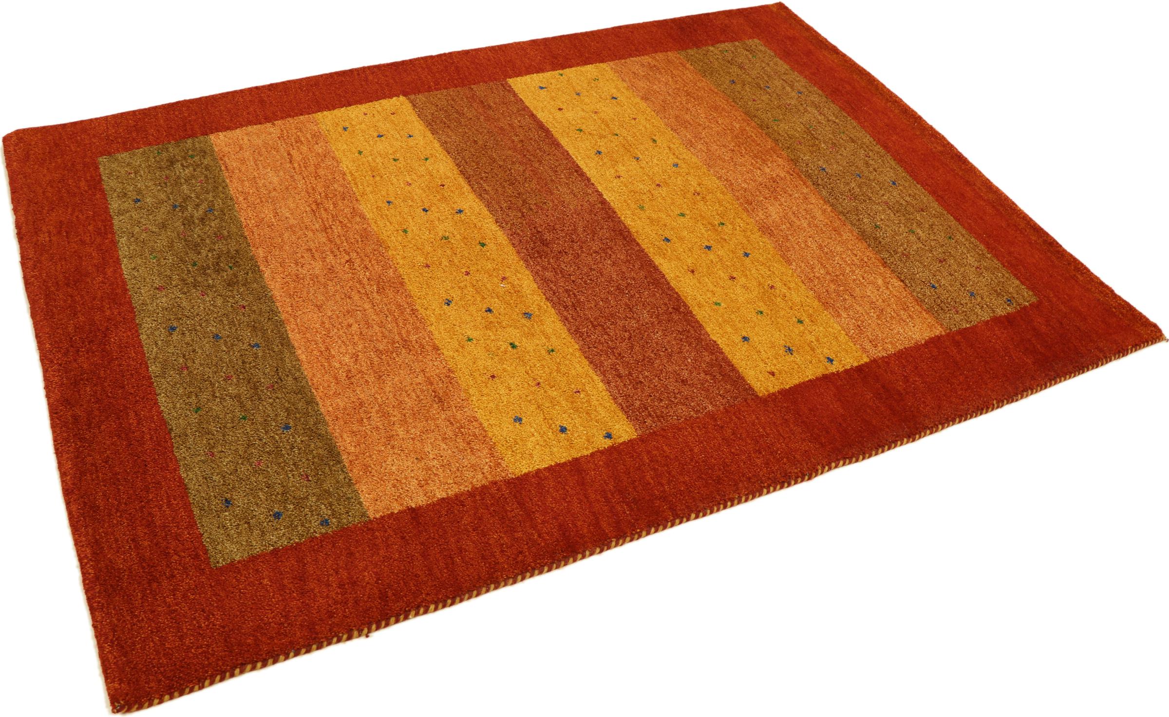 Esta hermosa alfombra de Gabbeh fue anudada a mano en la India. Las alfombras indias de Gabbeh están hechas de suave lana de oveja, son cómodas para los pies y tienen propiedades de aislamiento térmico. La mayoría de sus diseños son simples y modernos atemporales. Se inspiraron en los pueblos nómadas, que dejaban fluir en las alfombras motivos muy simples de su entorno. Las alfombras de Gabbeh de la India no se acercan mucho a la calidad de las de Gabbeh de Persia, pero tienen una muy buena relación precio-rendimiento. Por lo tanto, son perfectamente adecuadas como alfombras anudadas a mano para principiantes.