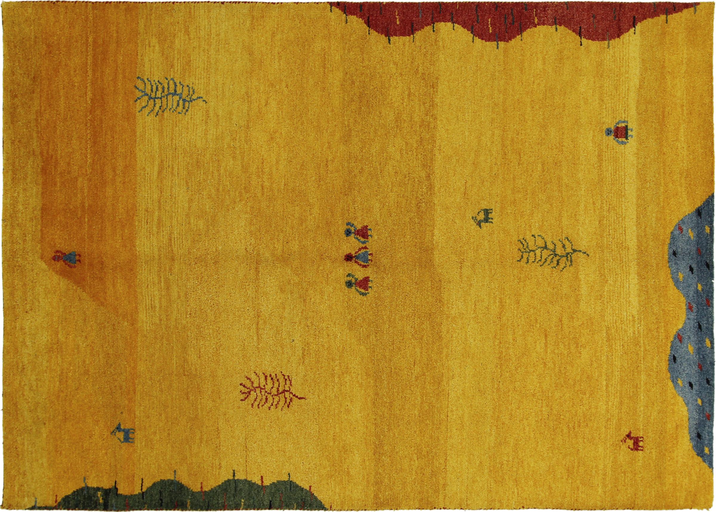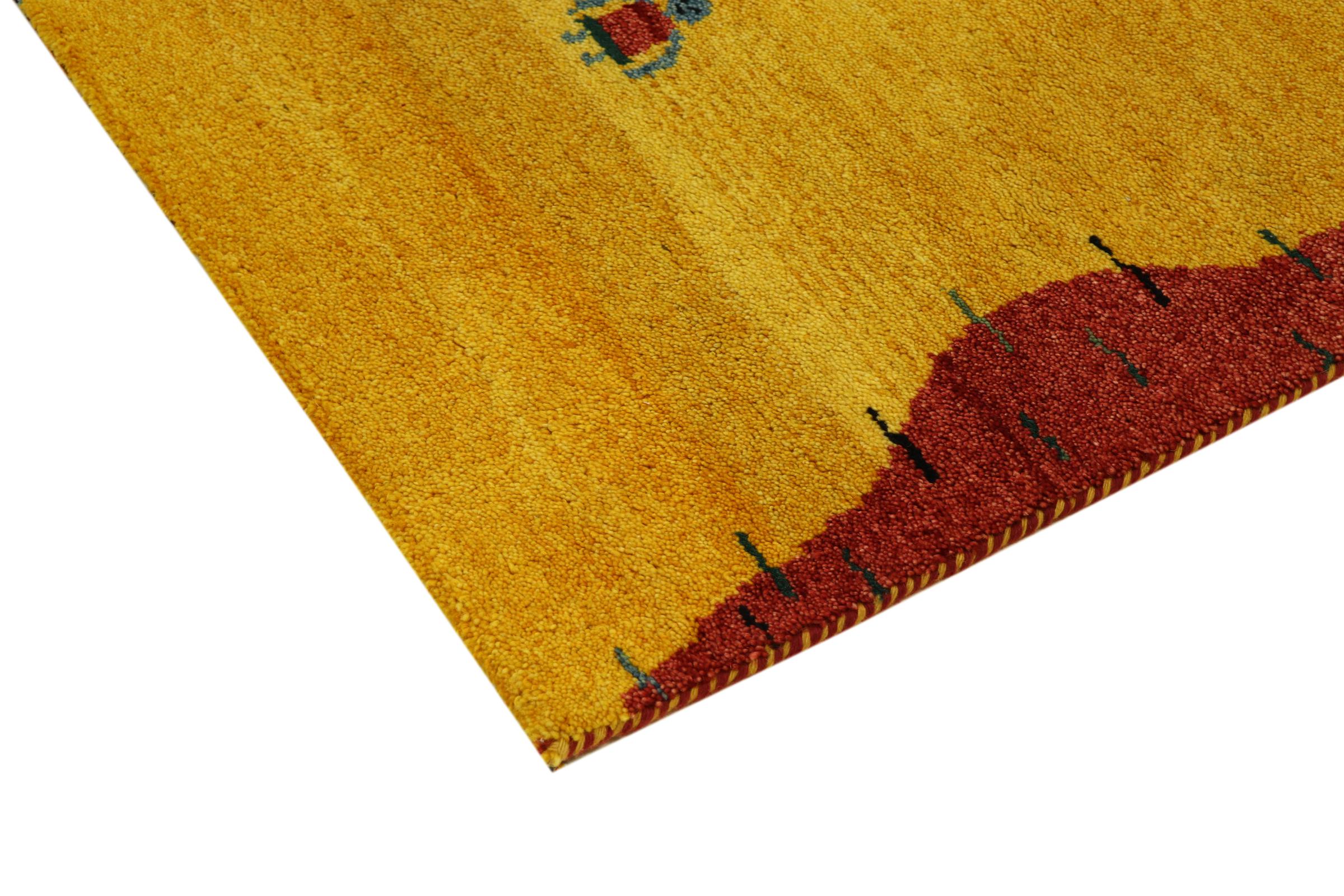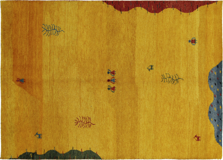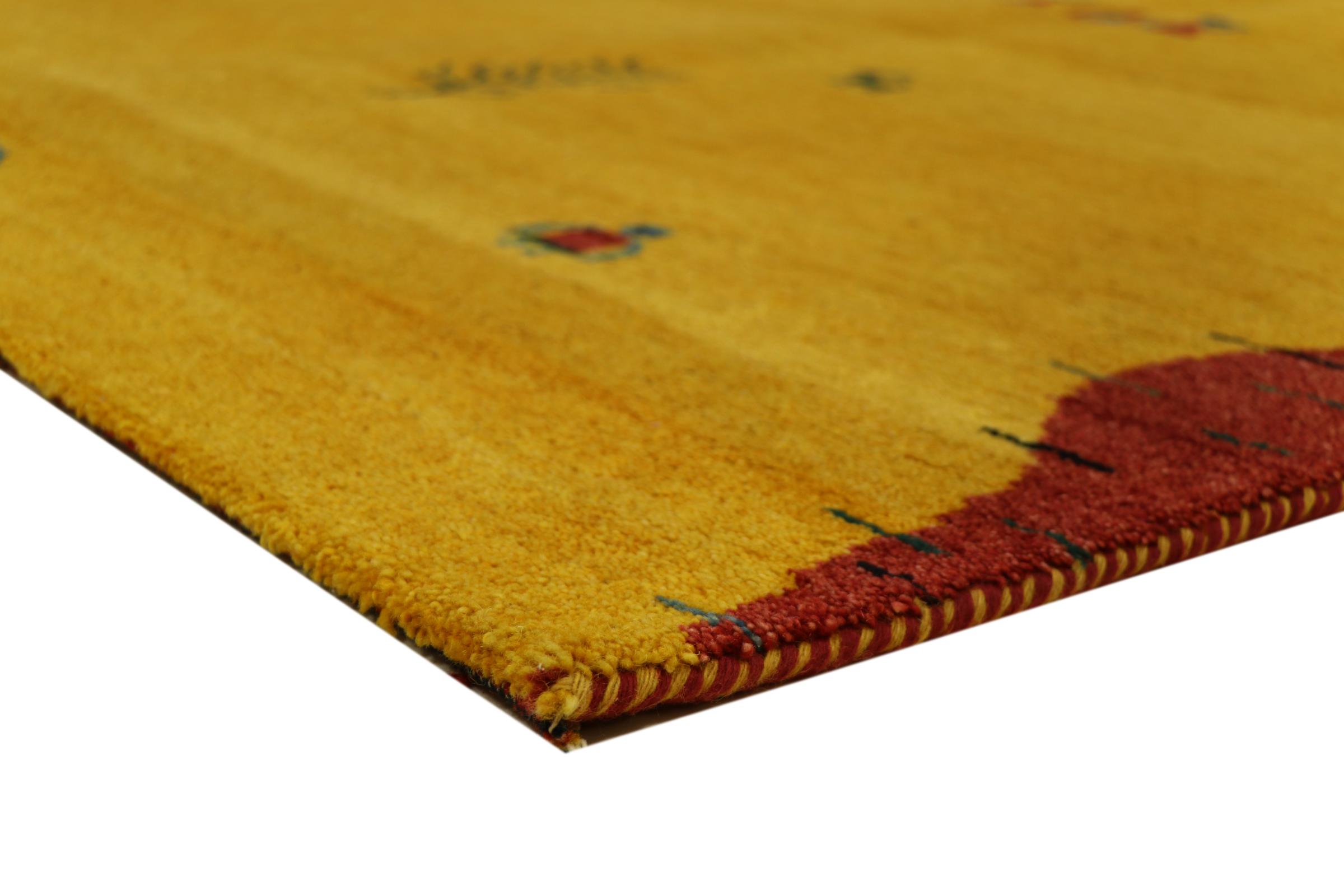 Esta hermosa alfombra de Gabbeh fue anudada a mano en la India. Las alfombras indias de Gabbeh están hechas de suave lana de oveja, son cómodas para los pies y tienen propiedades de aislamiento térmico. La mayoría de sus diseños son simples y modernos atemporales. Se inspiraron en los pueblos nómadas, que dejaban fluir en las alfombras motivos muy simples de su entorno. Las alfombras de Gabbeh de la India no se acercan mucho a la calidad de las de Gabbeh de Persia, pero tienen una muy buena relación precio-rendimiento. Por lo tanto, son perfectamente adecuadas como alfombras anudadas a mano para principiantes.