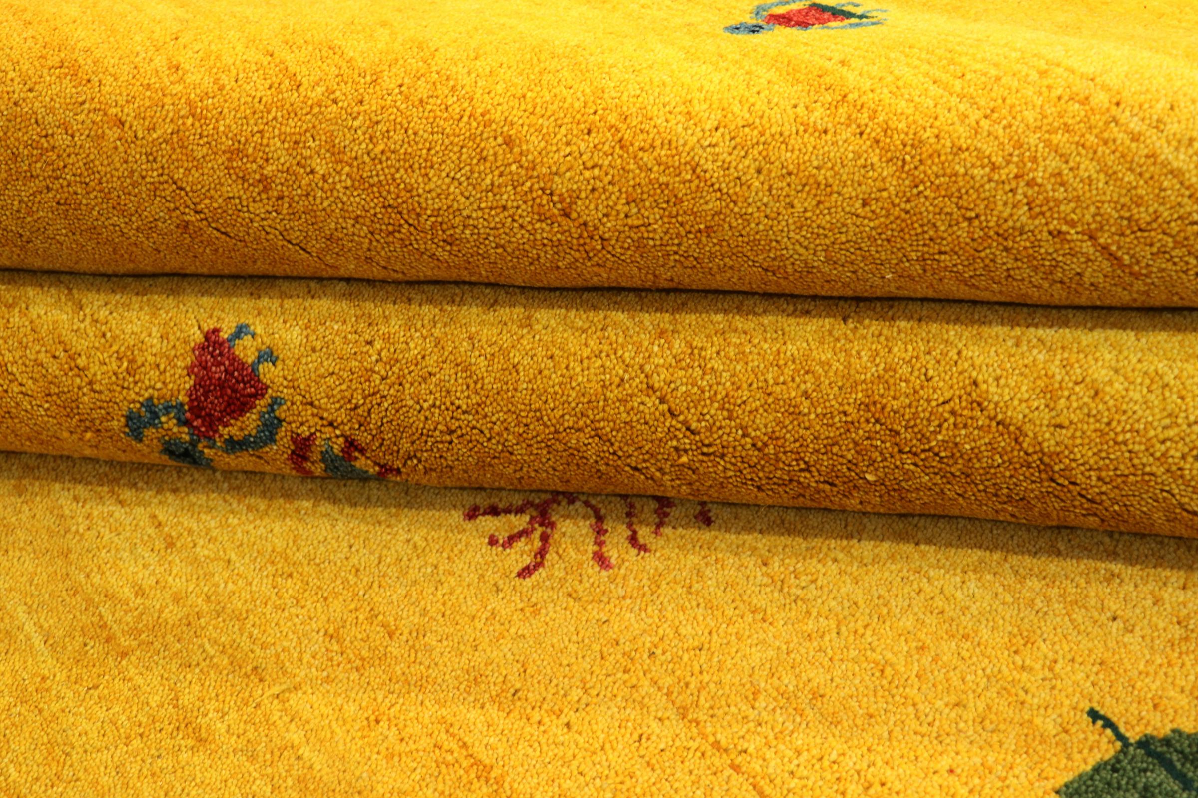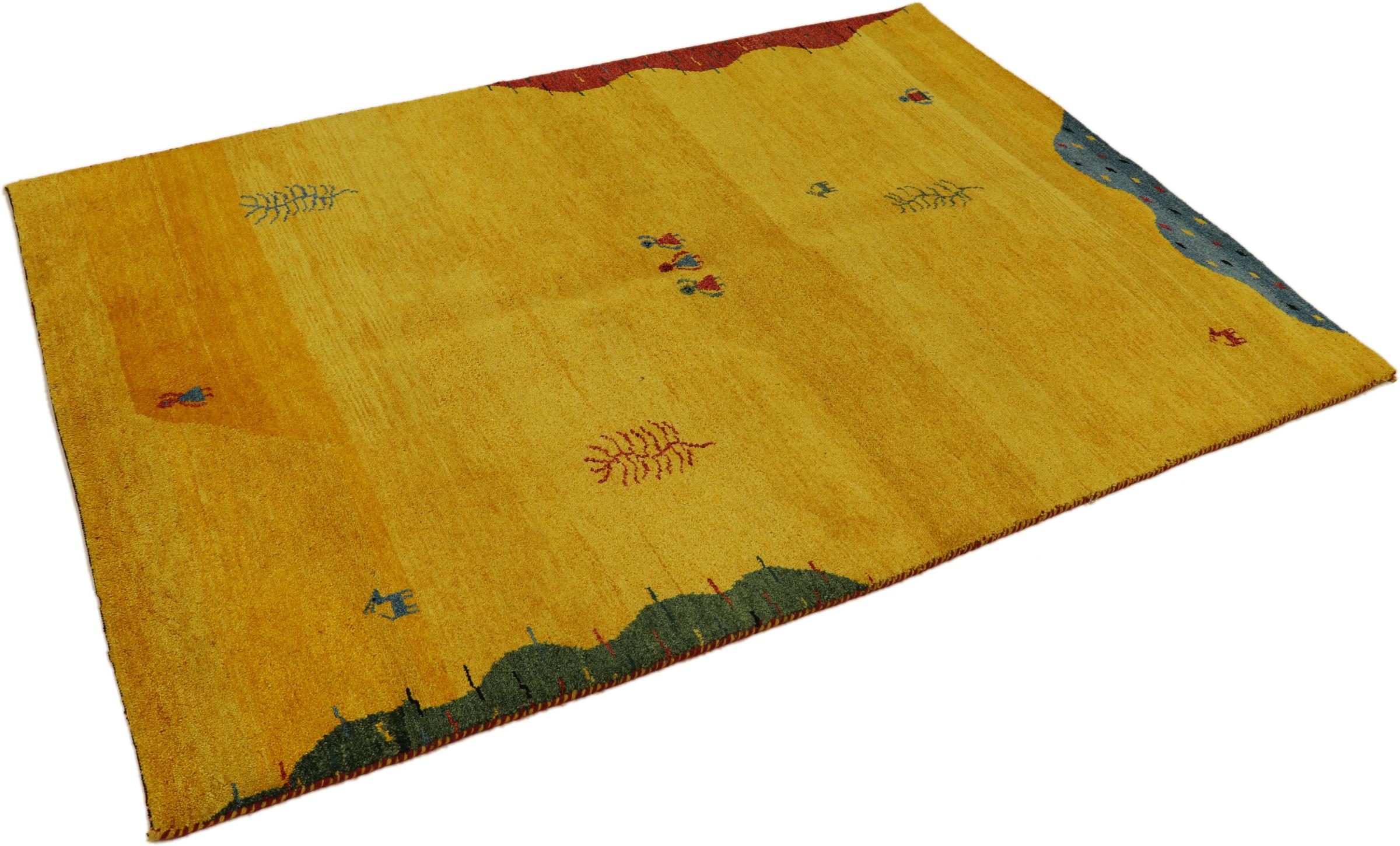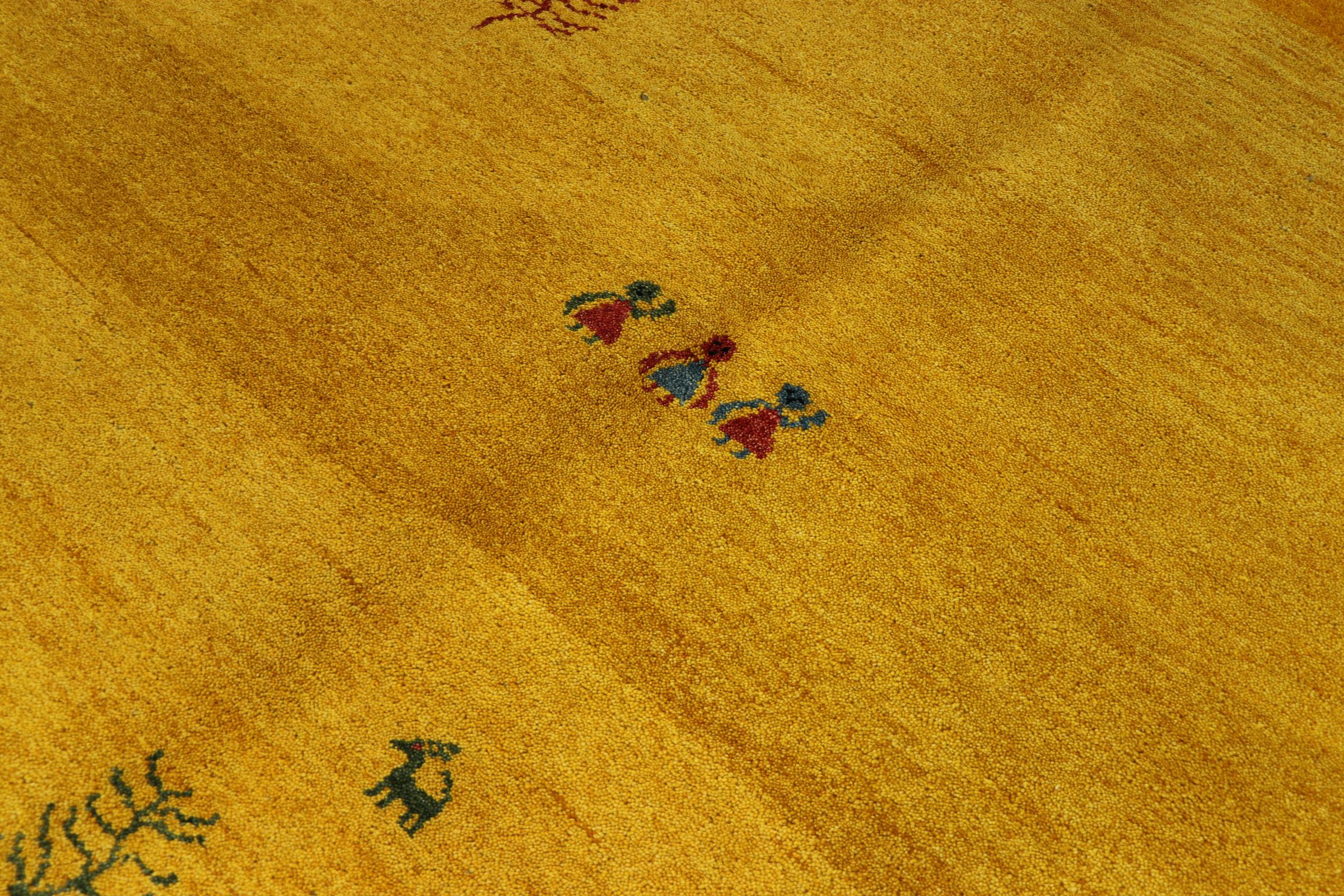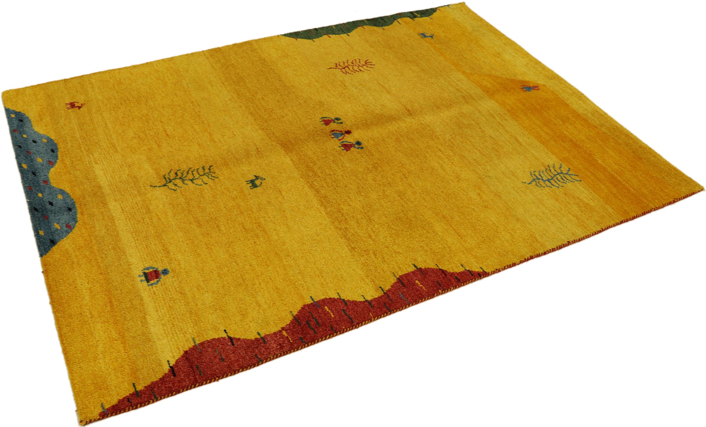 Esta hermosa alfombra de Gabbeh fue anudada a mano en la India. Las alfombras indias de Gabbeh están hechas de suave lana de oveja, son cómodas para los pies y tienen propiedades de aislamiento térmico. La mayoría de sus diseños son simples y modernos atemporales. Se inspiraron en los pueblos nómadas, que dejaban fluir en las alfombras motivos muy simples de su entorno. Las alfombras de Gabbeh de la India no se acercan mucho a la calidad de las de Gabbeh de Persia, pero tienen una muy buena relación precio-rendimiento. Por lo tanto, son perfectamente adecuadas como alfombras anudadas a mano para principiantes.