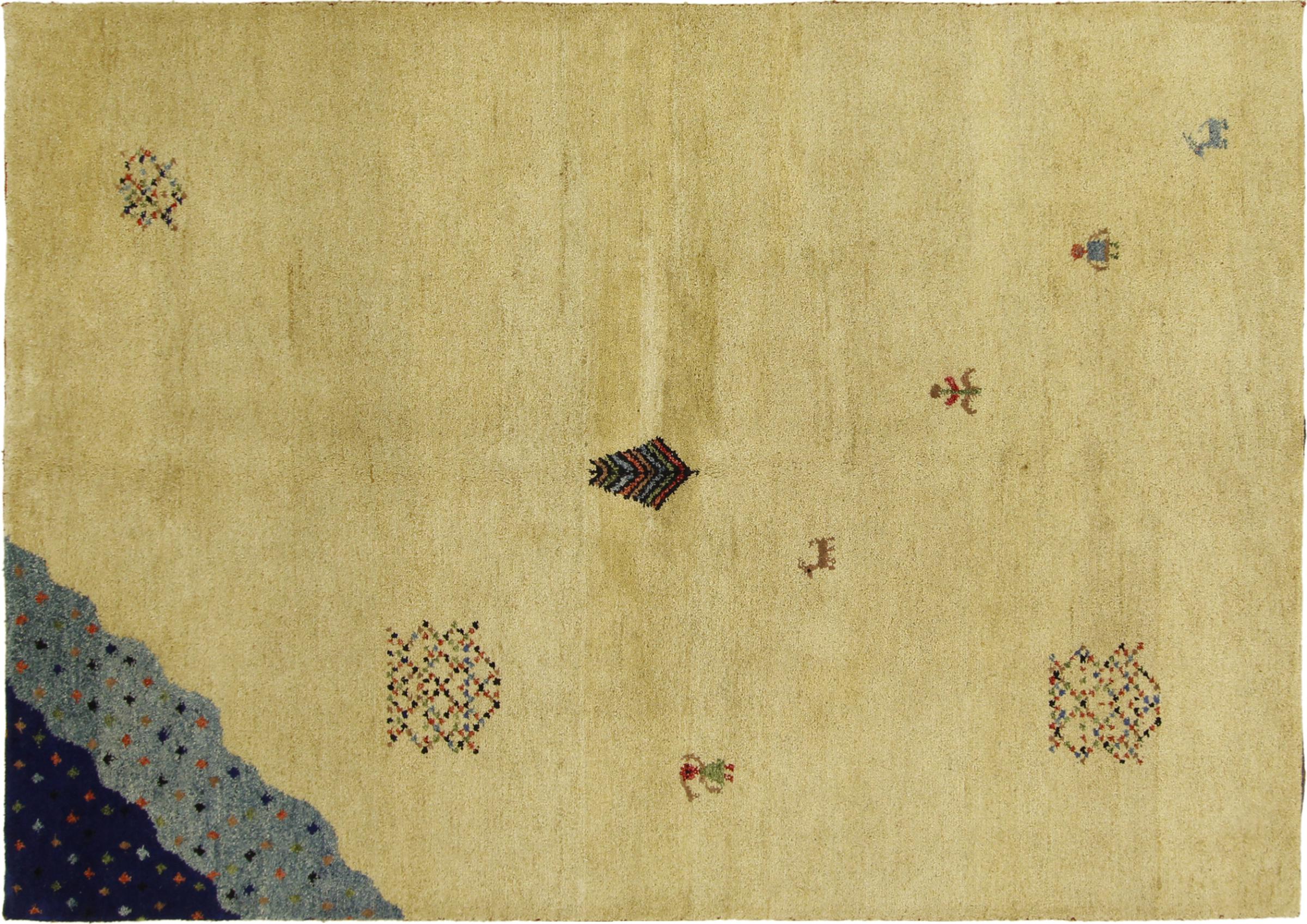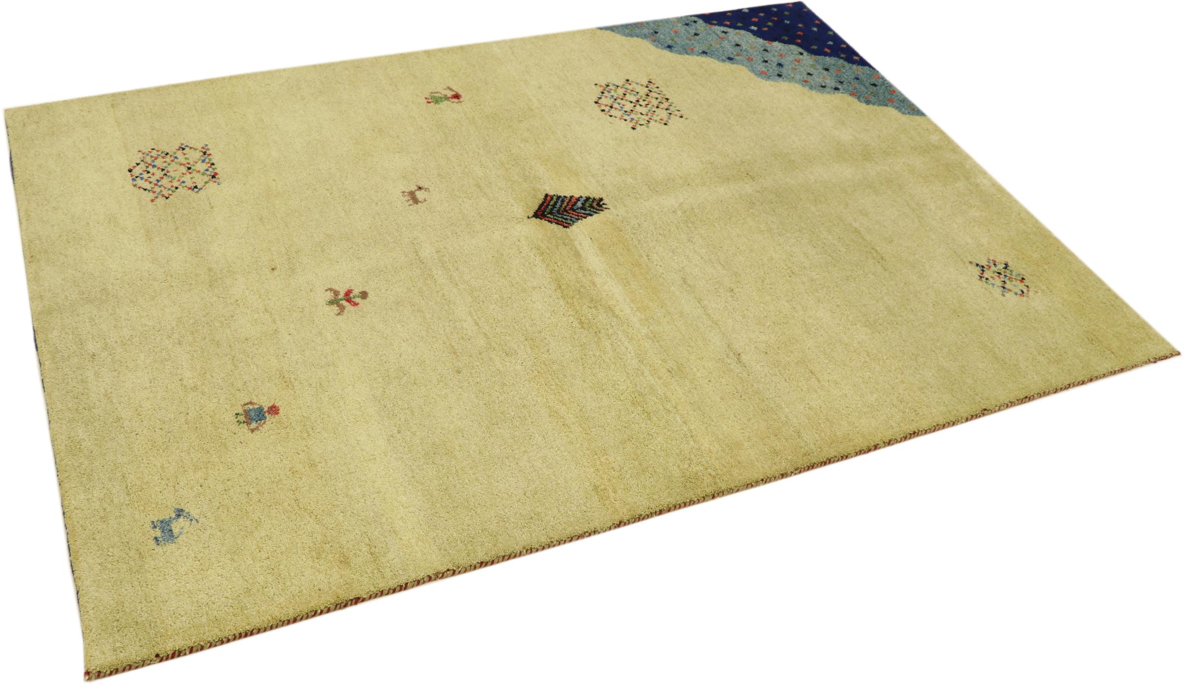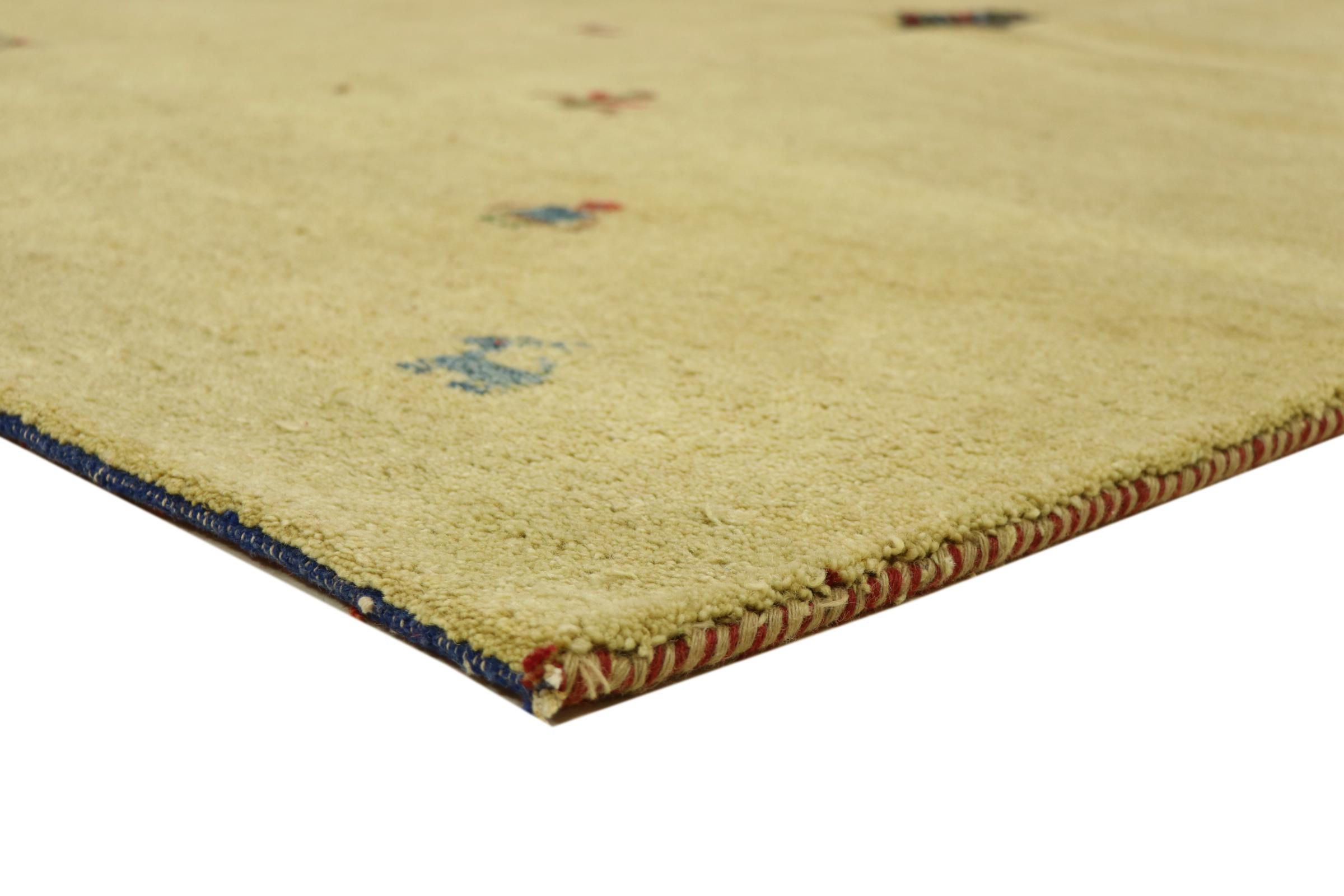 Esta hermosa alfombra de Gabbeh fue anudada a mano en la India. Las alfombras indias de Gabbeh están hechas de suave lana de oveja, son cómodas para los pies y tienen propiedades de aislamiento térmico. La mayoría de sus diseños son simples y modernos atemporales. Se inspiraron en los pueblos nómadas, que dejaban fluir en las alfombras motivos muy simples de su entorno. Las alfombras de Gabbeh de la India no se acercan mucho a la calidad de las de Gabbeh de Persia, pero tienen una muy buena relación precio-rendimiento. Por lo tanto, son perfectamente adecuadas como alfombras anudadas a mano para principiantes.