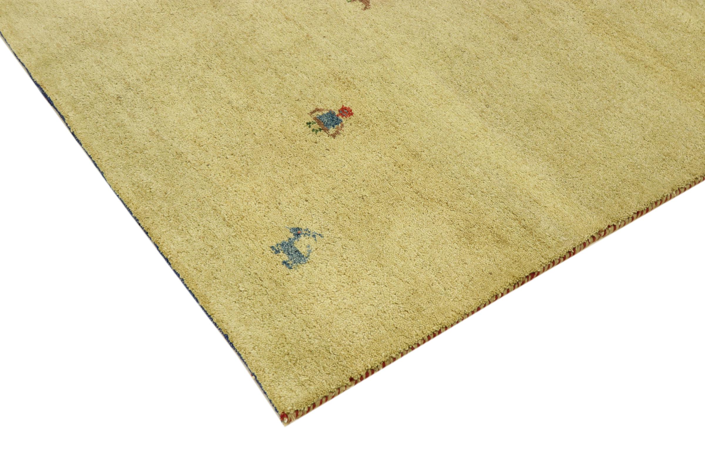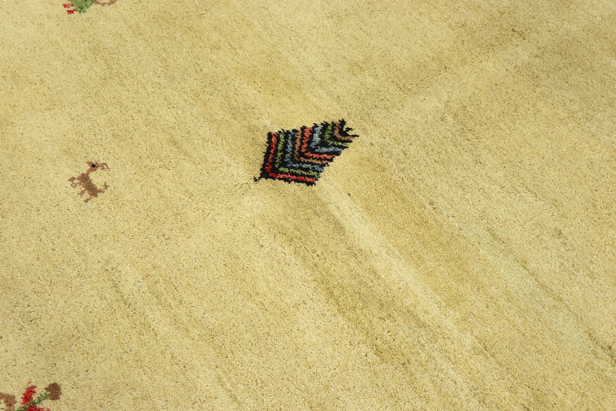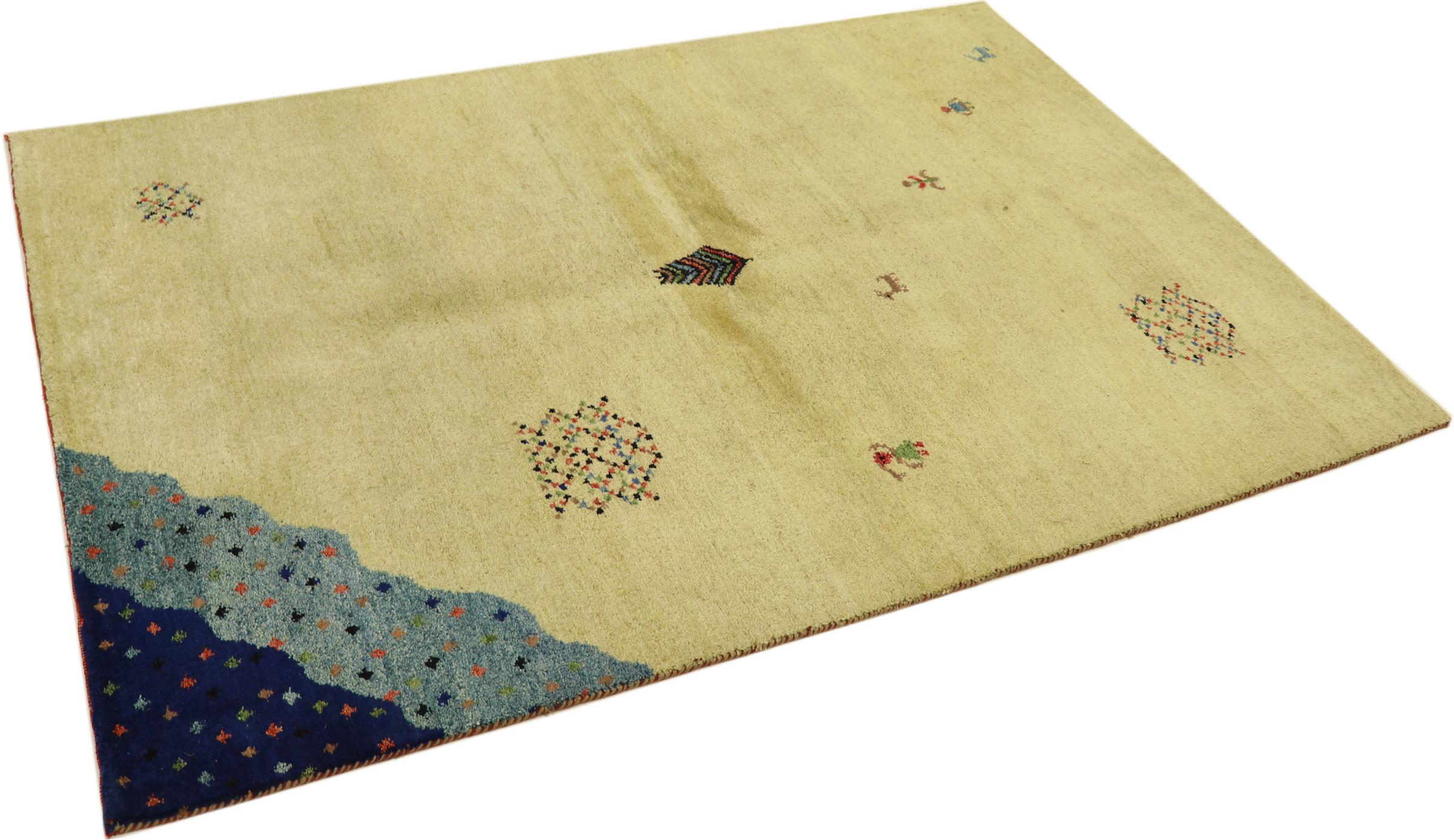 Esta hermosa alfombra de Gabbeh fue anudada a mano en la India. Las alfombras indias de Gabbeh están hechas de suave lana de oveja, son cómodas para los pies y tienen propiedades de aislamiento térmico. La mayoría de sus diseños son simples y modernos atemporales. Se inspiraron en los pueblos nómadas, que dejaban fluir en las alfombras motivos muy simples de su entorno. Las alfombras de Gabbeh de la India no se acercan mucho a la calidad de las de Gabbeh de Persia, pero tienen una muy buena relación precio-rendimiento. Por lo tanto, son perfectamente adecuadas como alfombras anudadas a mano para principiantes.