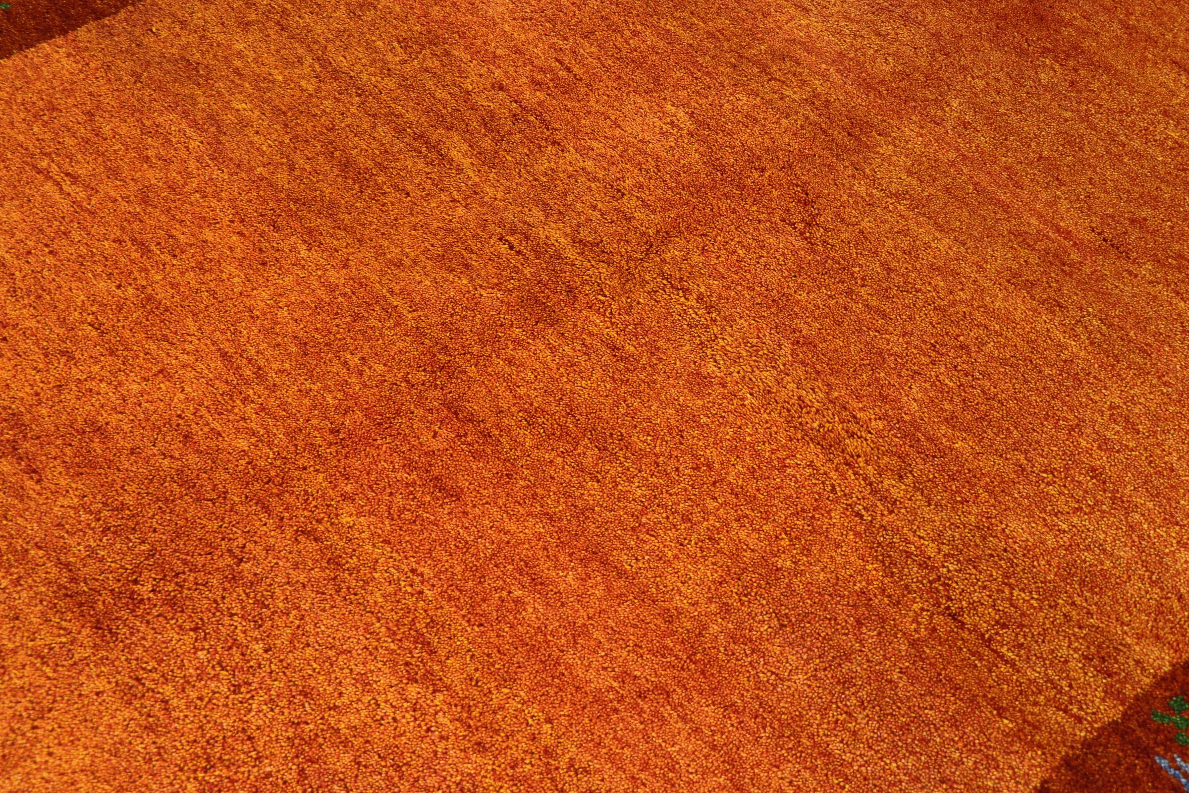 Esta hermosa alfombra de Gabbeh fue anudada a mano en la India. Las alfombras indias de Gabbeh están hechas de suave lana de oveja, son cómodas para los pies y tienen propiedades de aislamiento térmico. La mayoría de sus diseños son simples y modernos atemporales. Se inspiraron en los pueblos nómadas, que dejaban fluir en las alfombras motivos muy simples de su entorno. Las alfombras de Gabbeh de la India no se acercan mucho a la calidad de las de Gabbeh de Persia, pero tienen una muy buena relación precio-rendimiento. Por lo tanto, son perfectamente adecuadas como alfombras anudadas a mano para principiantes.