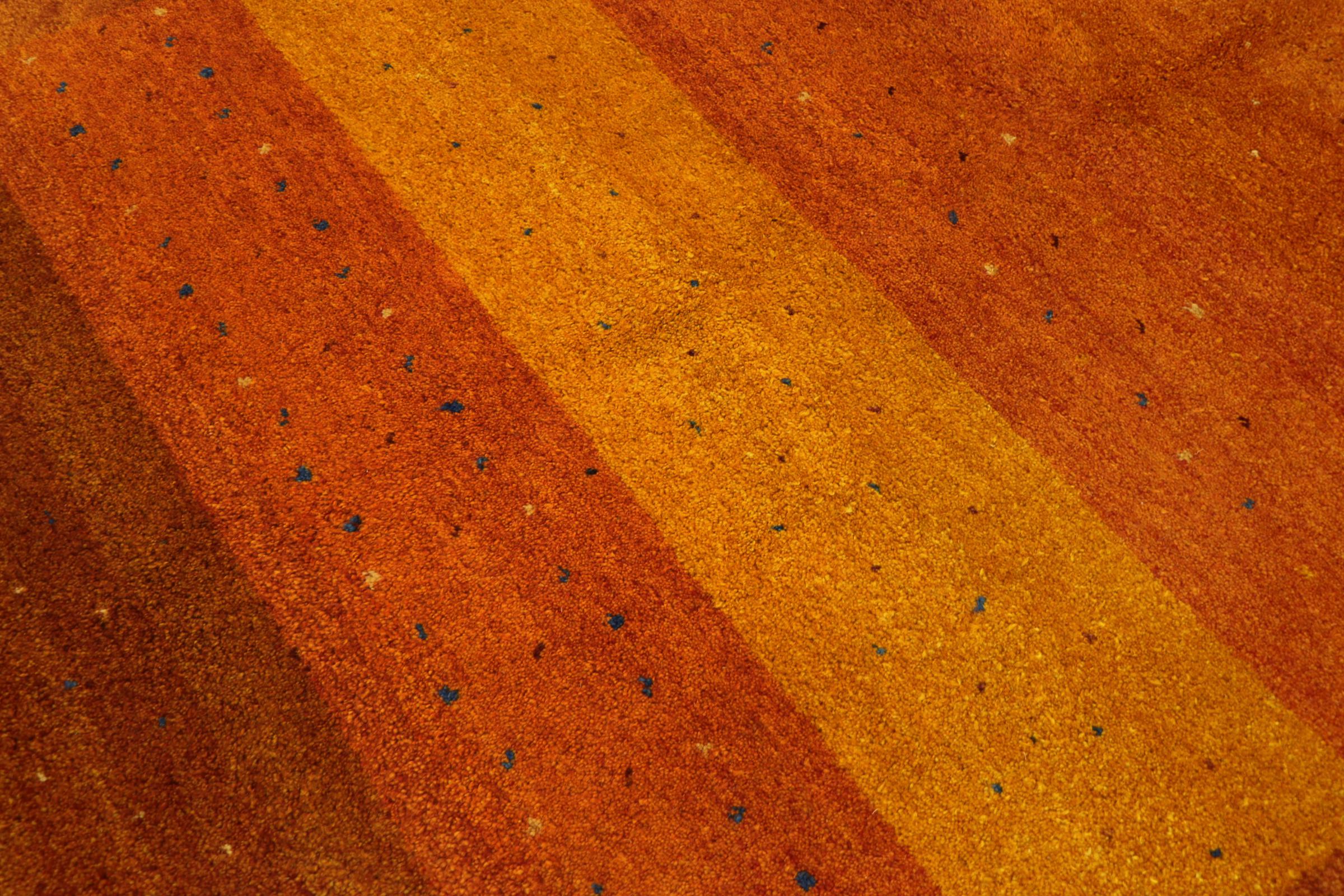 Esta hermosa alfombra de Gabbeh fue anudada a mano en la India. Las alfombras indias de Gabbeh están hechas de suave lana de oveja, son cómodas para los pies y tienen propiedades de aislamiento térmico. La mayoría de sus diseños son simples y modernos atemporales. Se inspiraron en los pueblos nómadas, que dejaban fluir en las alfombras motivos muy simples de su entorno. Las alfombras de Gabbeh de la India no se acercan mucho a la calidad de las de Gabbeh de Persia, pero tienen una muy buena relación precio-rendimiento. Por lo tanto, son perfectamente adecuadas como alfombras anudadas a mano para principiantes.