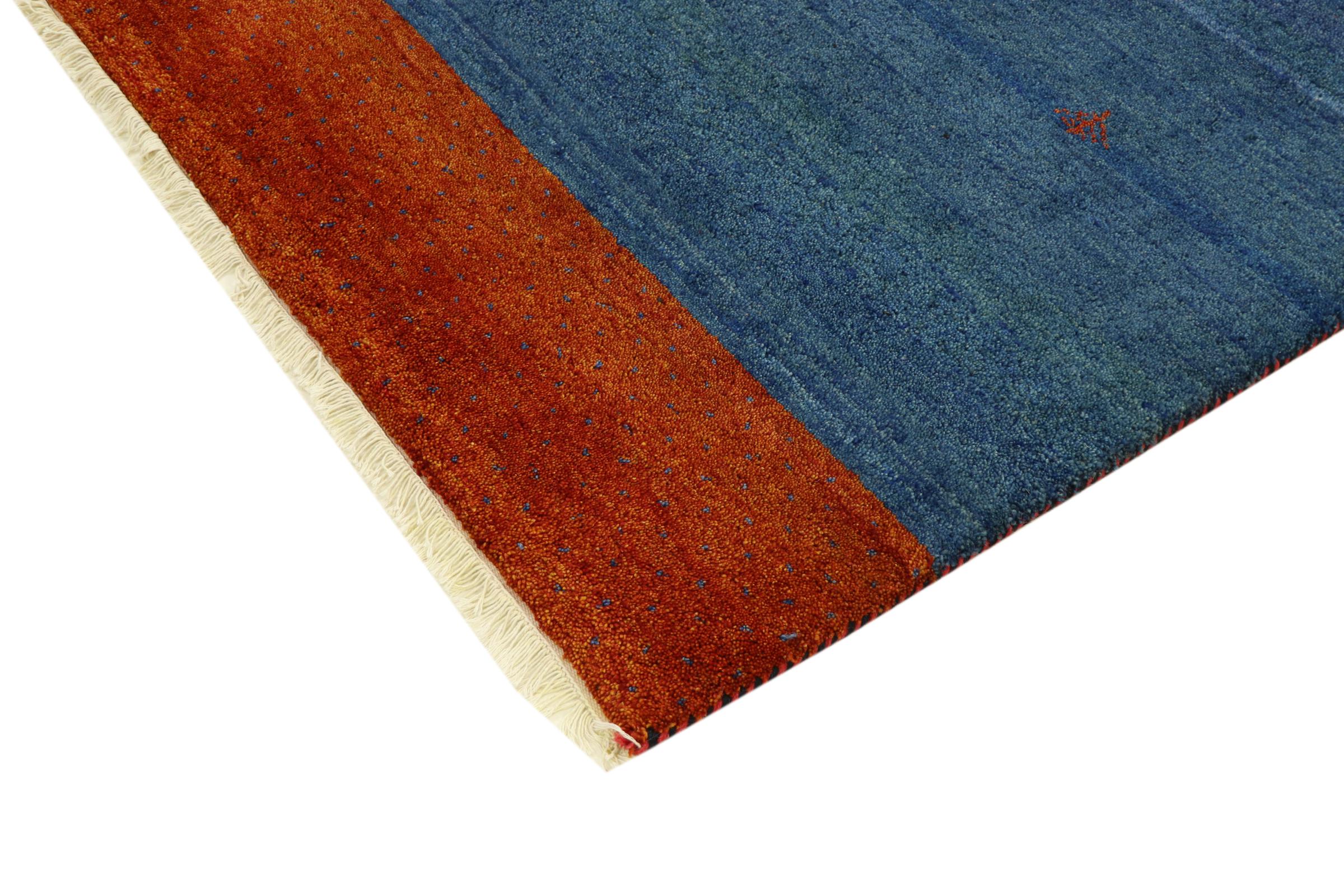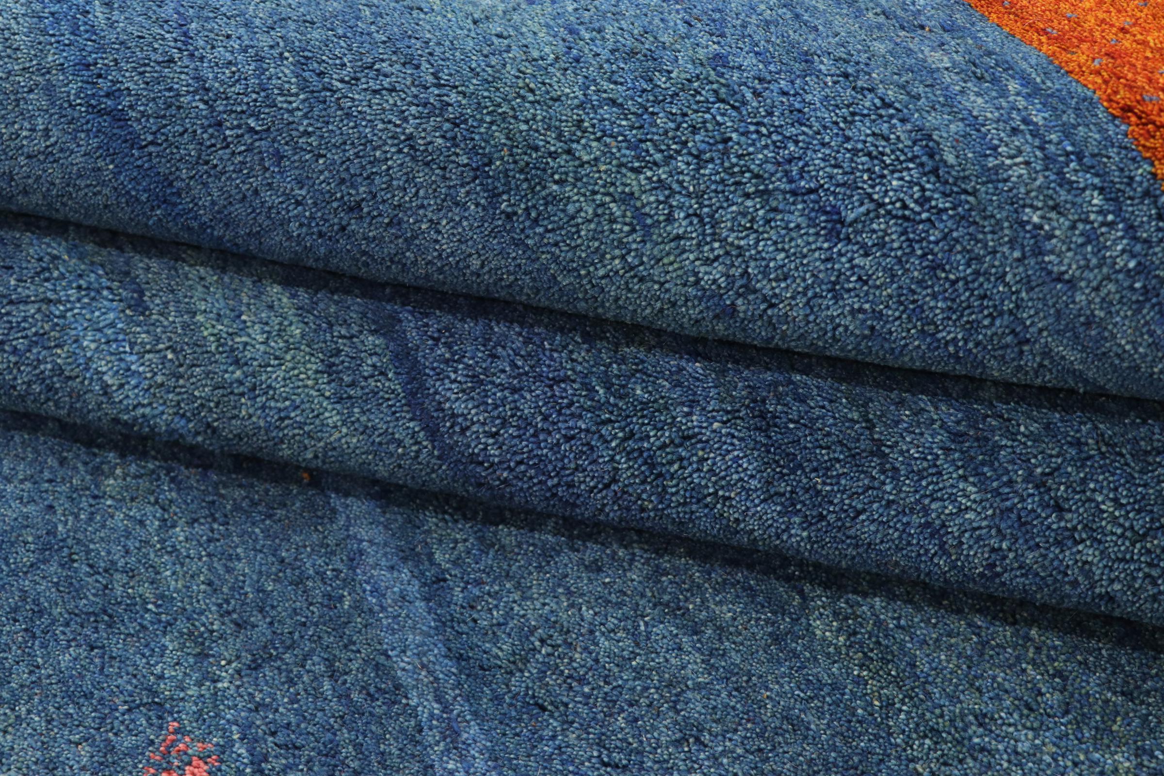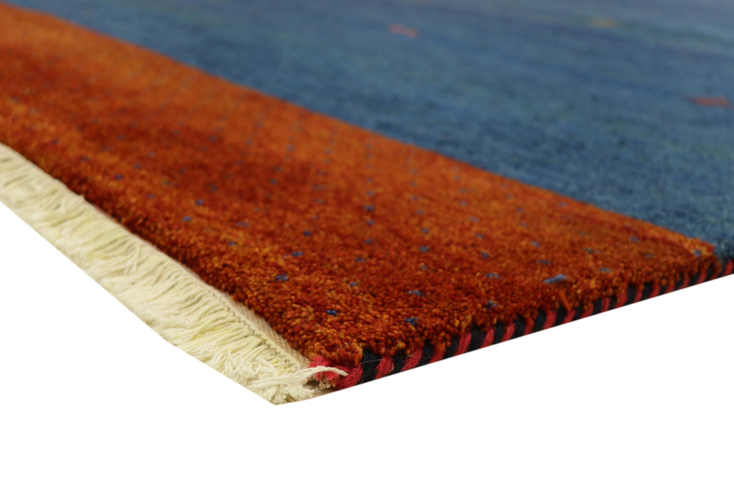 Esta hermosa alfombra de Gabbeh fue anudada a mano en la India. Las alfombras indias de Gabbeh están hechas de suave lana de oveja, son cómodas para los pies y tienen propiedades de aislamiento térmico. La mayoría de sus diseños son simples y modernos atemporales. Se inspiraron en los pueblos nómadas, que dejaban fluir en las alfombras motivos muy simples de su entorno. Las alfombras de Gabbeh de la India no se acercan mucho a la calidad de las de Gabbeh de Persia, pero tienen una muy buena relación precio-rendimiento. Por lo tanto, son perfectamente adecuadas como alfombras anudadas a mano para principiantes.
