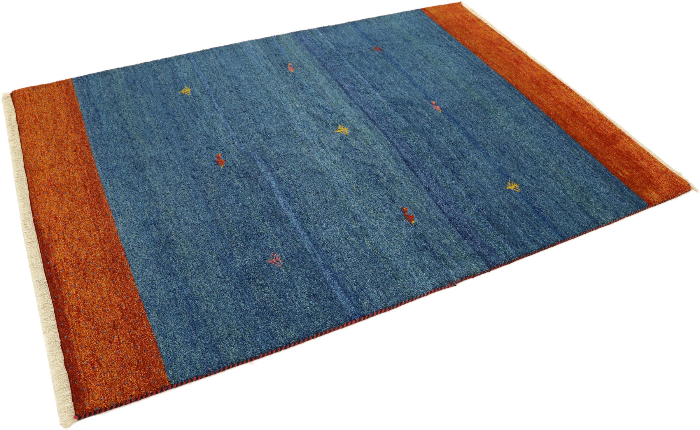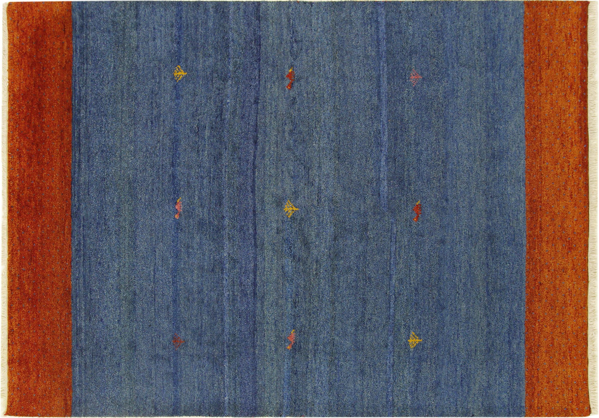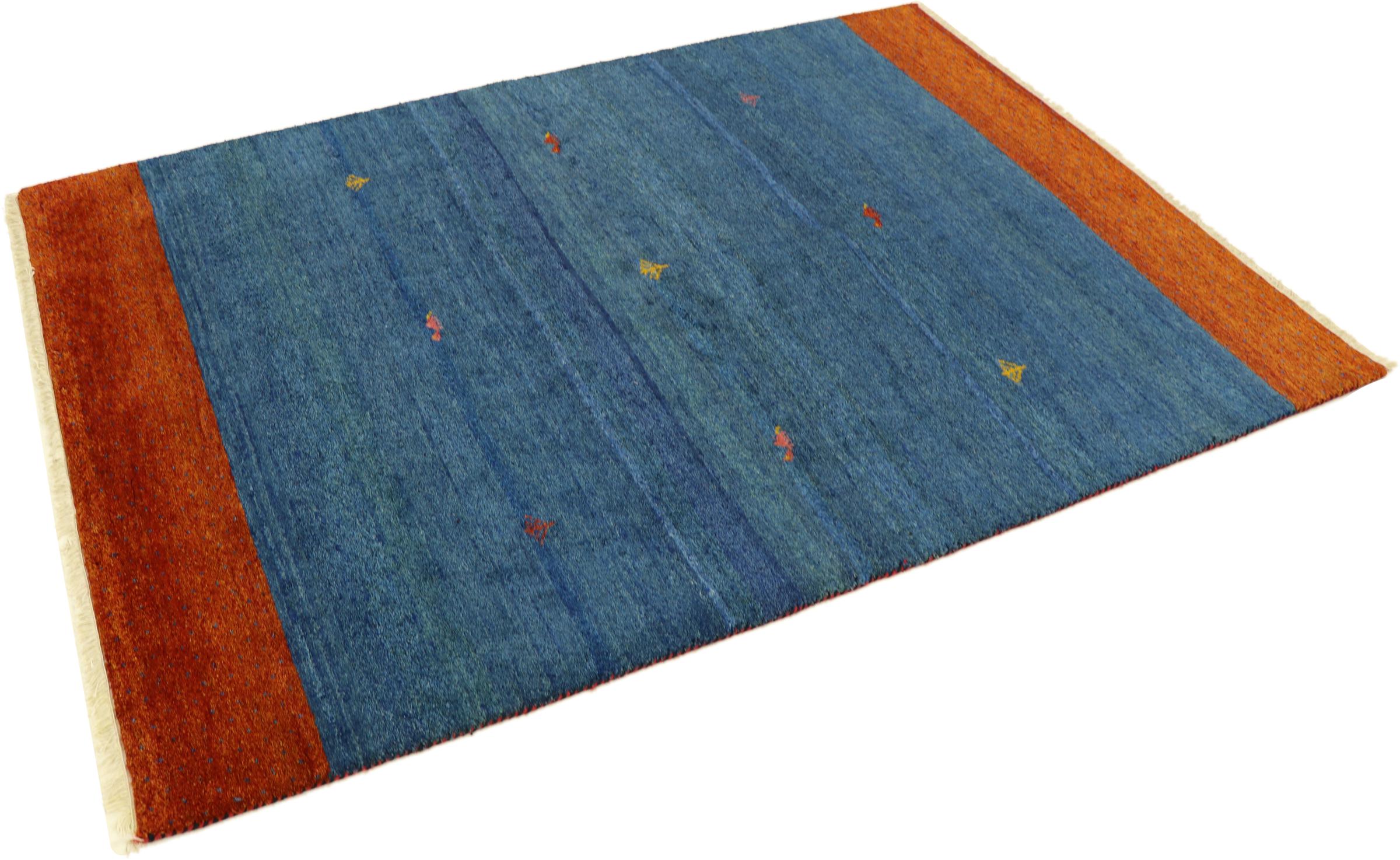 Esta hermosa alfombra de Gabbeh fue anudada a mano en la India. Las alfombras indias de Gabbeh están hechas de suave lana de oveja, son cómodas para los pies y tienen propiedades de aislamiento térmico. La mayoría de sus diseños son simples y modernos atemporales. Se inspiraron en los pueblos nómadas, que dejaban fluir en las alfombras motivos muy simples de su entorno. Las alfombras de Gabbeh de la India no se acercan mucho a la calidad de las de Gabbeh de Persia, pero tienen una muy buena relación precio-rendimiento. Por lo tanto, son perfectamente adecuadas como alfombras anudadas a mano para principiantes.