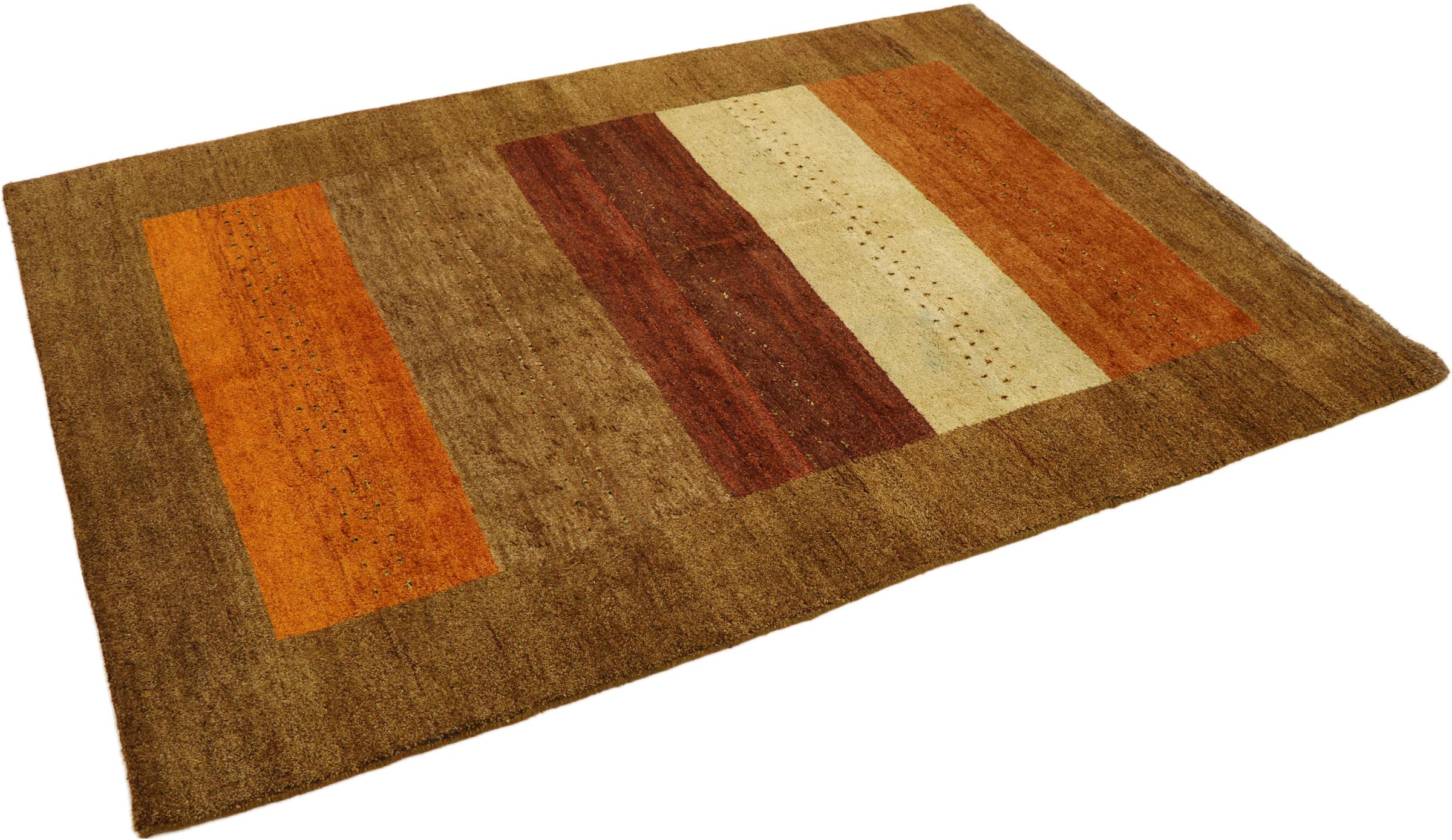 Esta hermosa alfombra de Gabbeh fue anudada a mano en la India. Las alfombras indias de Gabbeh están hechas de suave lana de oveja, son cómodas para los pies y tienen propiedades de aislamiento térmico. La mayoría de sus diseños son simples y modernos atemporales. Se inspiraron en los pueblos nómadas, que dejaban fluir en las alfombras motivos muy simples de su entorno. Las alfombras de Gabbeh de la India no se acercan mucho a la calidad de las de Gabbeh de Persia, pero tienen una muy buena relación precio-rendimiento. Por lo tanto, son perfectamente adecuadas como alfombras anudadas a mano para principiantes.