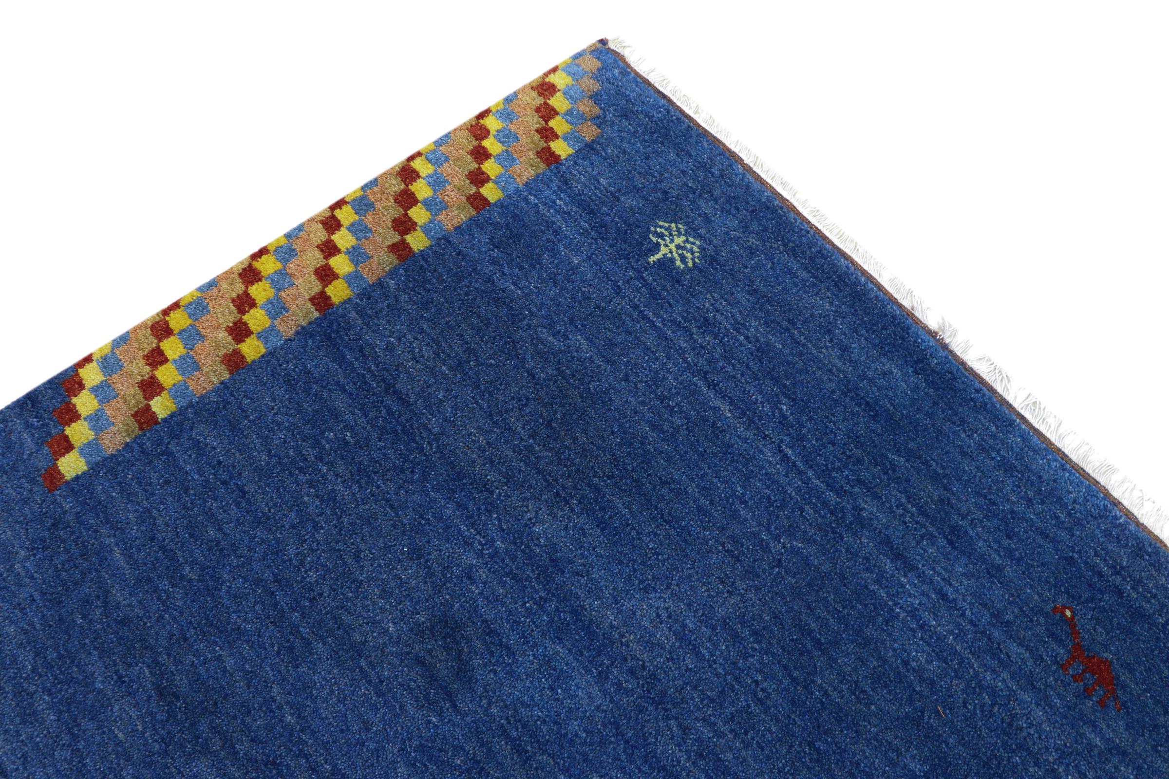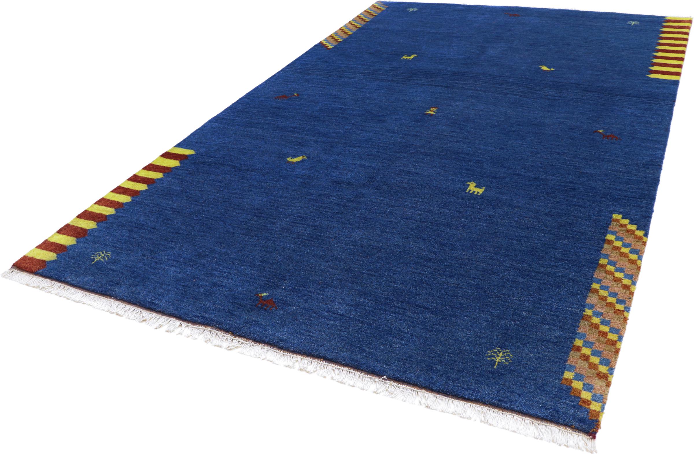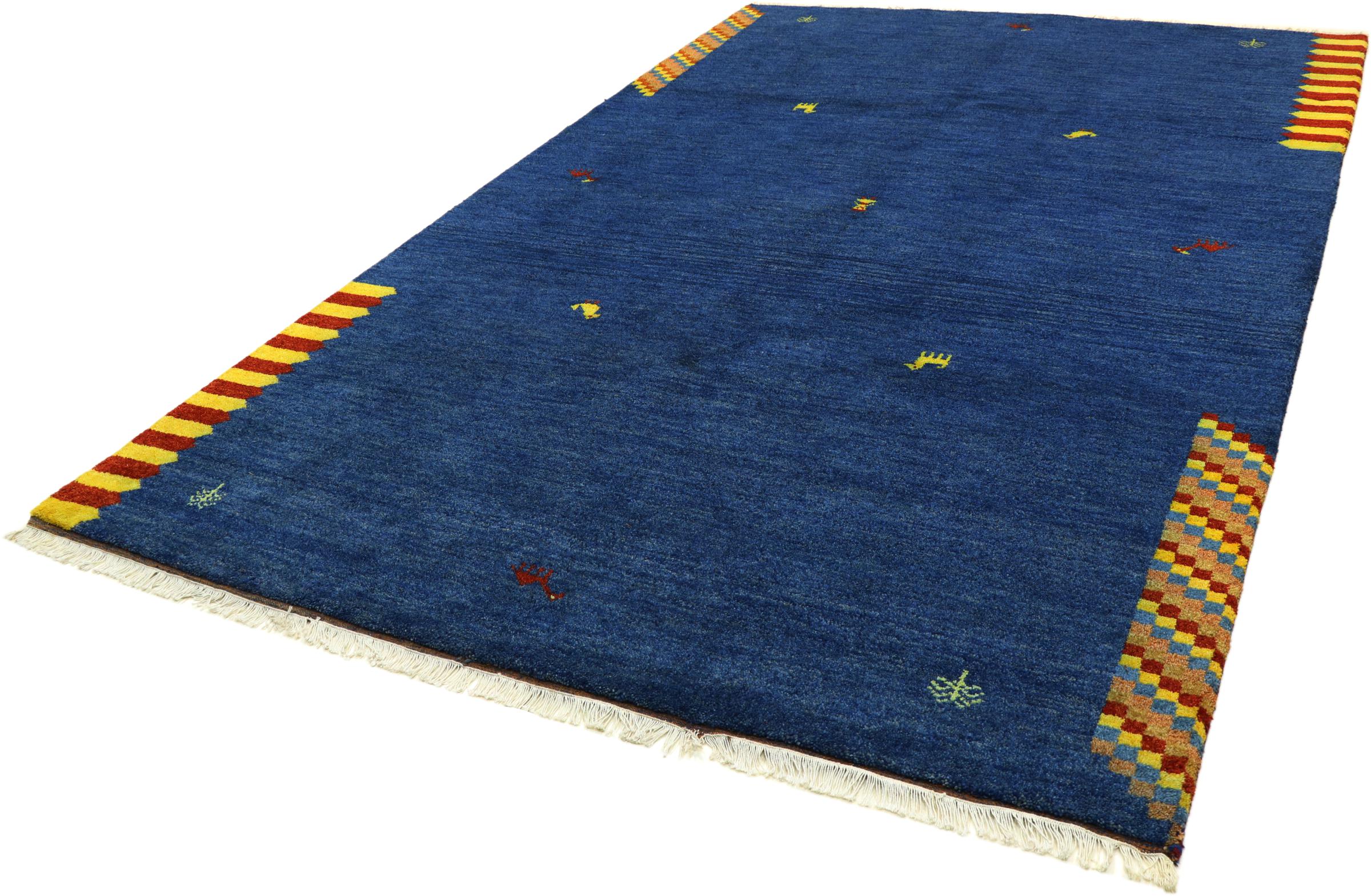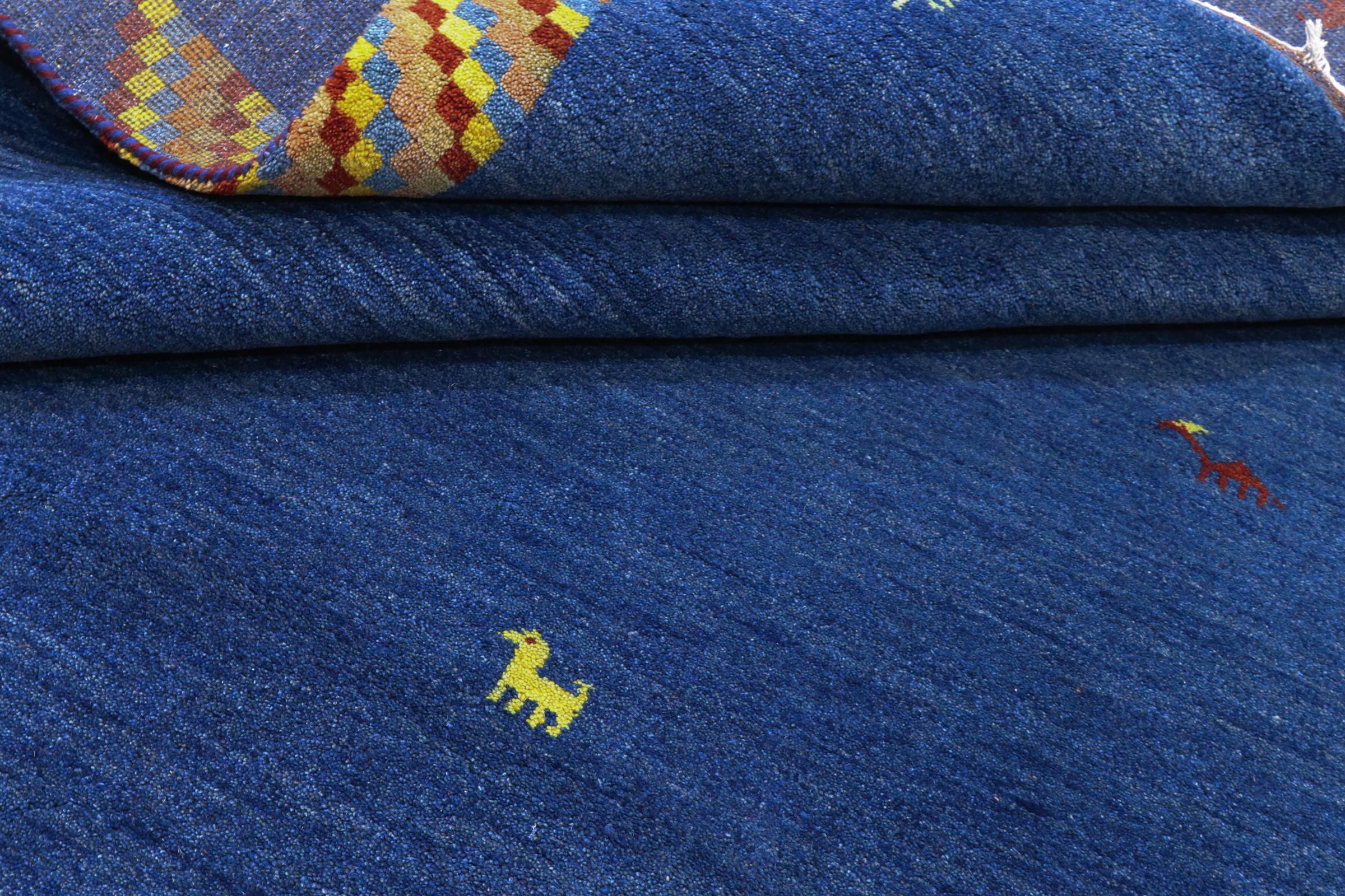 Esta hermosa alfombra de Gabbeh fue anudada a mano en la India. Las alfombras indias de Gabbeh están hechas de suave lana de oveja, son cómodas para los pies y tienen propiedades de aislamiento térmico. La mayoría de sus diseños son simples y modernos atemporales. Se inspiraron en los pueblos nómadas, que dejaban fluir en las alfombras motivos muy simples de su entorno. Las alfombras de Gabbeh de la India no se acercan mucho a la calidad de las de Gabbeh de Persia, pero tienen una muy buena relación precio-rendimiento. Por lo tanto, son perfectamente adecuadas como alfombras anudadas a mano para principiantes.