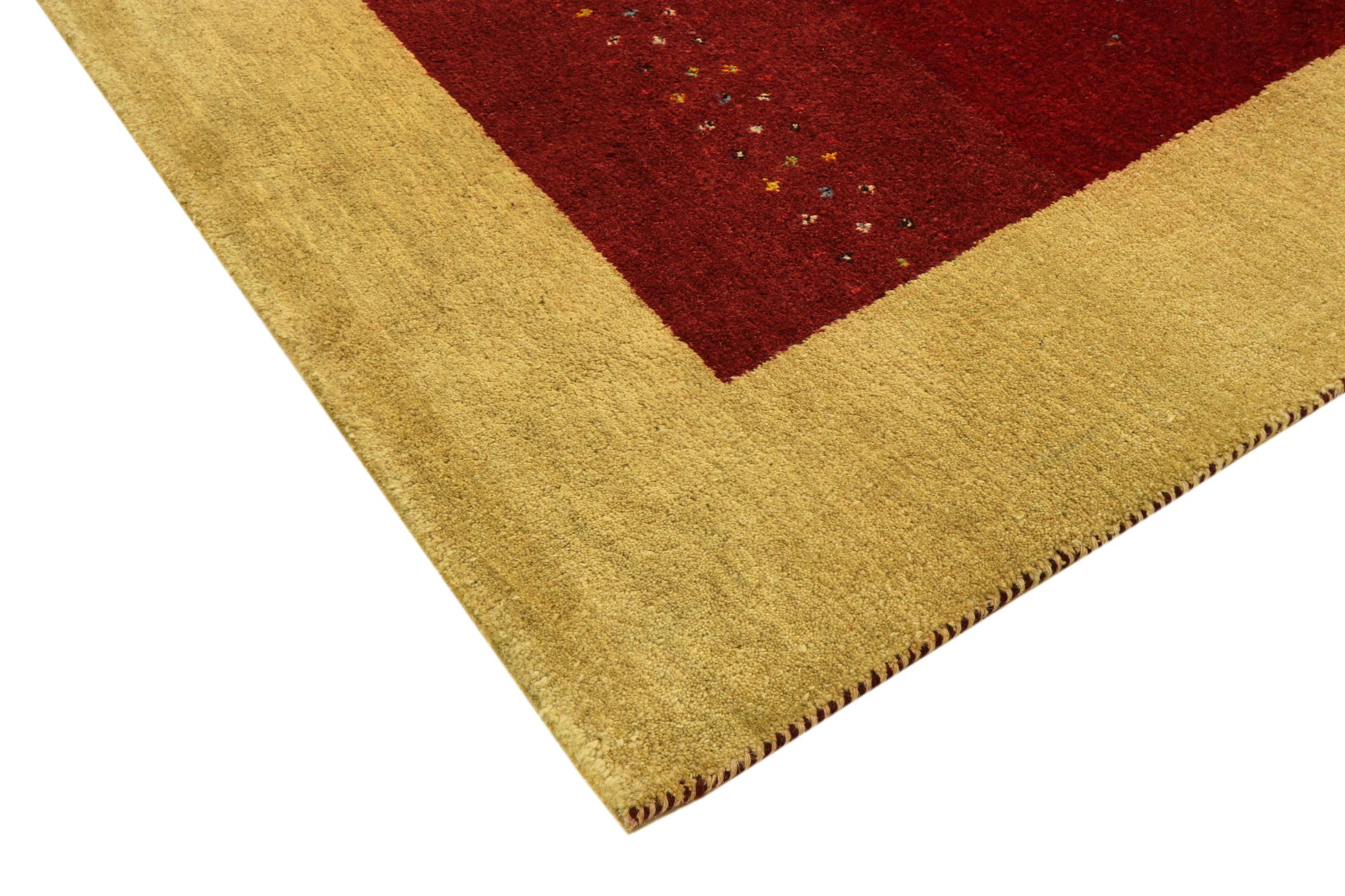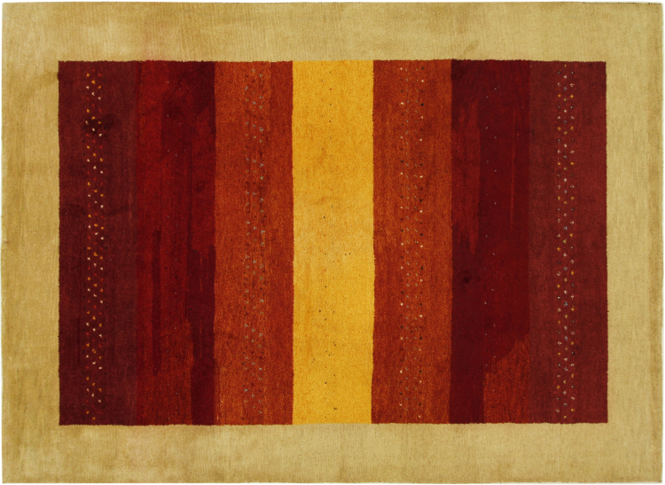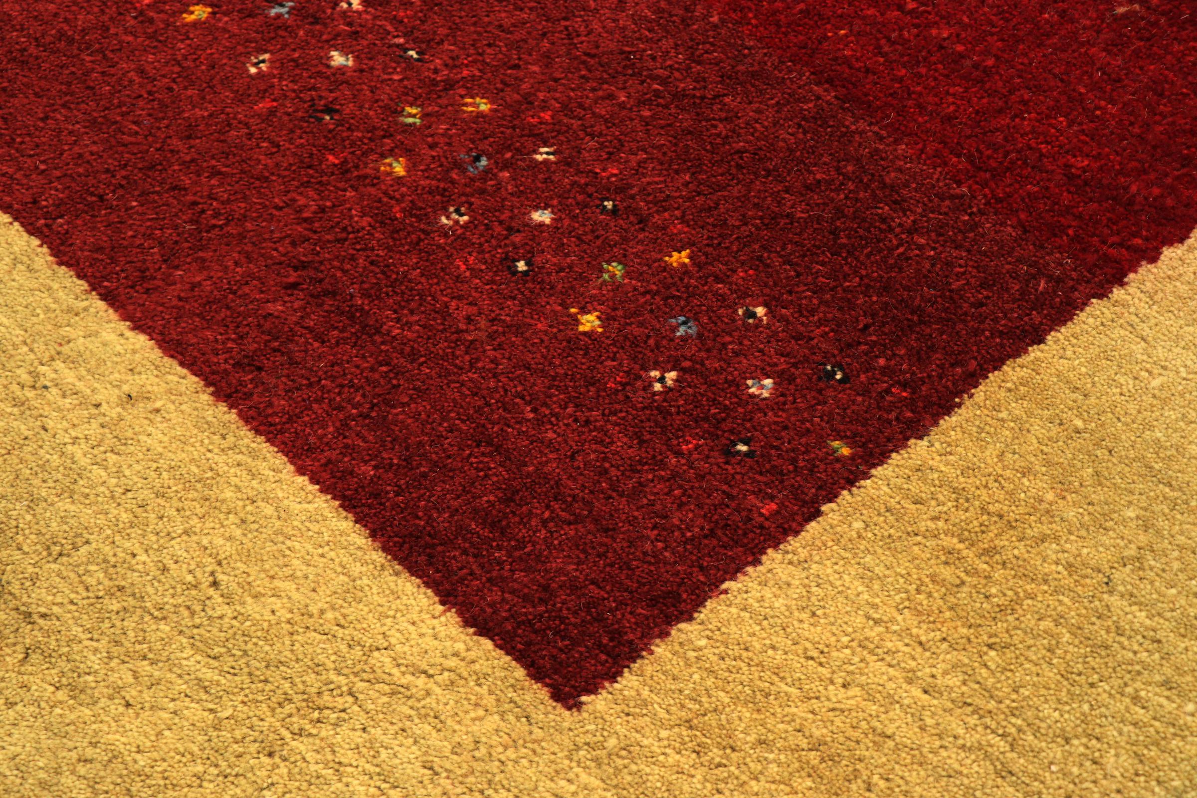 Esta hermosa alfombra de Gabbeh fue anudada a mano en la India. Las alfombras indias de Gabbeh están hechas de suave lana de oveja, son cómodas para los pies y tienen propiedades de aislamiento térmico. La mayoría de sus diseños son simples y modernos atemporales. Se inspiraron en los pueblos nómadas, que dejaban fluir en las alfombras motivos muy simples de su entorno. Las alfombras de Gabbeh de la India no se acercan mucho a la calidad de las de Gabbeh de Persia, pero tienen una muy buena relación precio-rendimiento. Por lo tanto, son perfectamente adecuadas como alfombras anudadas a mano para principiantes.