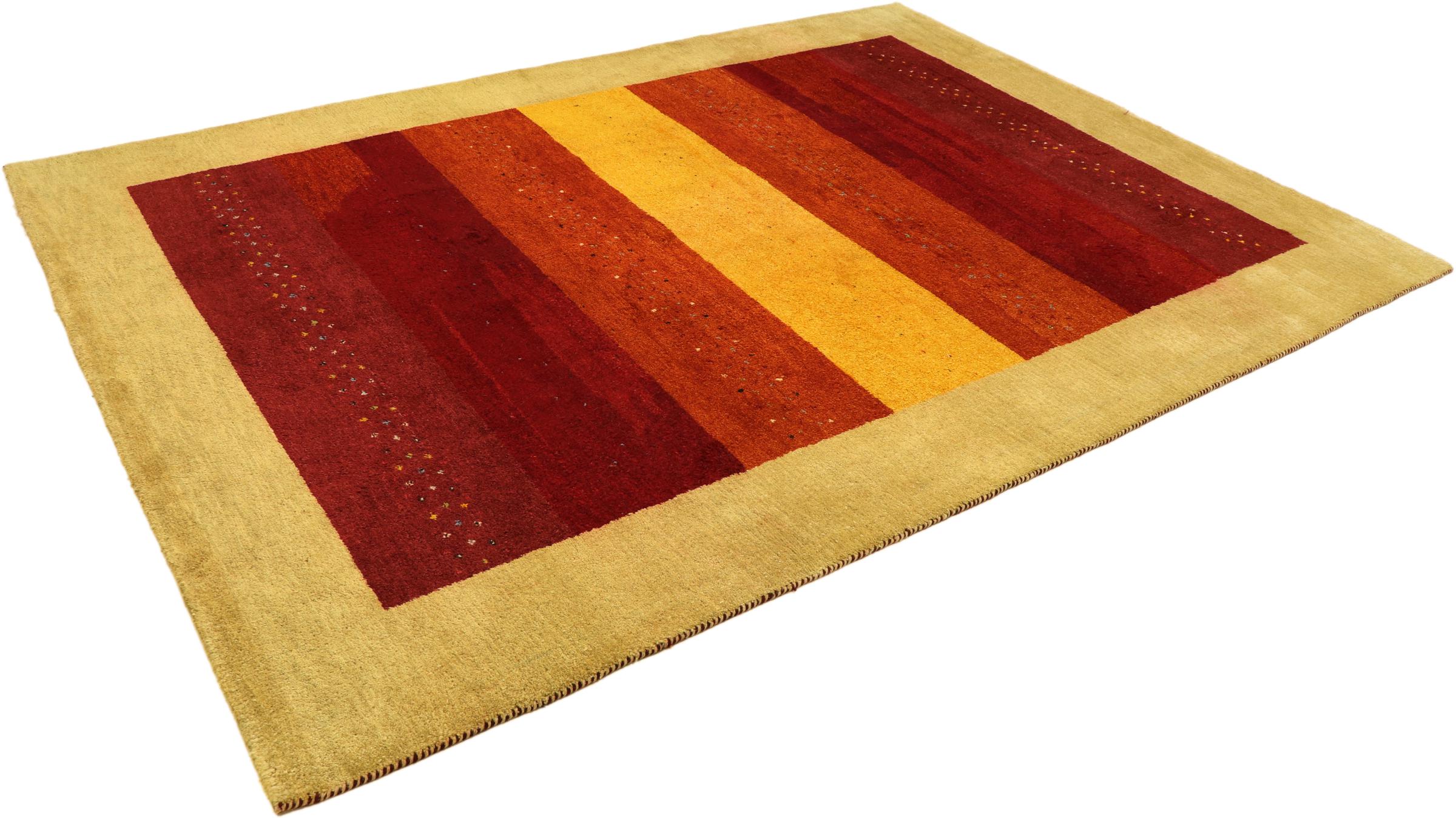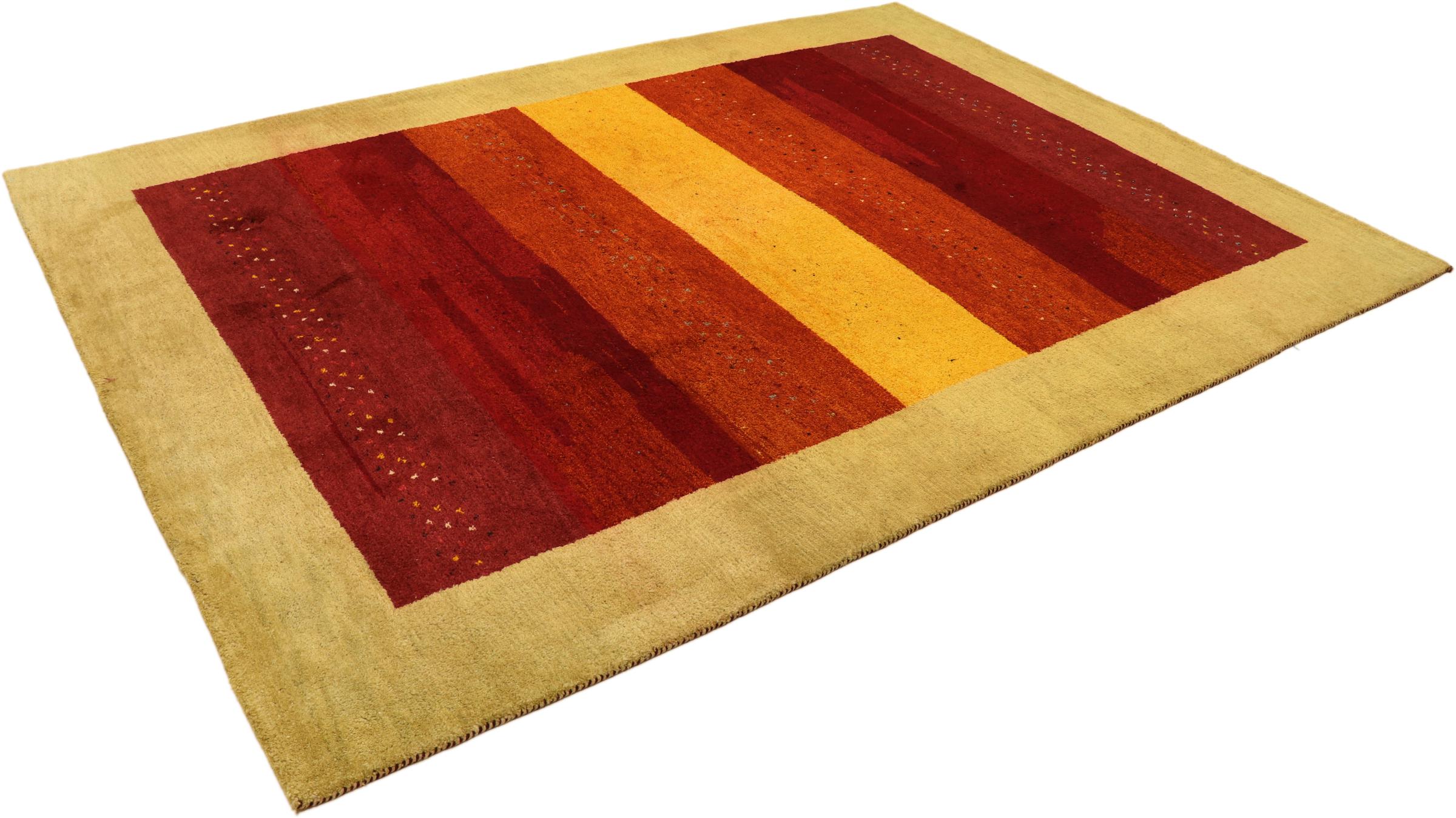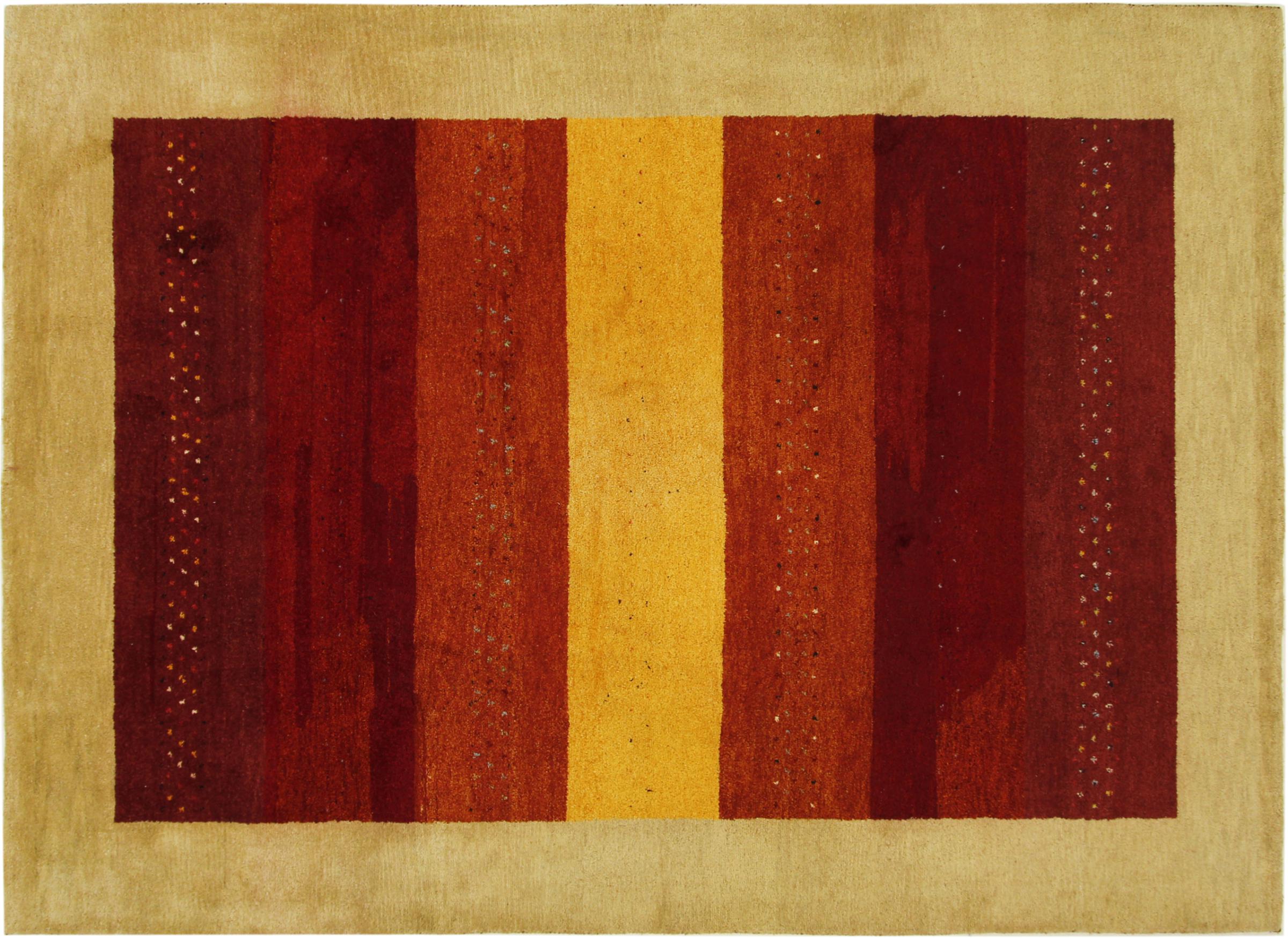 Esta hermosa alfombra de Gabbeh fue anudada a mano en la India. Las alfombras indias de Gabbeh están hechas de suave lana de oveja, son cómodas para los pies y tienen propiedades de aislamiento térmico. La mayoría de sus diseños son simples y modernos atemporales. Se inspiraron en los pueblos nómadas, que dejaban fluir en las alfombras motivos muy simples de su entorno. Las alfombras de Gabbeh de la India no se acercan mucho a la calidad de las de Gabbeh de Persia, pero tienen una muy buena relación precio-rendimiento. Por lo tanto, son perfectamente adecuadas como alfombras anudadas a mano para principiantes.
