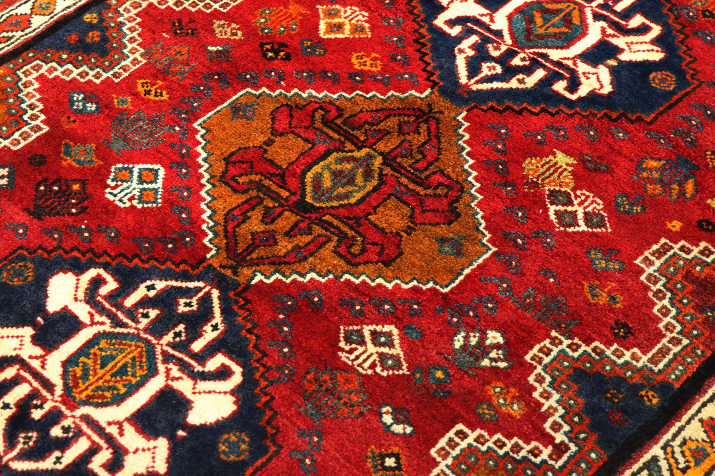 Esta ghashghai es una auténtica maravilla. Sus colores y diseños reflejan la vida de los nómadas Ghashghai de Irán. Estas tribus nómadas viven principalmente en los alrededores de la ciudad de Shiraz. Deje que un pedazo de la antigua cultura persa se traslade a sus propias cuatro paredes.