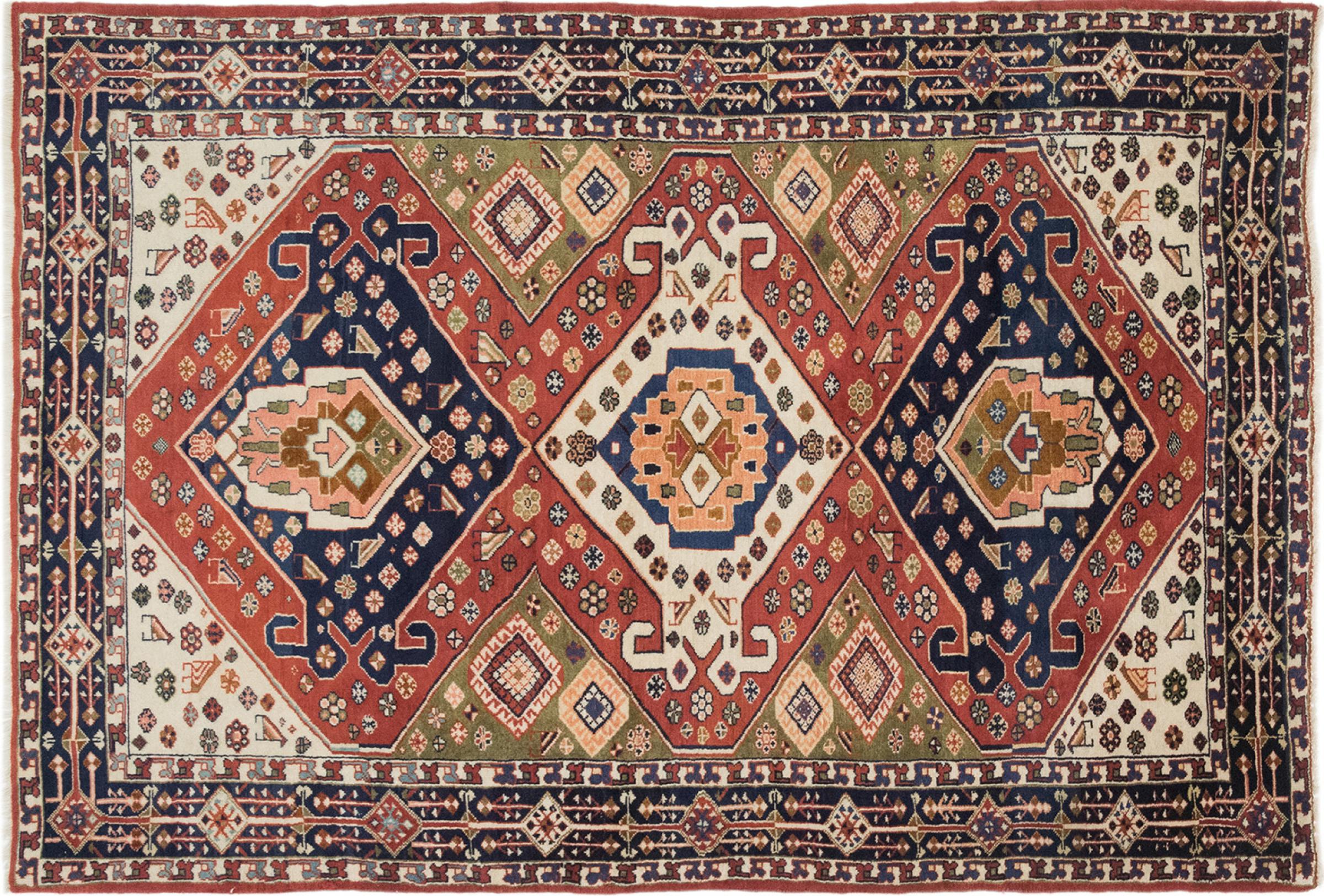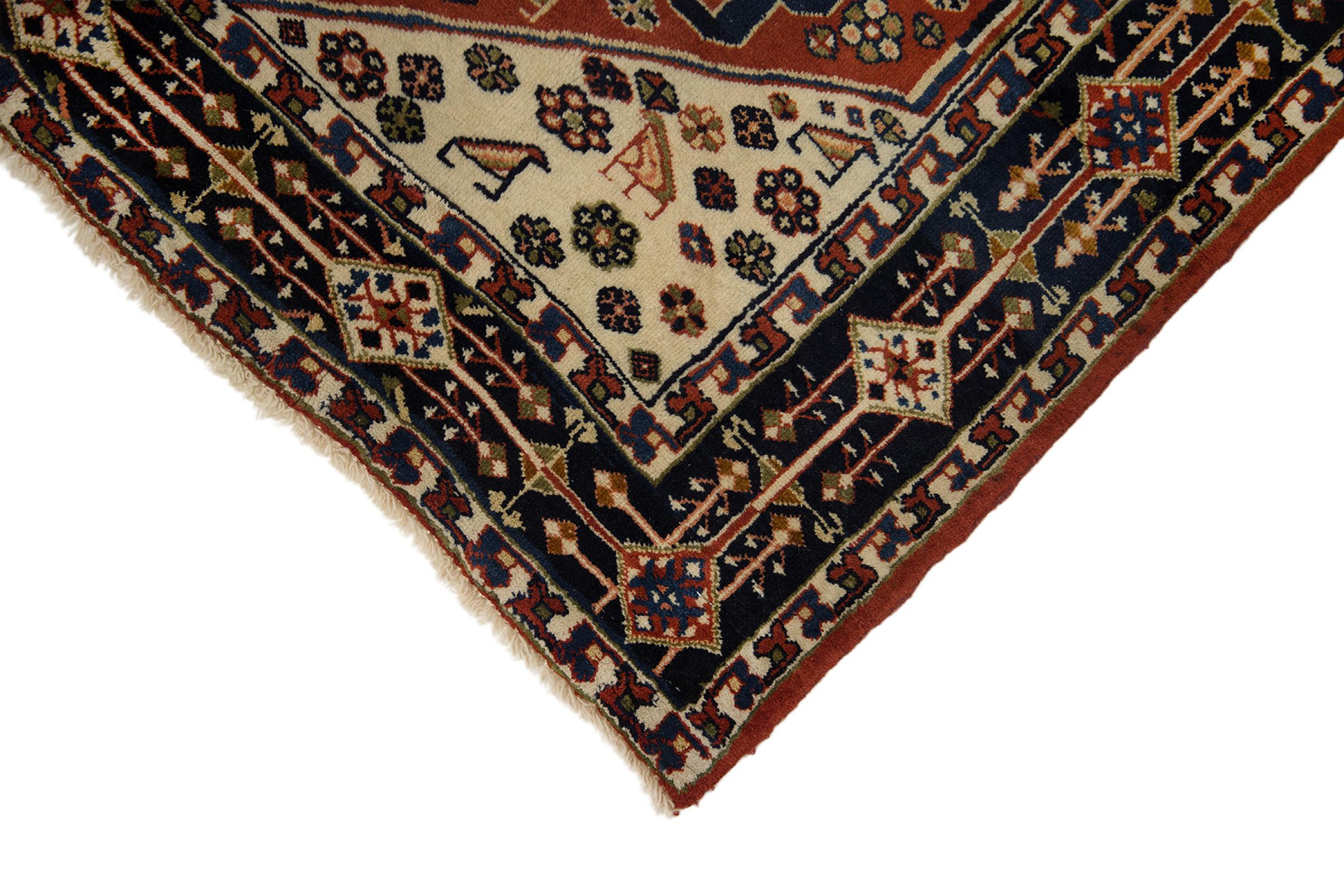 Esta alfombra pertenece a alfombras de pueblos y nómadas de Irán, antiguamente Persia. Este tipo de alfombra se anuda a mano en ciudades y pueblos más pequeños según la antigua tradición. Incluso los nómadas siguen anudando alfombras persas al aire libre. Las alfombras están anudadas sin un patrón y completamente desde la cabeza. Se caracterizan por los ornamentos clásicos, que están dispuestos en patrones rectos y geométricos. Gracias a su origen cultural-tradicional, estas alfombras tienen un carácter único que encarna la antigua Persia.