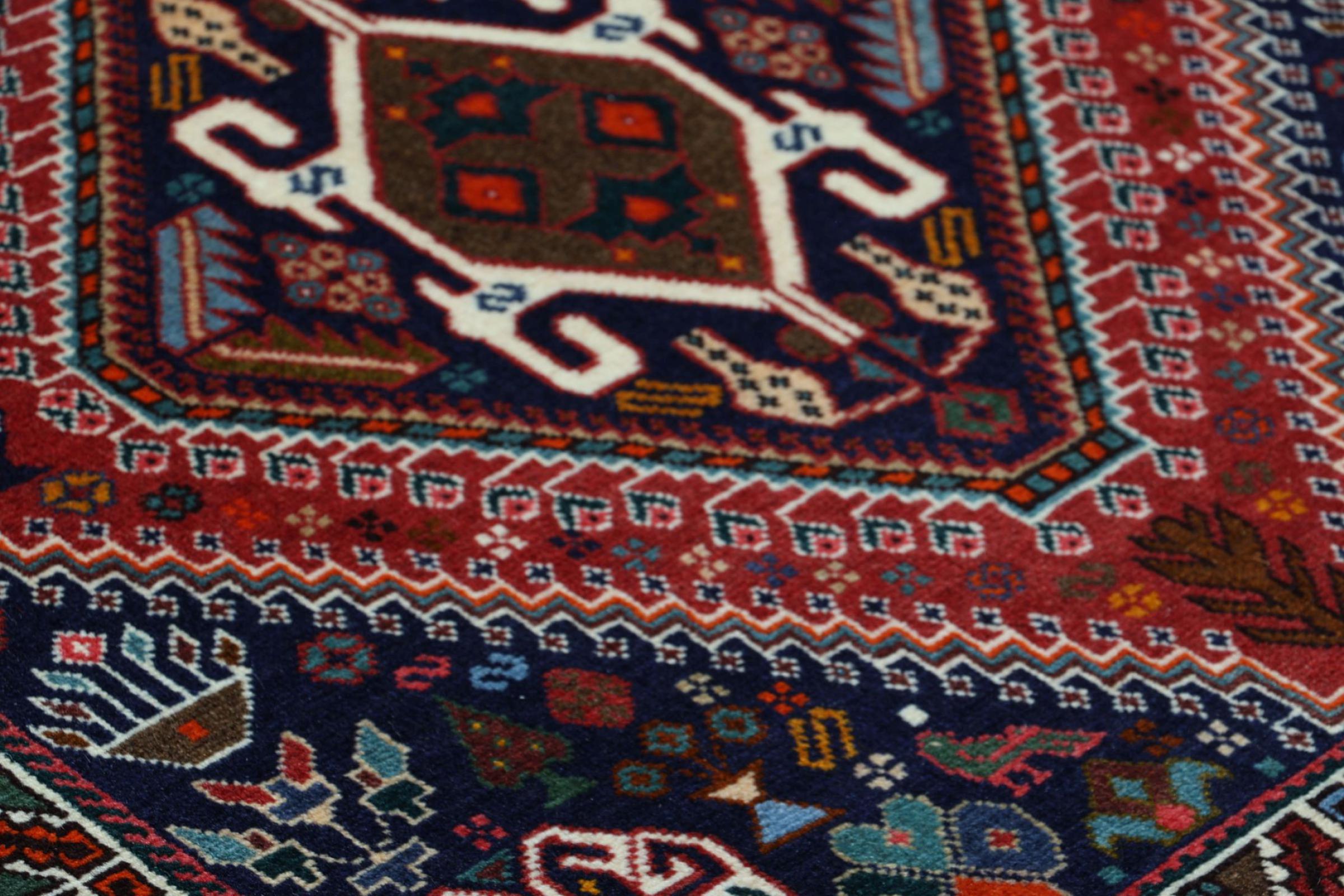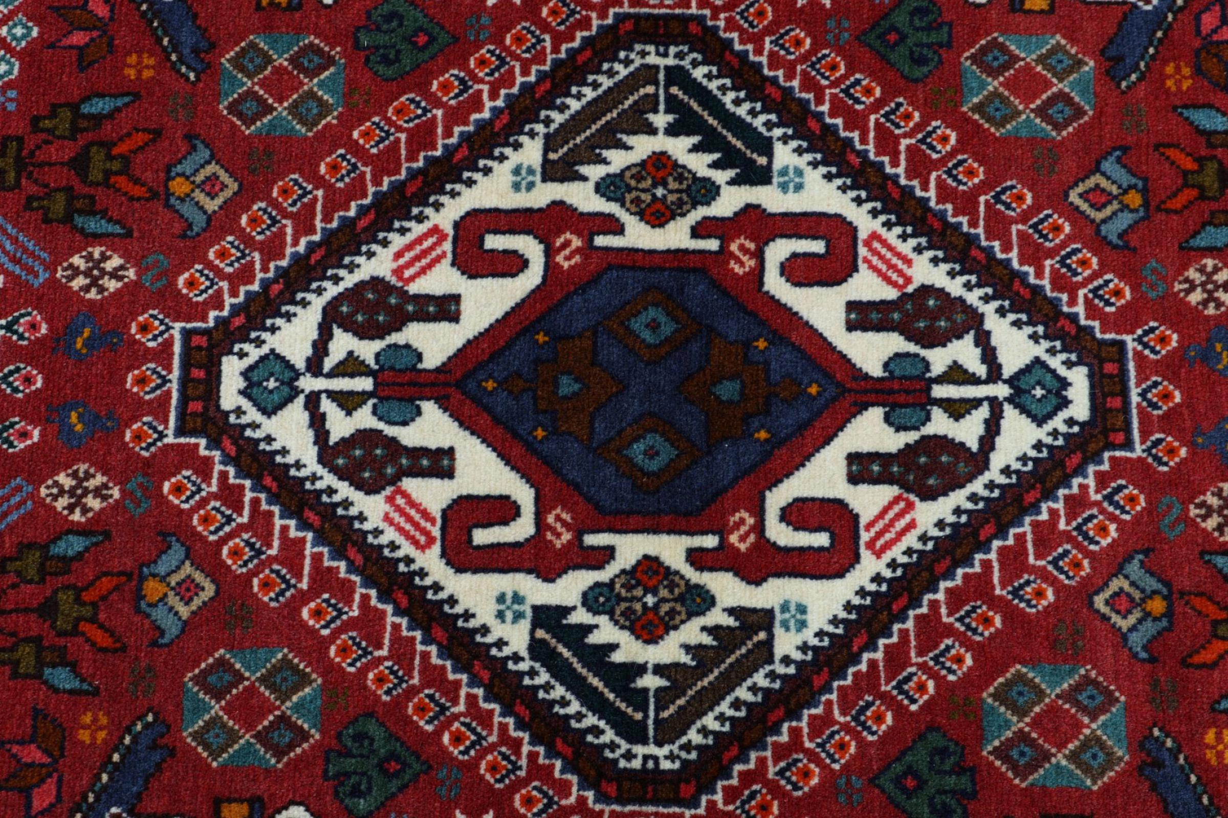 Esta alfombra pertenece a alfombras de pueblos y nómadas de Irán, antiguamente Persia. Este tipo de alfombra se anuda a mano en ciudades y pueblos más pequeños según la antigua tradición. Incluso los nómadas siguen anudando alfombras persas al aire libre. Las alfombras están anudadas sin un patrón y completamente desde la cabeza. Se caracterizan por los ornamentos clásicos, que están dispuestos en patrones rectos y geométricos. Gracias a su origen cultural-tradicional, estas alfombras tienen un carácter único que encarna la antigua Persia.
