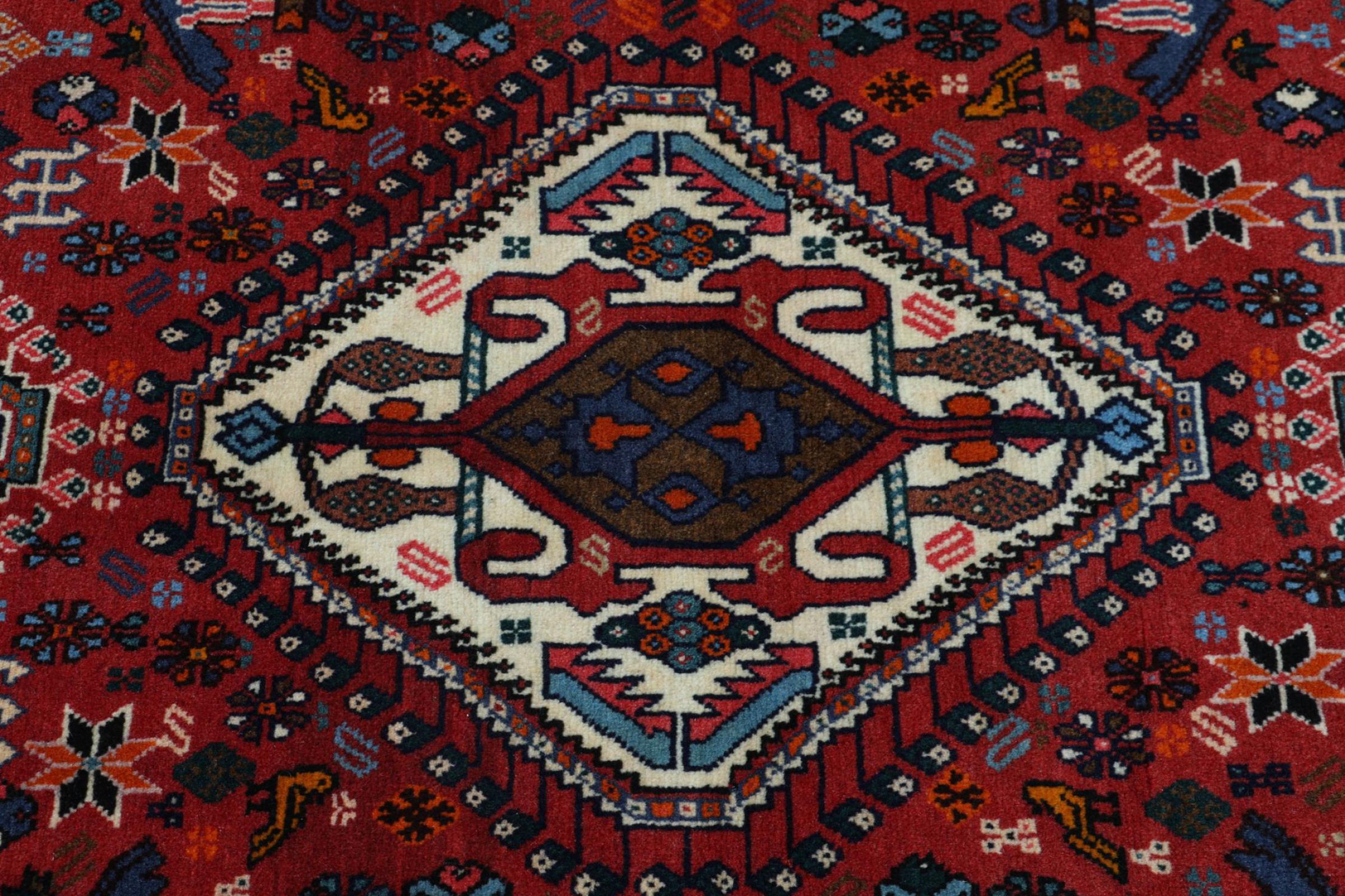 Esta alfombra pertenece a alfombras de pueblos y nómadas de Irán, antiguamente Persia. Este tipo de alfombra se anuda a mano en ciudades y pueblos más pequeños según la antigua tradición. Incluso los nómadas siguen anudando alfombras persas al aire libre. Las alfombras están anudadas sin un patrón y completamente desde la cabeza. Se caracterizan por los ornamentos clásicos, que están dispuestos en patrones rectos y geométricos. Gracias a su origen cultural-tradicional, estas alfombras tienen un carácter único que encarna la antigua Persia.