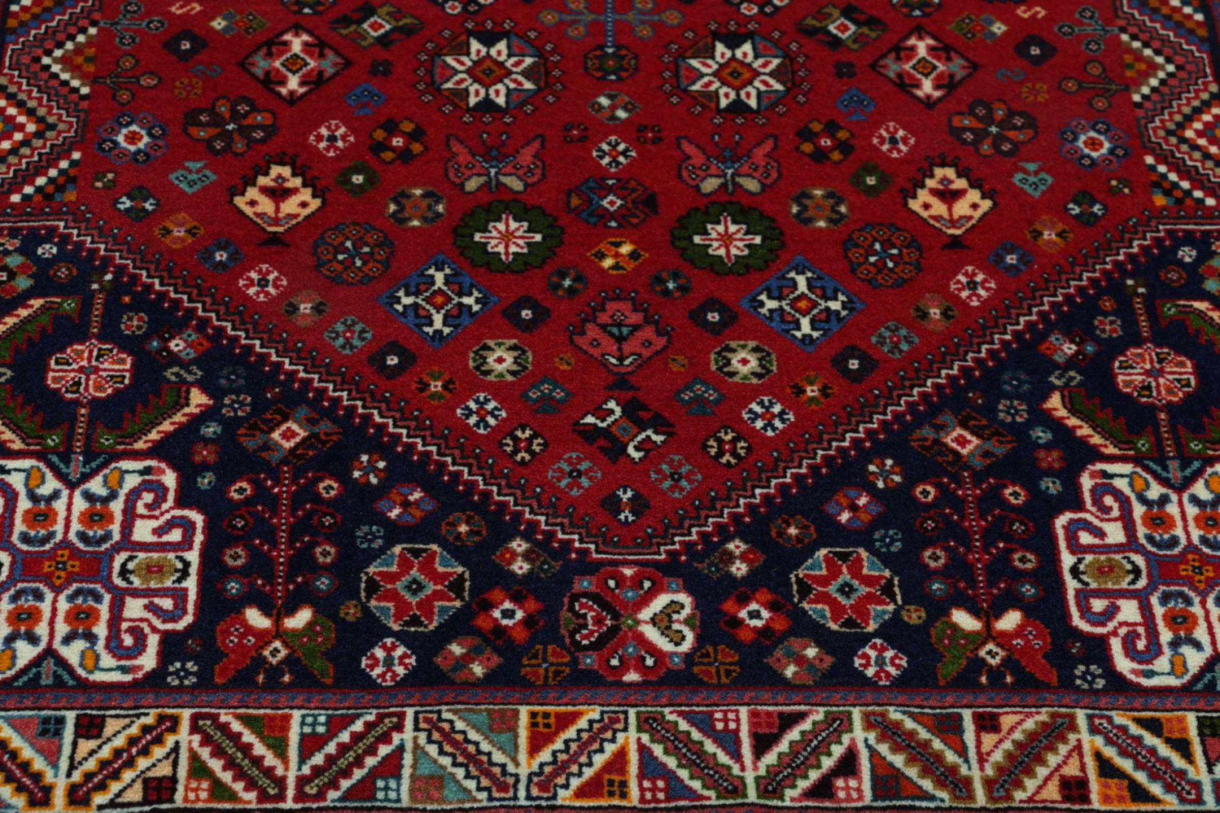 Esta alfombra pertenece a alfombras de pueblos y nómadas de Irán, antiguamente Persia. Este tipo de alfombra se anuda a mano en ciudades y pueblos más pequeños según la antigua tradición. Incluso los nómadas siguen anudando alfombras persas al aire libre. Las alfombras están anudadas sin un patrón y completamente desde la cabeza. Se caracterizan por los ornamentos clásicos, que están dispuestos en patrones rectos y geométricos. Gracias a su origen cultural-tradicional, estas alfombras tienen un carácter único que encarna la antigua Persia.