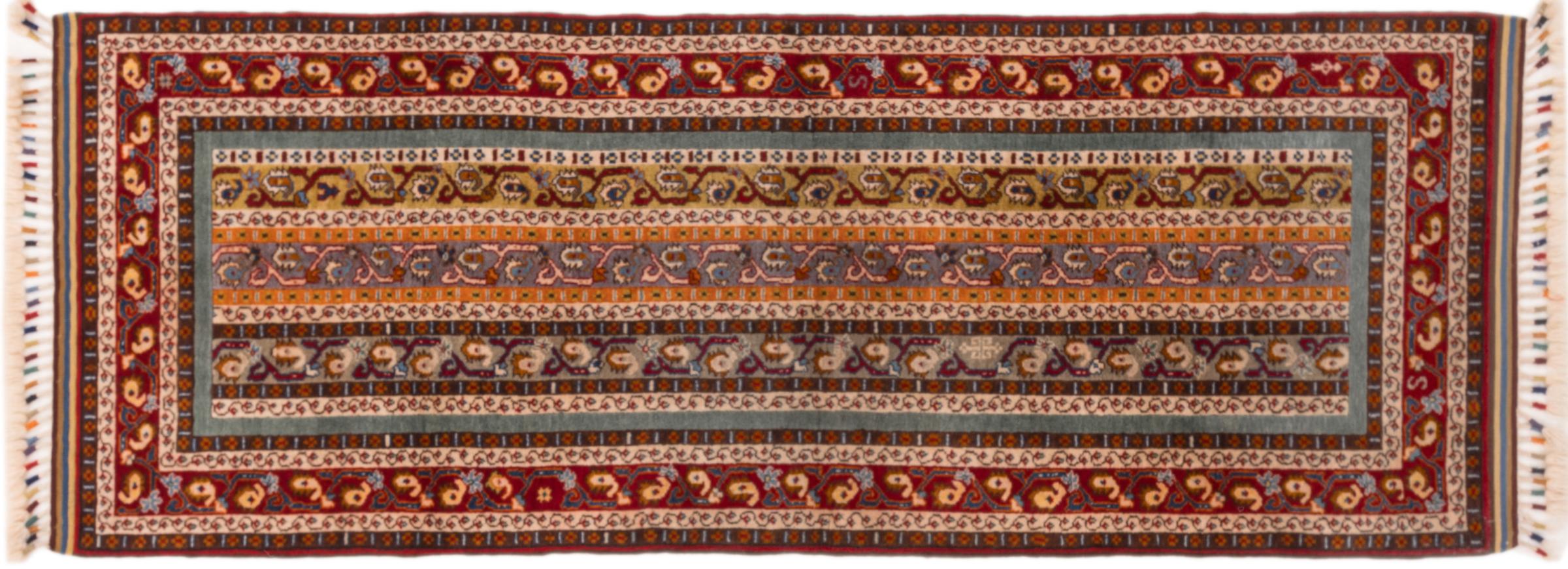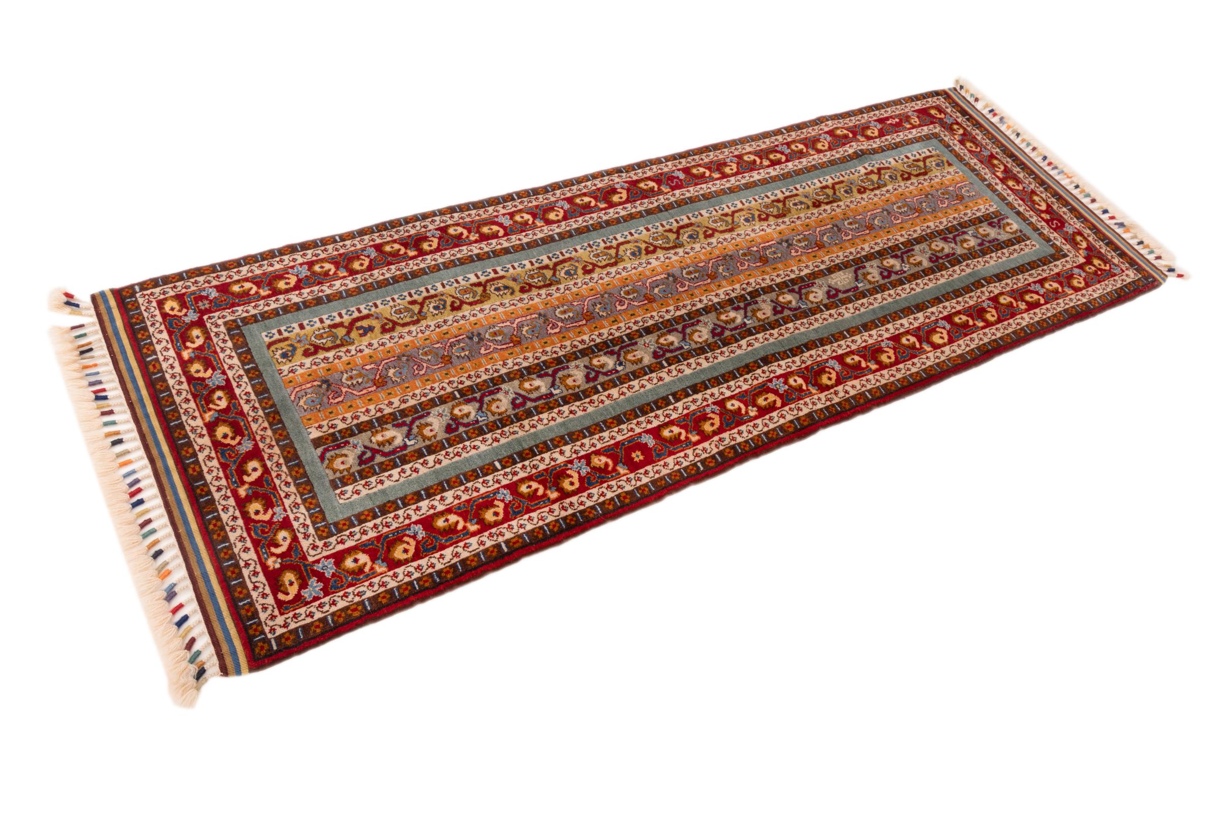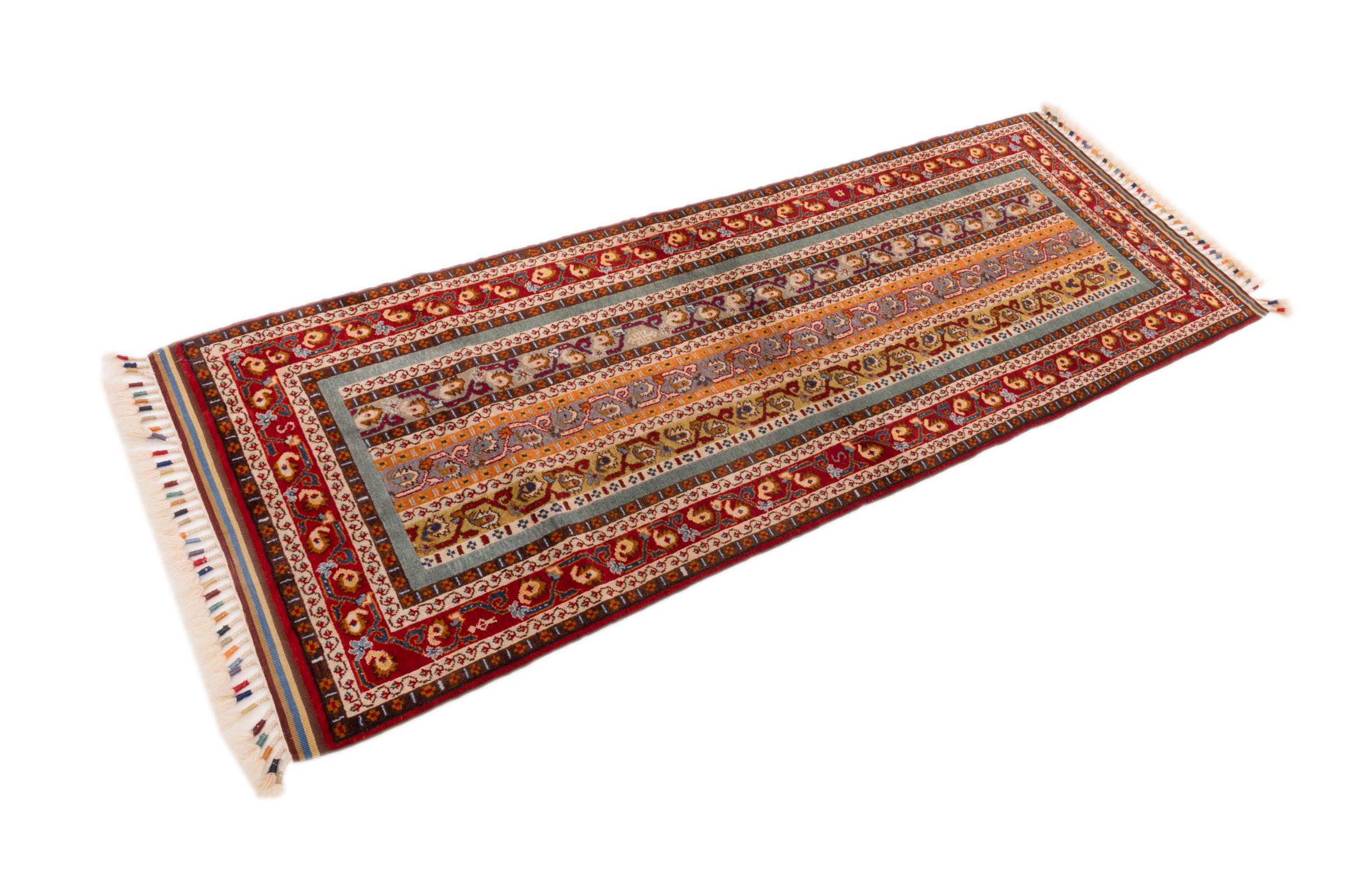 Alfombra número: 22182200104025 Tamaño: 220x80 cm Espesor: alrededor de 12 mm Nudos: 128 000 - 160 000 / m² Elaboración: Anudado a mano Crespón: Lana de oveja Urdimbre: Lana de oveja Origen: Persia / Iran Edad: alrededor de 20-30 años (Nueva) Peso: alrededor de 7 kg También conocido como Qashqai, Gaschgai, Gashghai, Kashgai Cantidad en stock: Única - Solo 1 en stock