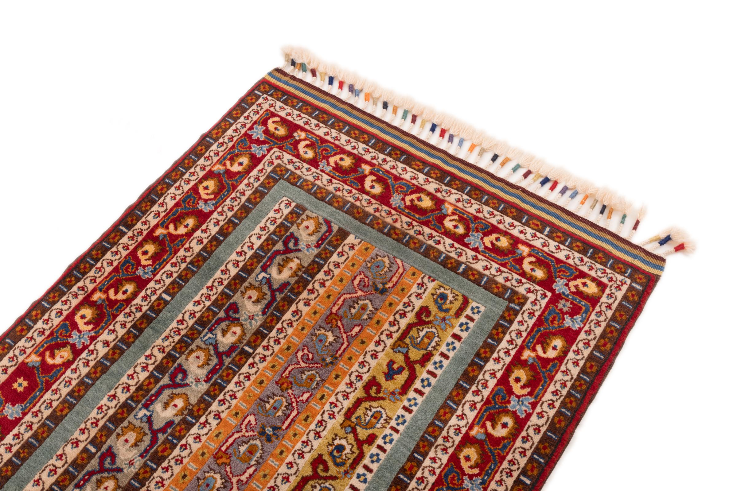 Esta alfombra pertenece a alfombras de pueblos y nómadas de Irán, antiguamente Persia. Este tipo de alfombra se anuda a mano en ciudades y pueblos más pequeños según la antigua tradición. Incluso los nómadas siguen anudando alfombras persas al aire libre. Las alfombras están anudadas sin un patrón y completamente desde la cabeza. Se caracterizan por los ornamentos clásicos, que están dispuestos en patrones rectos y geométricos. Gracias a su origen cultural-tradicional, estas alfombras tienen un carácter único que encarna la antigua Persia.