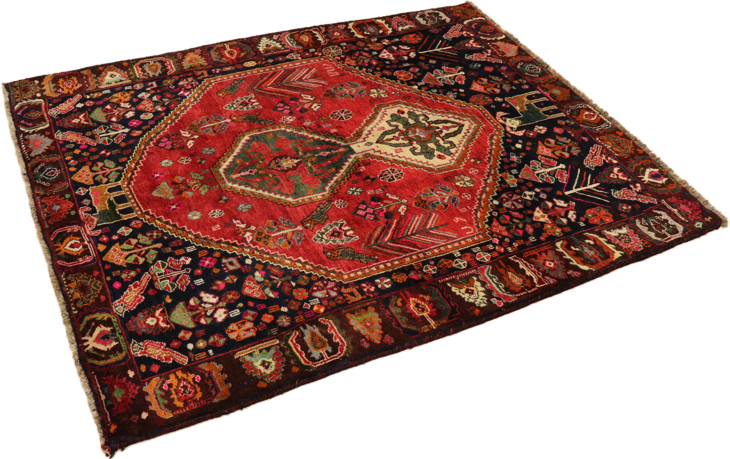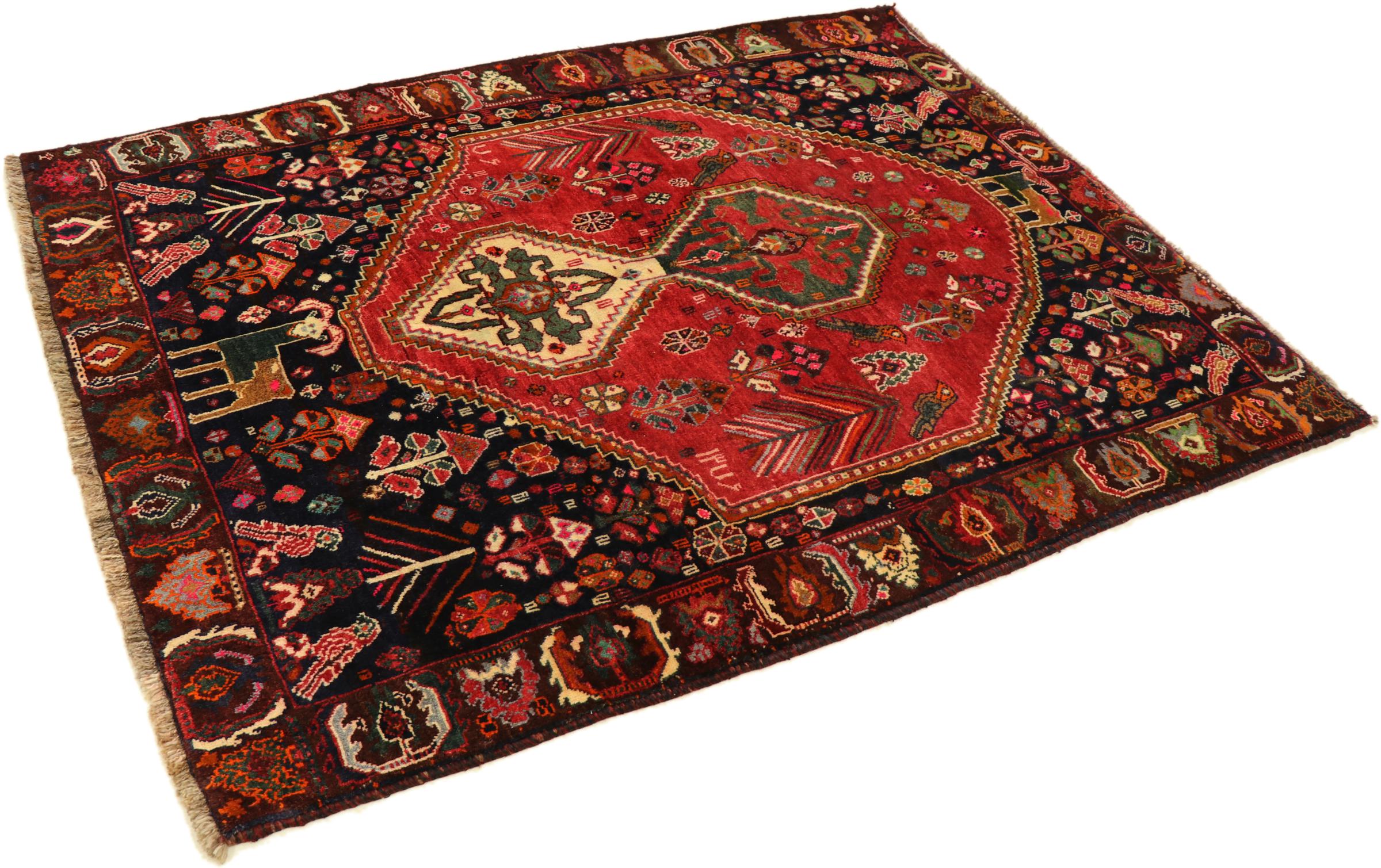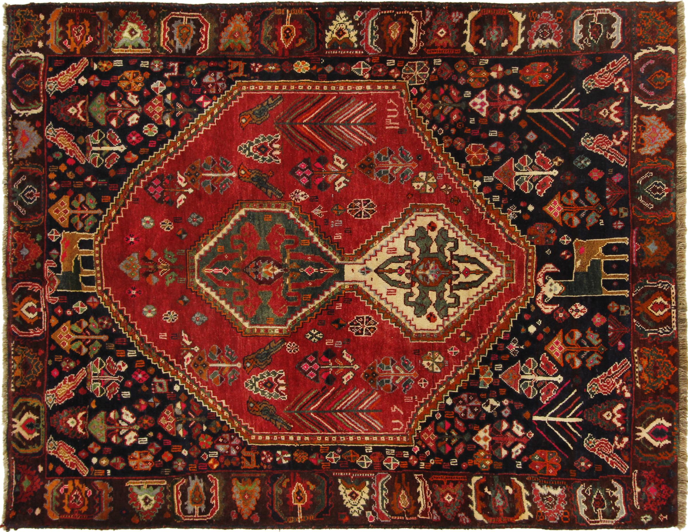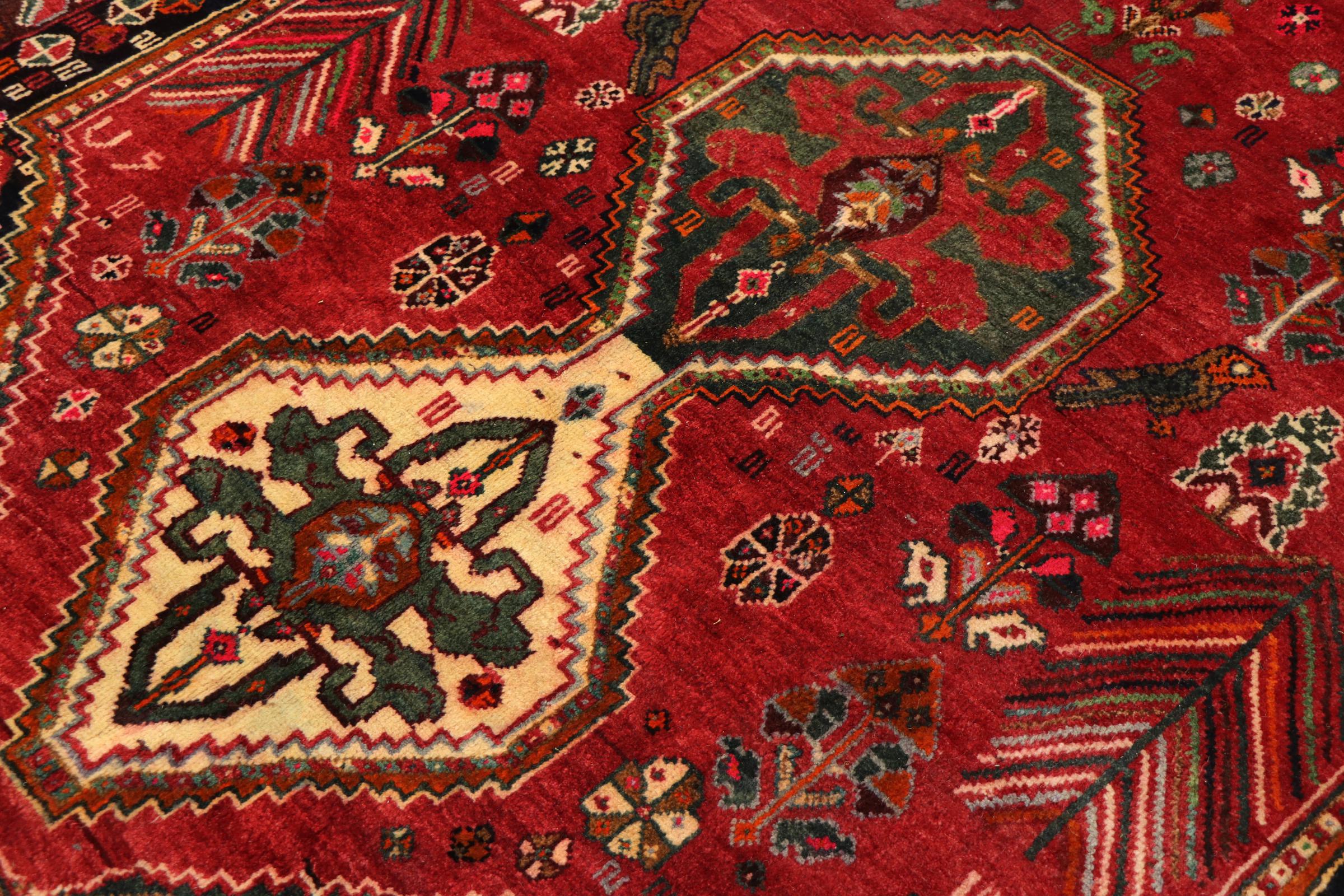 Esta ghashghai es una auténtica maravilla. Sus colores y diseños reflejan la vida de los nómadas Ghashghai de Irán. Estas tribus nómadas viven principalmente en los alrededores de la ciudad de Shiraz. Deje que un pedazo de la antigua cultura persa se traslade a sus propias cuatro paredes.