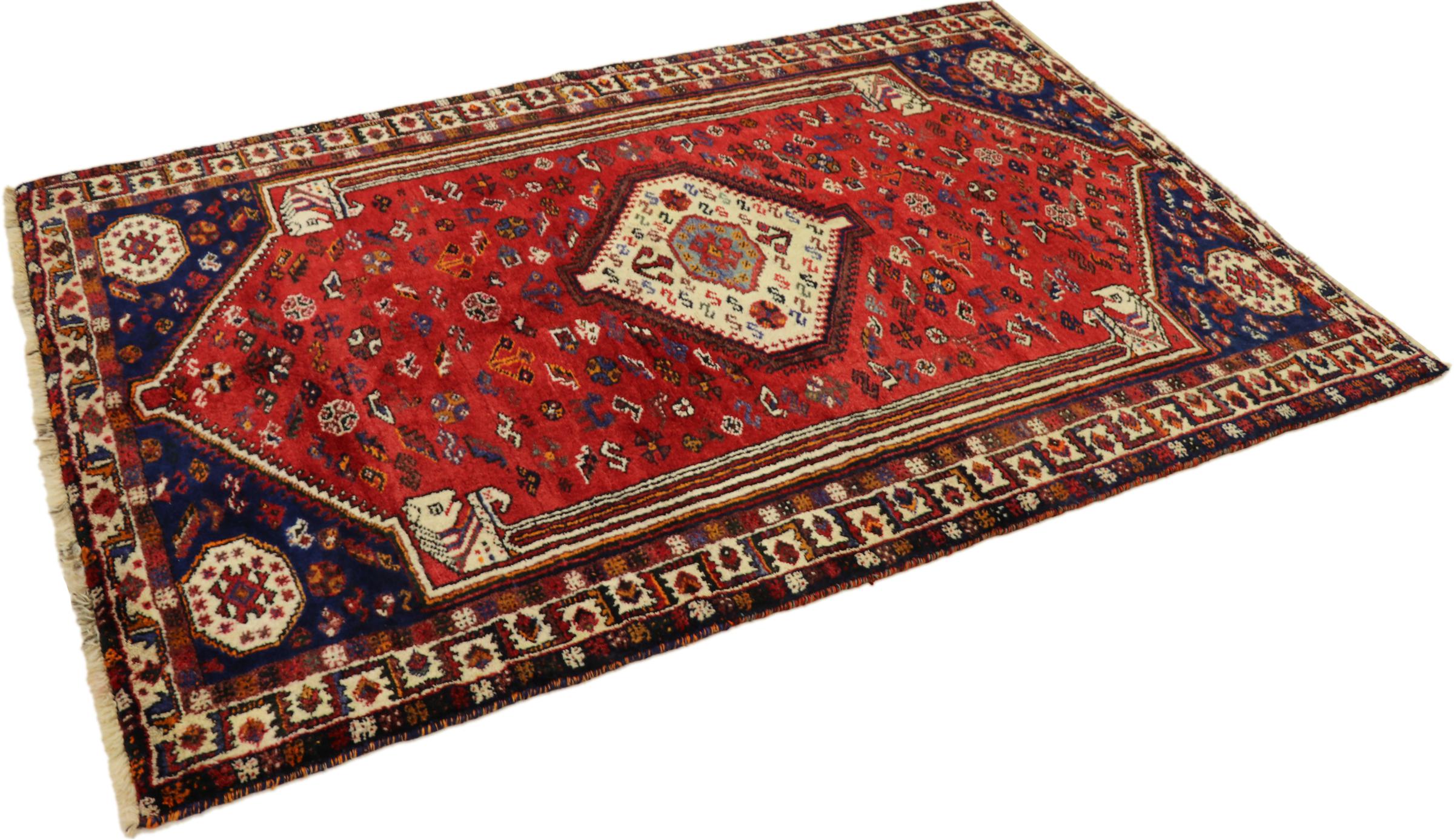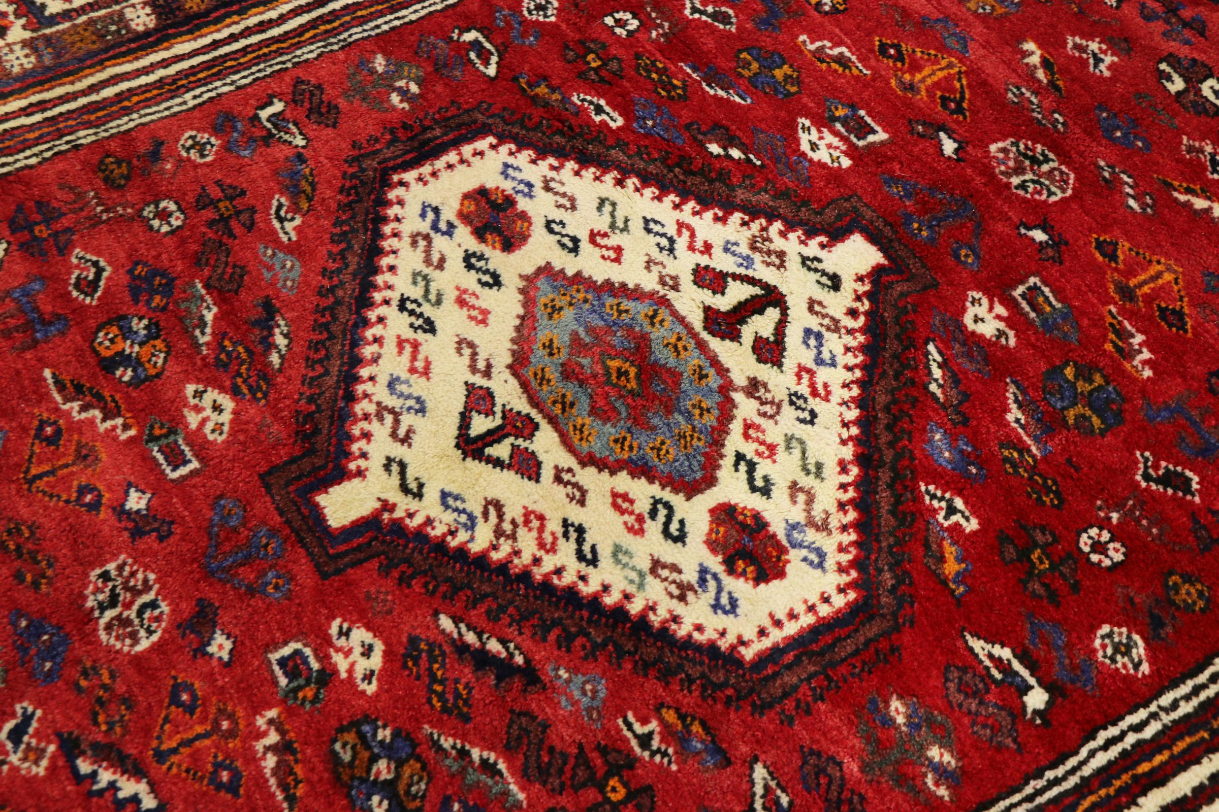 Esta ghashghai es una auténtica maravilla. Sus colores y diseños reflejan la vida de los nómadas Ghashghai de Irán. Estas tribus nómadas viven principalmente en los alrededores de la ciudad de Shiraz. Deje que un pedazo de la antigua cultura persa se traslade a sus propias cuatro paredes.