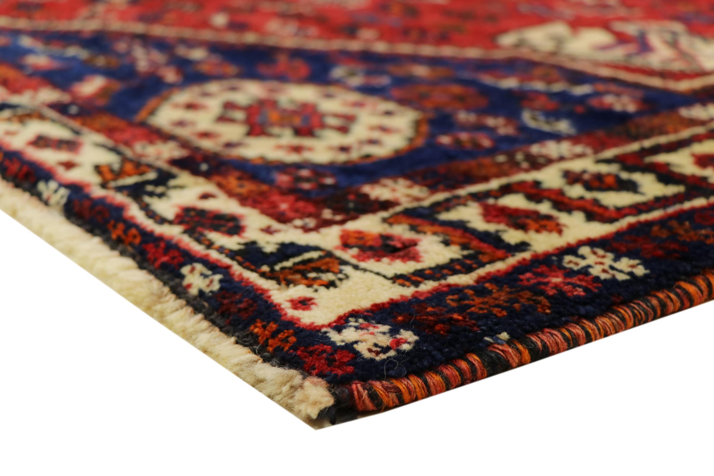 Esta alfombra pertenece a alfombras de pueblos y nómadas de Irán, antiguamente Persia. Este tipo de alfombra se anuda a mano en ciudades y pueblos más pequeños según la antigua tradición. Incluso los nómadas siguen anudando alfombras persas al aire libre. Las alfombras están anudadas sin un patrón y completamente desde la cabeza. Se caracterizan por los ornamentos clásicos, que están dispuestos en patrones rectos y geométricos. Gracias a su origen cultural-tradicional, estas alfombras tienen un carácter único que encarna la antigua Persia.