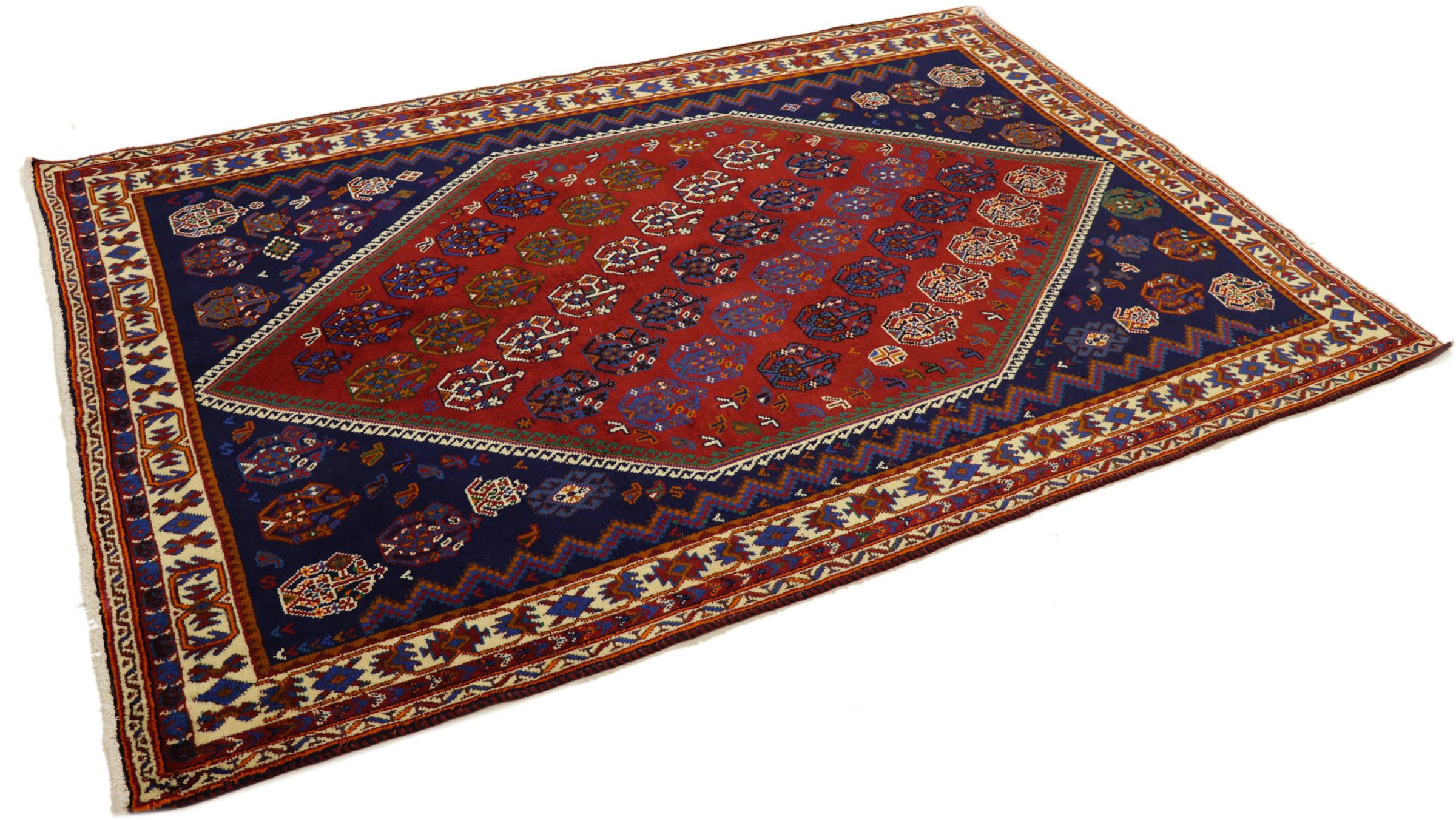 Esta alfombra pertenece a alfombras de pueblos y nómadas de Irán, antiguamente Persia. Este tipo de alfombra se anuda a mano en ciudades y pueblos más pequeños según la antigua tradición. Incluso los nómadas siguen anudando alfombras persas al aire libre. Las alfombras están anudadas sin un patrón y completamente desde la cabeza. Se caracterizan por los ornamentos clásicos, que están dispuestos en patrones rectos y geométricos. Gracias a su origen cultural-tradicional, estas alfombras tienen un carácter único que encarna la antigua Persia.