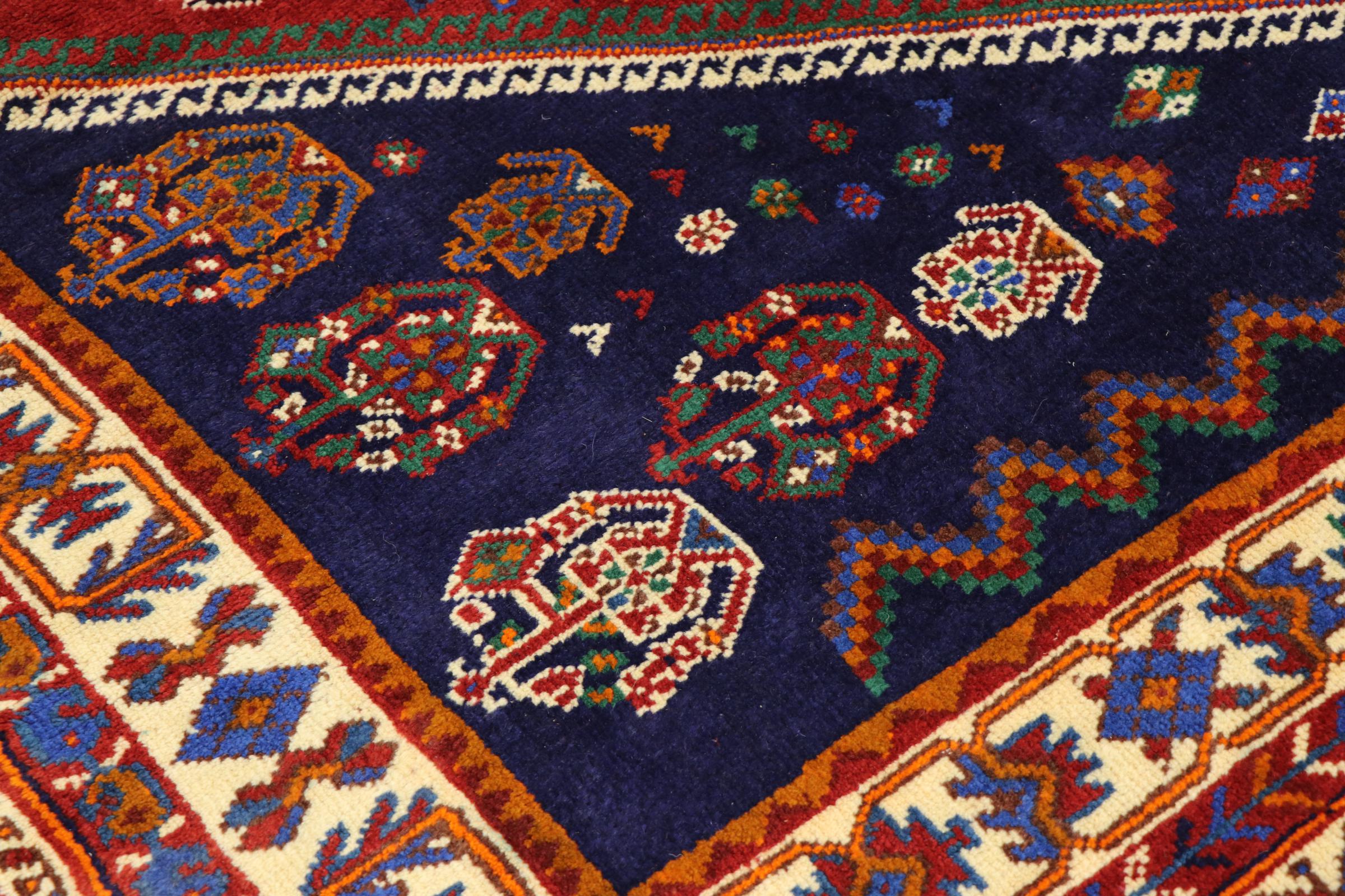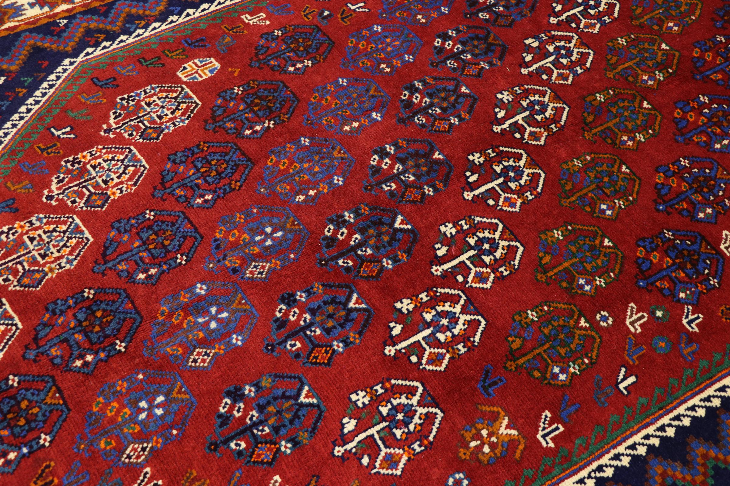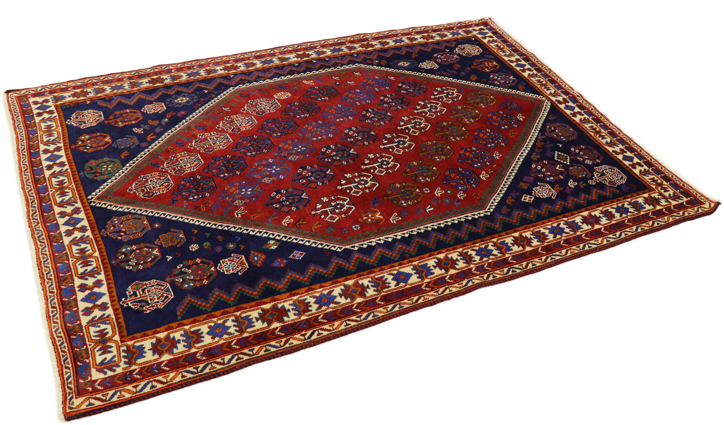 Esta ghashghai es una auténtica maravilla. Sus colores y diseños reflejan la vida de los nómadas Ghashghai de Irán. Estas tribus nómadas viven principalmente en los alrededores de la ciudad de Shiraz. Deje que un pedazo de la antigua cultura persa se traslade a sus propias cuatro paredes.
