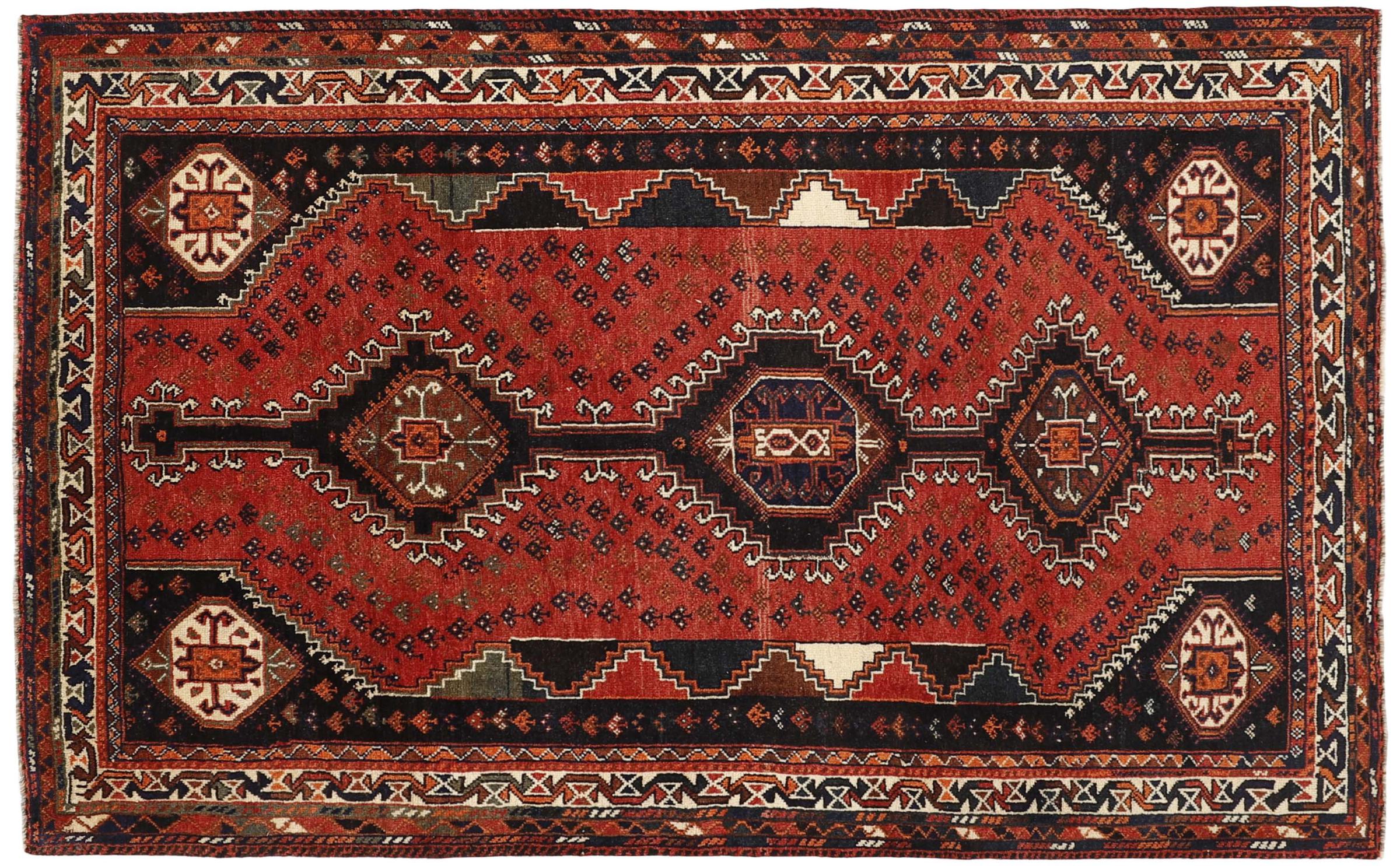 Esta ghashghai es una auténtica maravilla. Sus colores y diseños reflejan la vida de los nómadas Ghashghai de Irán. Estas tribus nómadas viven principalmente en los alrededores de la ciudad de Shiraz. Deje que un pedazo de la antigua cultura persa se traslade a sus propias cuatro paredes.