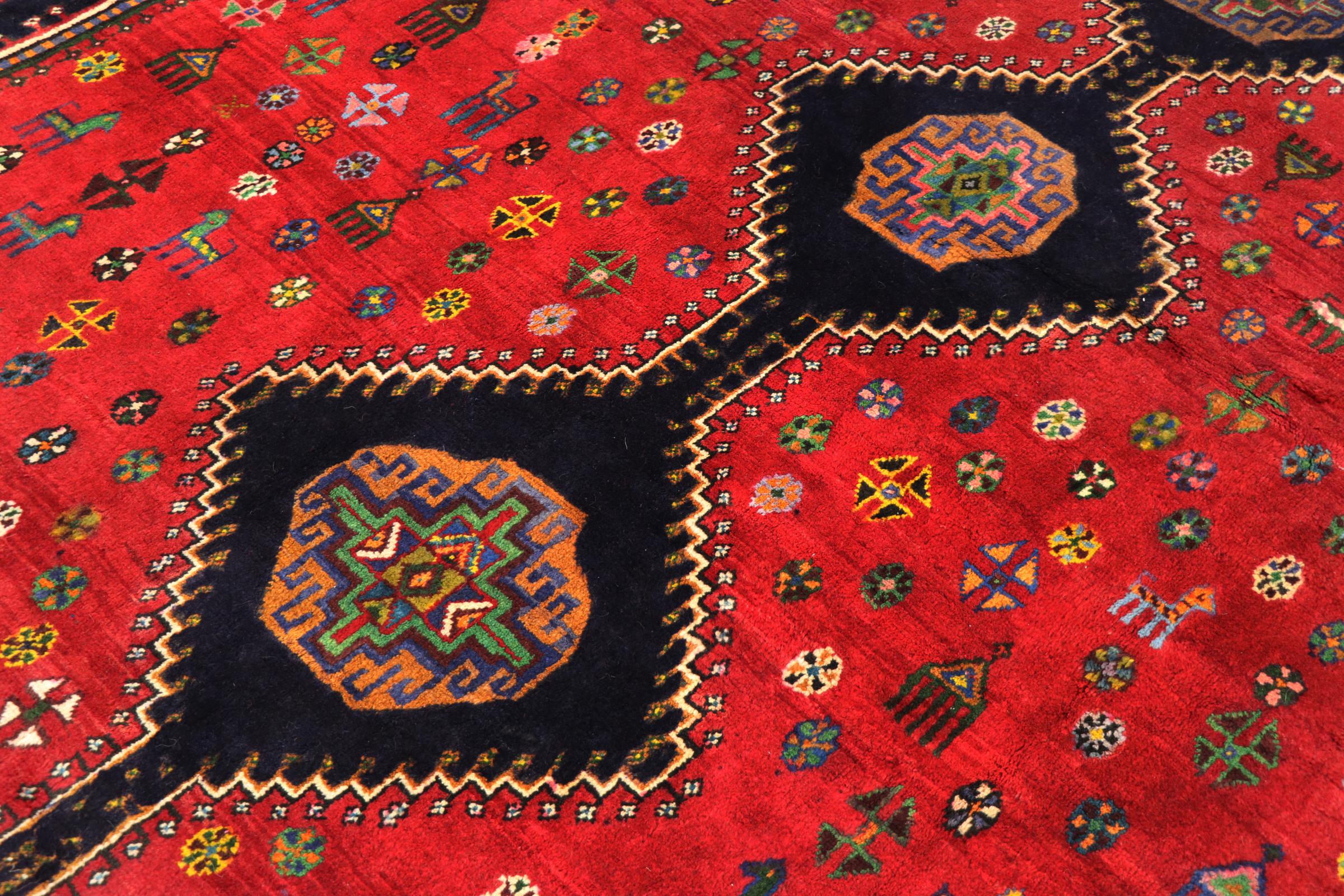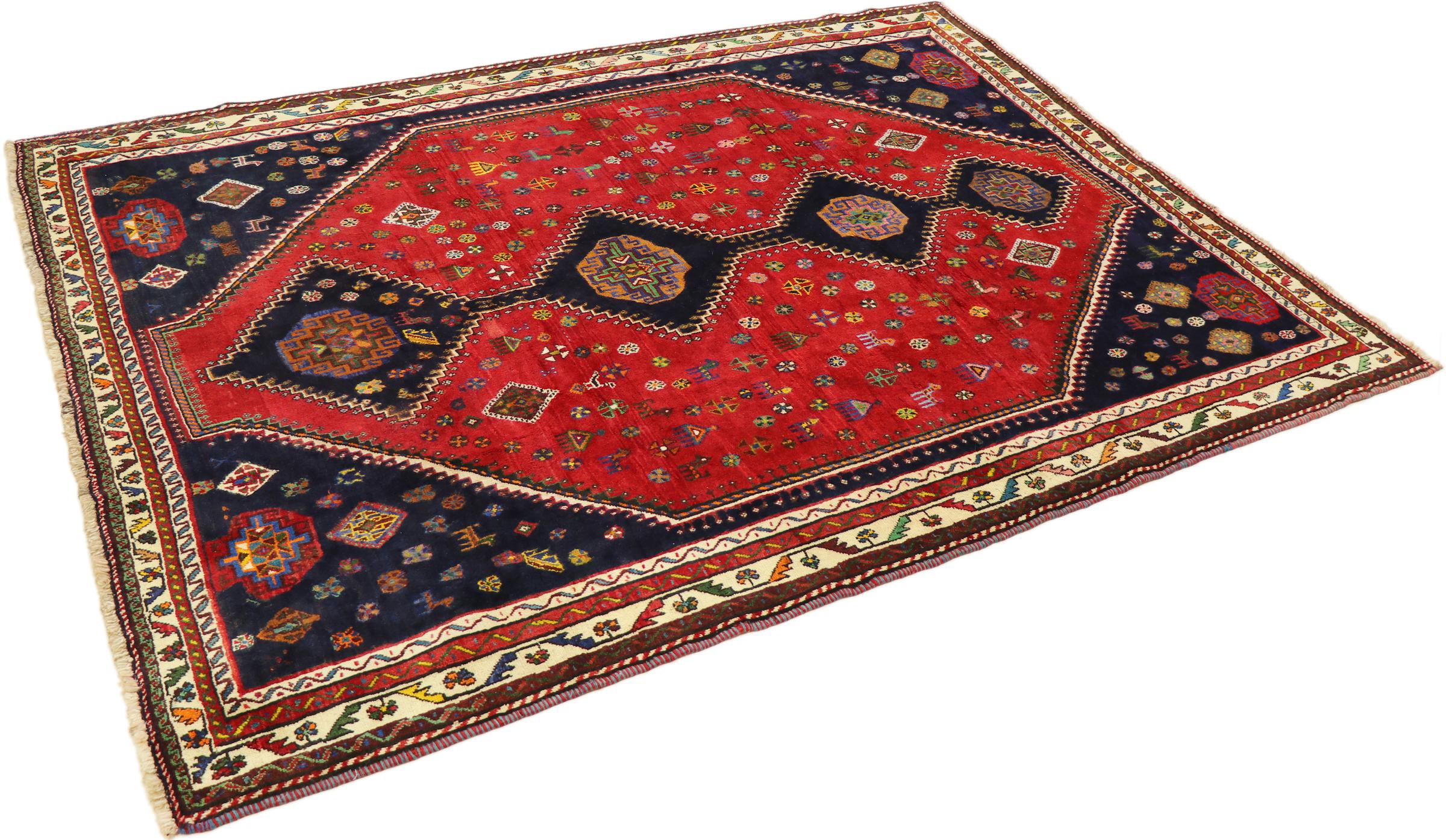 Esta ghashghai es una auténtica maravilla. Sus colores y diseños reflejan la vida de los nómadas Ghashghai de Irán. Estas tribus nómadas viven principalmente en los alrededores de la ciudad de Shiraz. Deje que un pedazo de la antigua cultura persa se traslade a sus propias cuatro paredes.