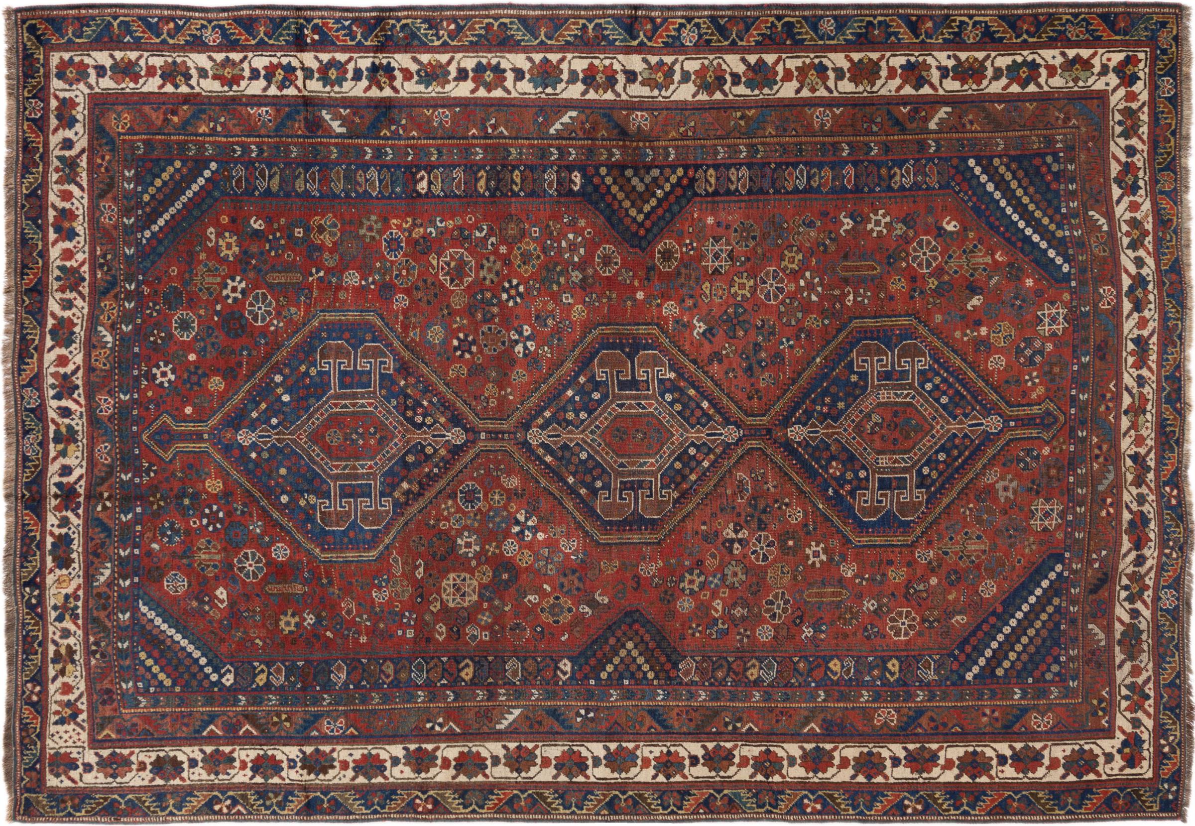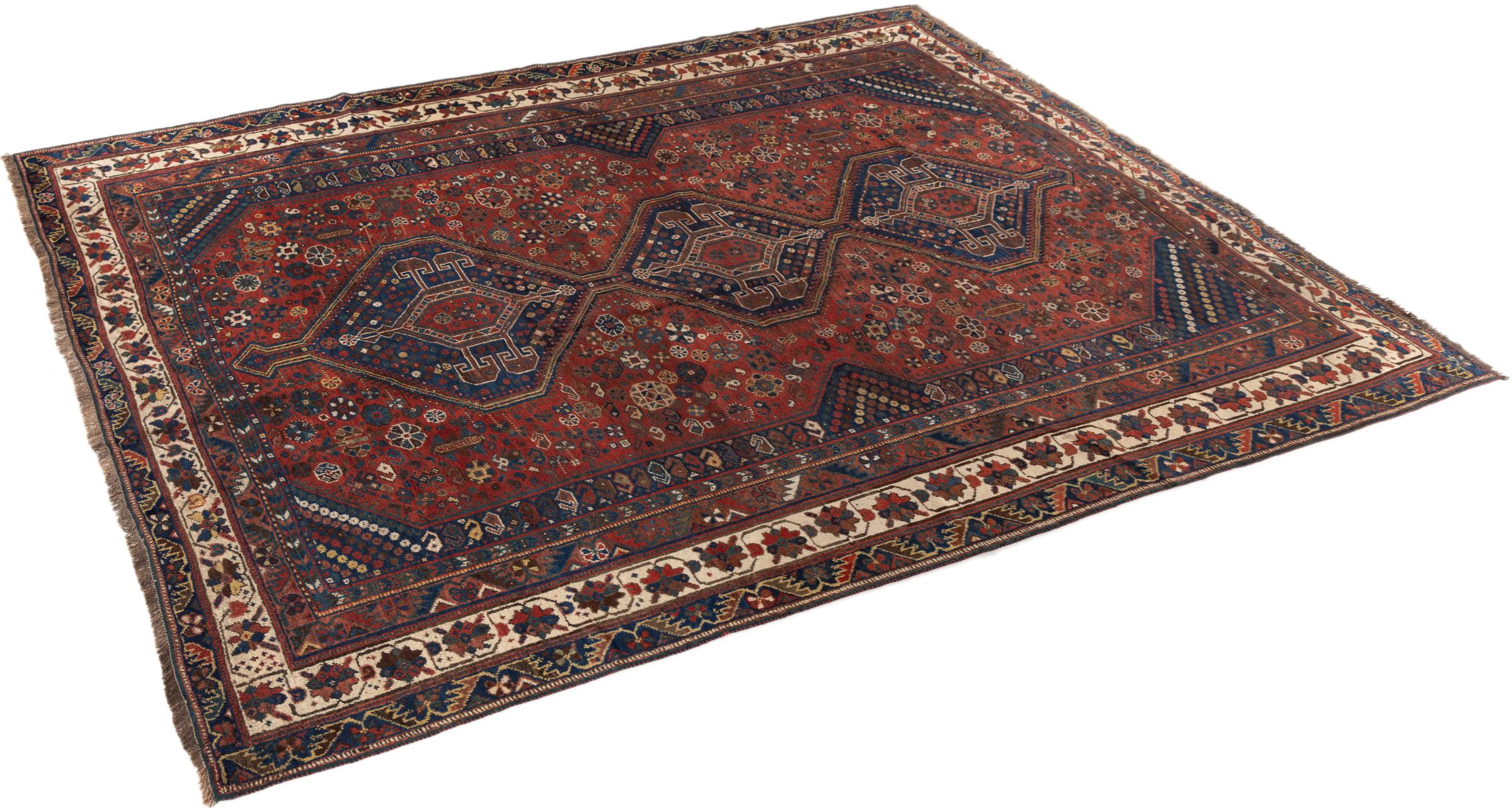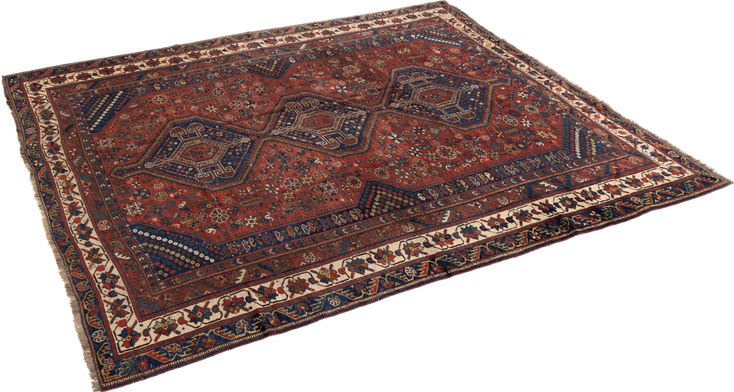 Esta ghashghai es una auténtica maravilla. Sus colores y diseños reflejan la vida de los nómadas Ghashghai de Irán. Estas tribus nómadas viven principalmente en los alrededores de la ciudad de Shiraz. Deje que un pedazo de la antigua cultura persa se traslade a sus propias cuatro paredes.